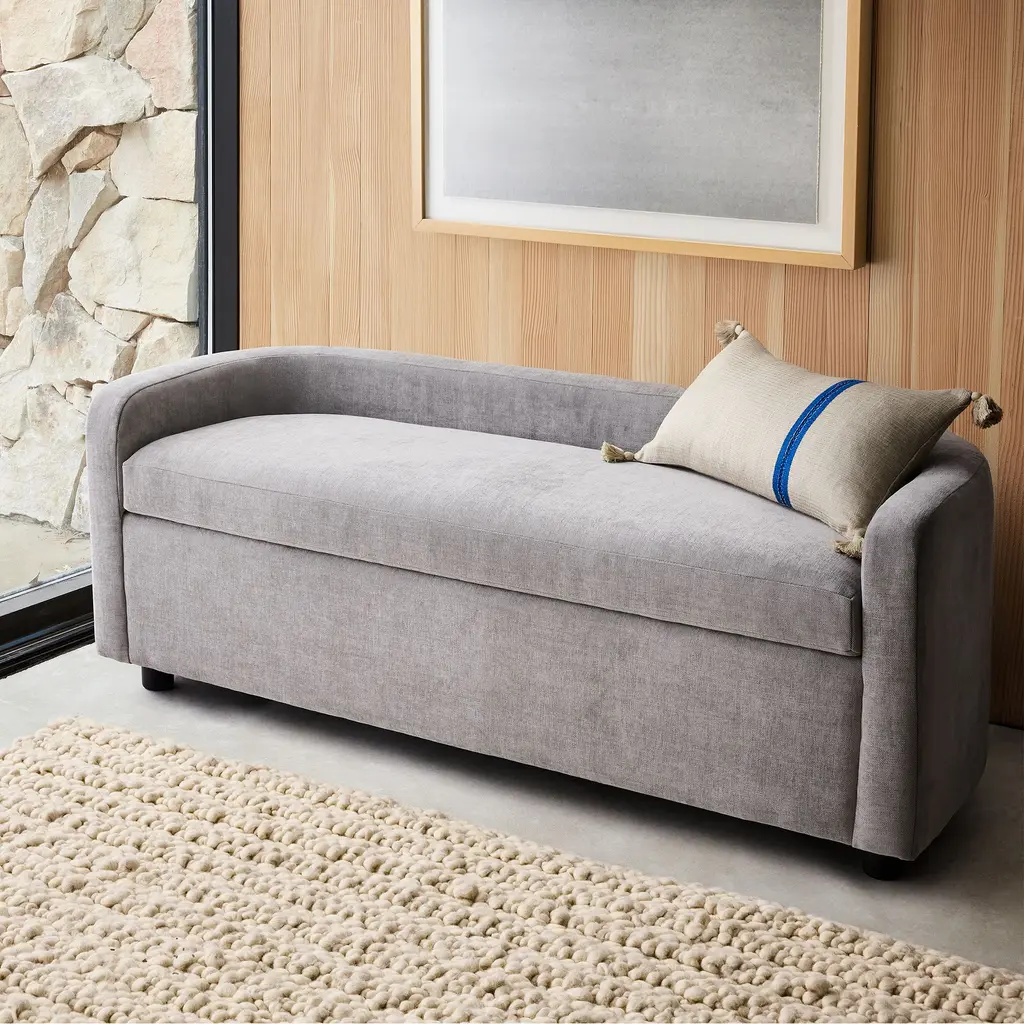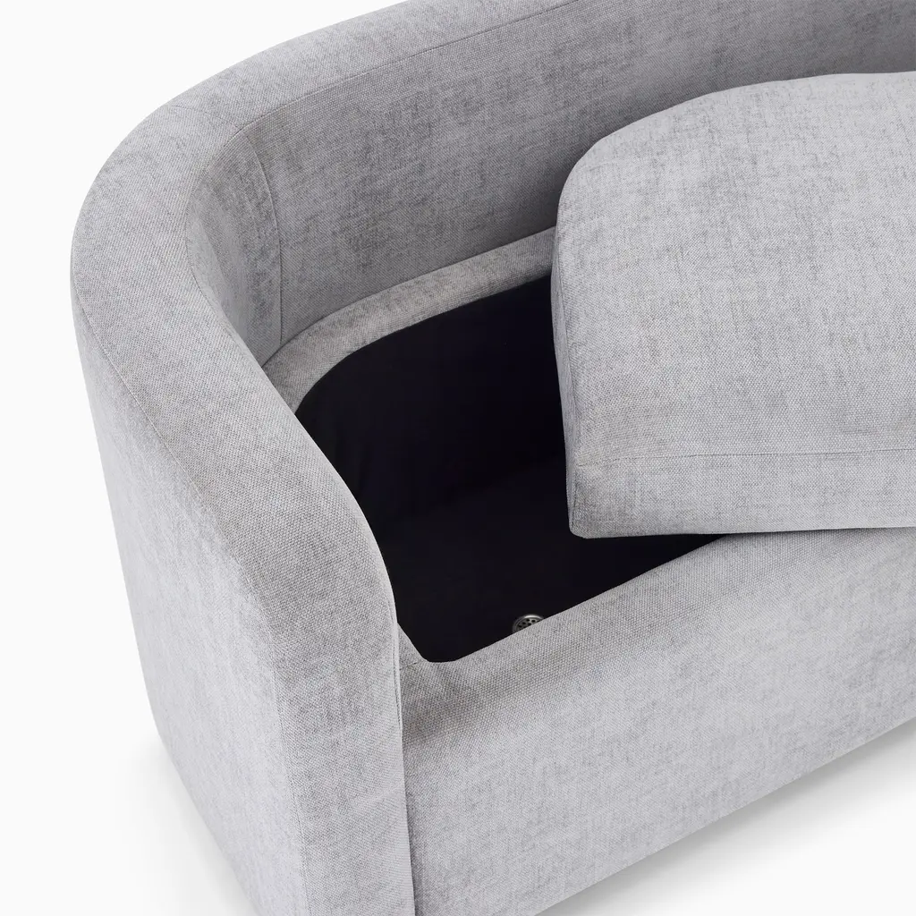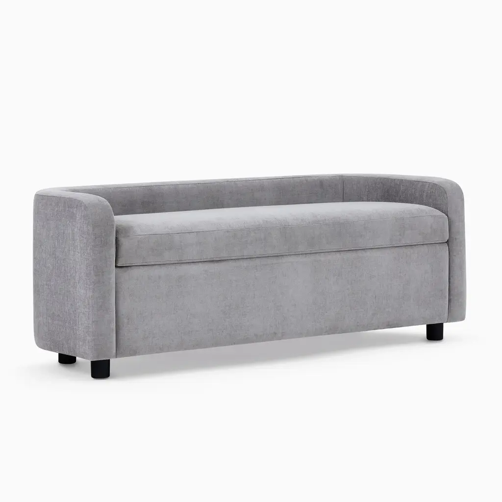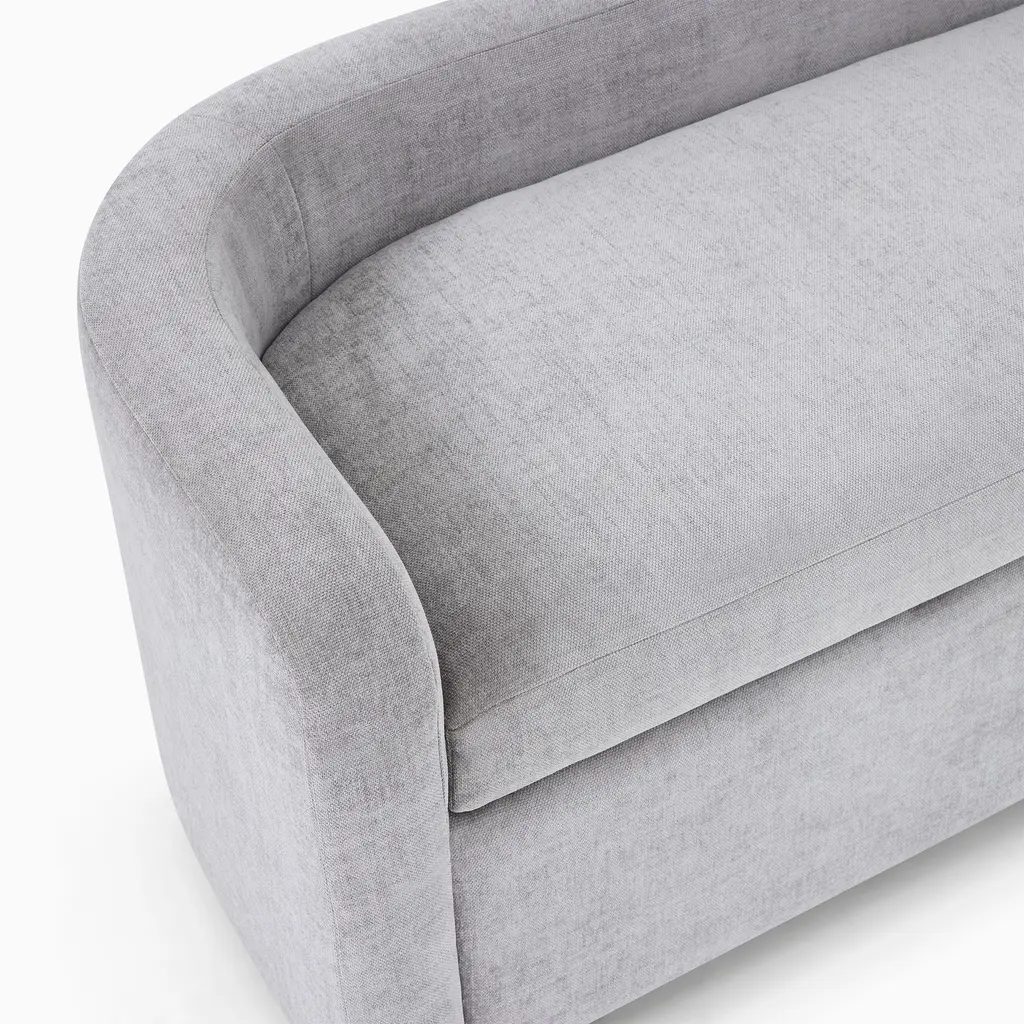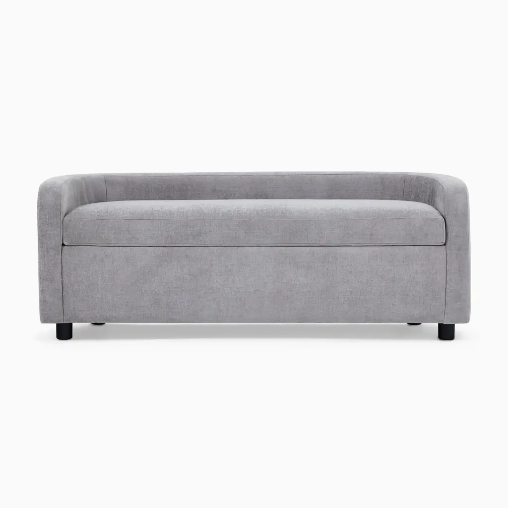 A rounded back distinguishes its modern silhouette. Deep, ultra soft seat cushion for supreme comfort. Interior storage to stow pillows or throws. Contract Grade, so you know it's built to last.