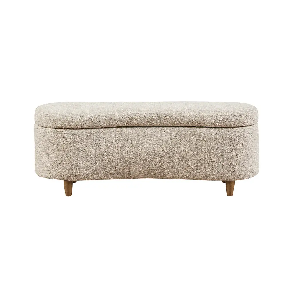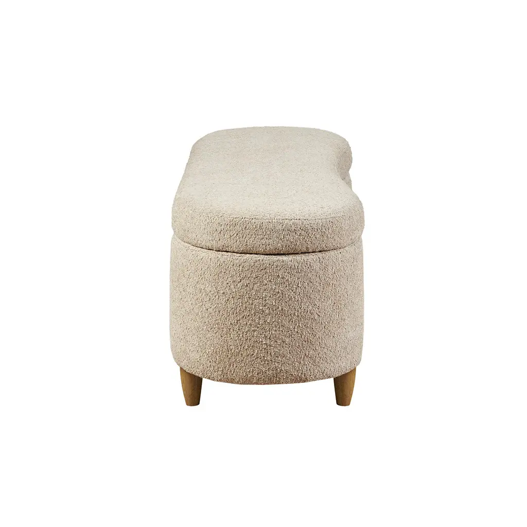 DESCRIPTION Introducing the Bailey boucle flip top storage bench from Ink+Ivy - a stylish and versatile piece that fits seamlessly into any room of your home. Featuring clean lines and a curved front, it also has a straight back that fits snugly against a wall or bed. The upholstered bench sits atop solid wood legs, providing both comfort and style. And with only leg assembly required, it's easy to set up and start using. See below Overall: 48"W x 16.5"D x18"H Leg Height: 3.5" Storage: 43.75"W x 10.25-11.75"D x 10"H Weight: 27.5 lbs Weight Capacity: 400 lbs MATERIAL Frame Composition: Solid wood and plywood Leg Material: Solid wood Fabric Composition: 100% polyester, plain weave Cushion or Upholstery Fill Material: Foam Wood Finish: Elm smooth
