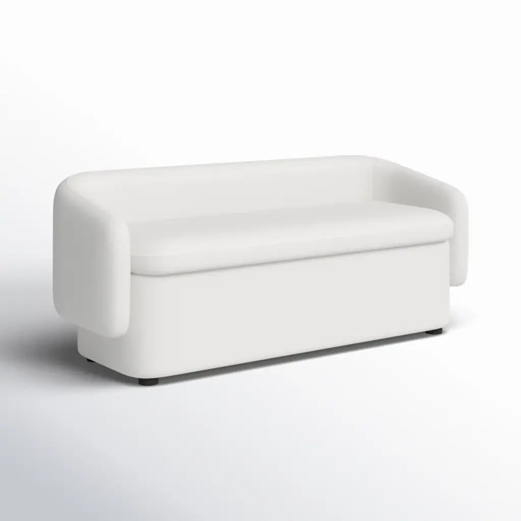 With modern elegance and functional storage, the Bredon upholstered storage bench is the perfect accent piece for living rooms, bedrooms, and entryways. Soft curves of the wraparound back, gently sloped arms, and rounded corners bring graceful dimension to your room, instantly creating a sophisticated, polished look. High-density foam padding, enveloped with timeless, neutral upholstery, produces an inviting, cozy sitting experience. Kiln-dried wood and quality craftsmanship techniques, like mortise and tenon joinery, provide long-lasting durability and stability. Ample internal storage keeps your belongings neatly organized but easily accessible. The Bredon upholstered storage bench is a versatile solution for maximizing storage, seating, and style. Best of all, it arrives fully assembled.