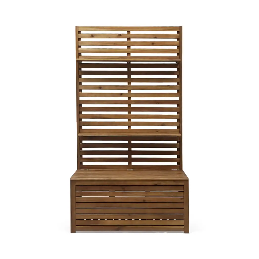 Make a strong first impression with this acacia wood entryway bench, designed for both function and rustic appeal. Featuring a teak finish and clean slatted design, it offers seating, storage, and shelving in one compact form. Whether used indoors or in a covered outdoor space, this bench keeps your entry neat while providing a charming, organized touch to your home.Finish: Teak Material: Acacia Wood Assembly Required Dimensions: 17.75 inches deep x 37.50 inches wide x 67.25 inches high