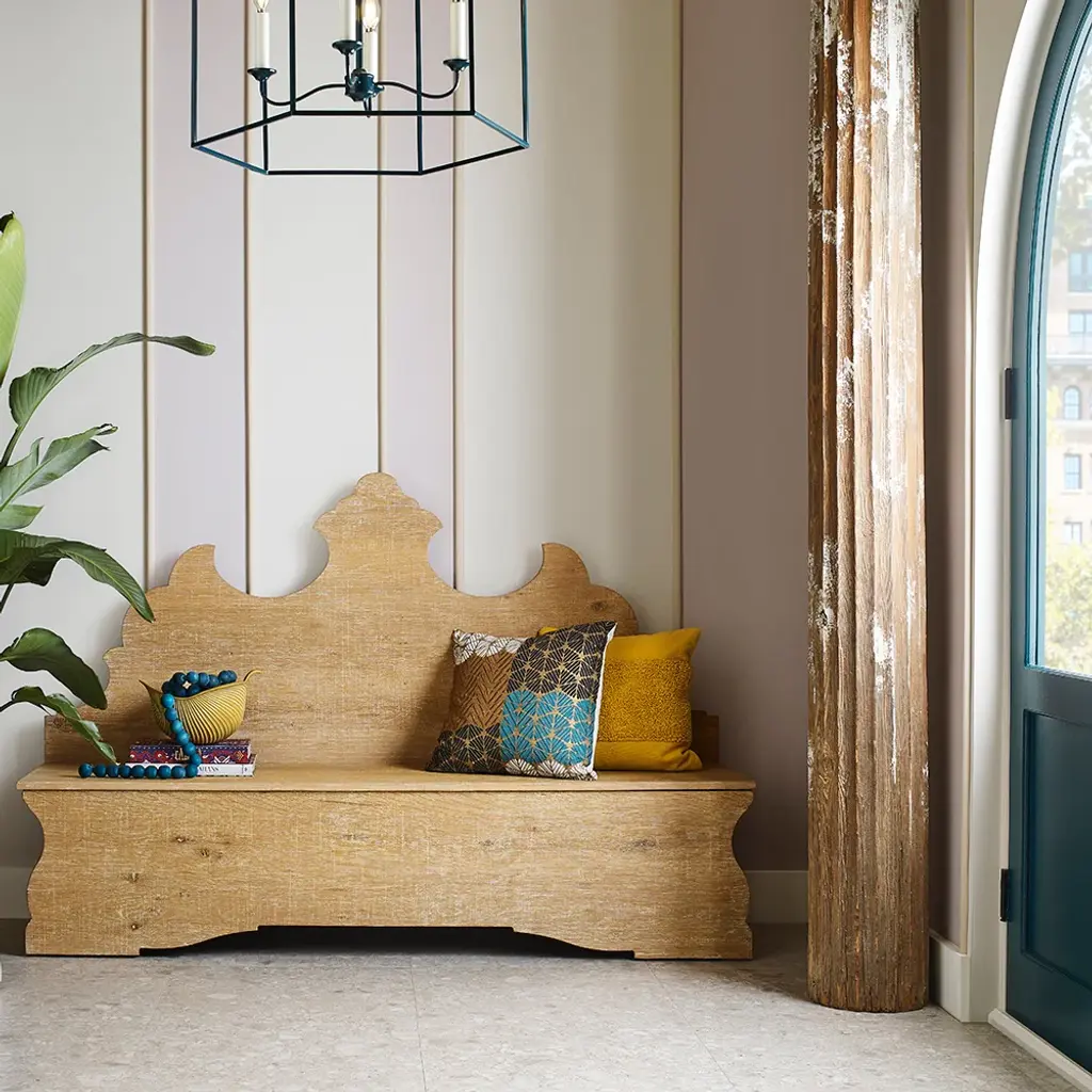 Folk Lime Wash Finish Storage Bench