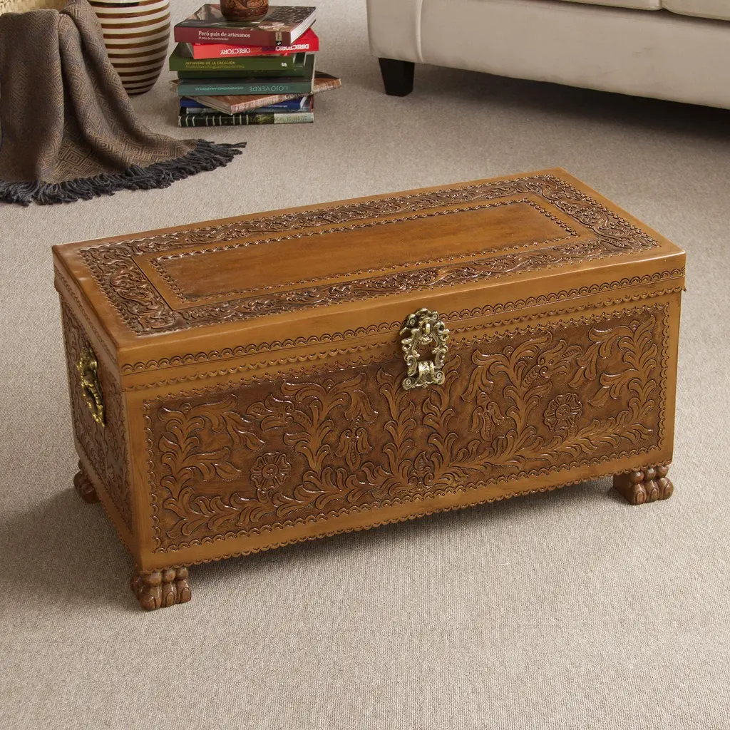 Merging practical storage with an exotic sense of flair, the Fossil Ridge storage bench stands out from the crowd in an intriguing way. Its grainy wood is beautified with an antique white finish, and the ornamental medallion carvings are pure artistry. Weight 56.000 lbs. (25.2kgs.)