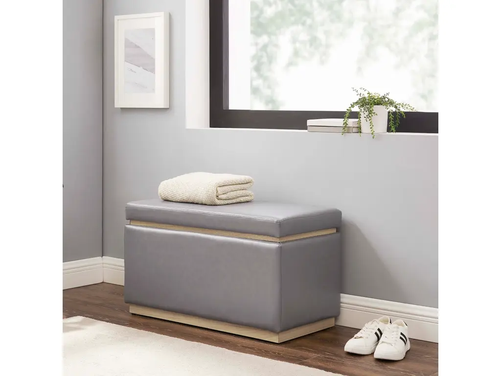 The Gemma storage bench marries contemporary elegance with versatile, functional design. Its generous, deep-seated top is wrapped in a soft, muted chenille, that effortlessly transitions the bench from entryway statement to sophisticated coffee table or seating at the foot of a bed. The recessed wooden base invites functional repose as a sleek wire-brushed drawer offers ample storage.
