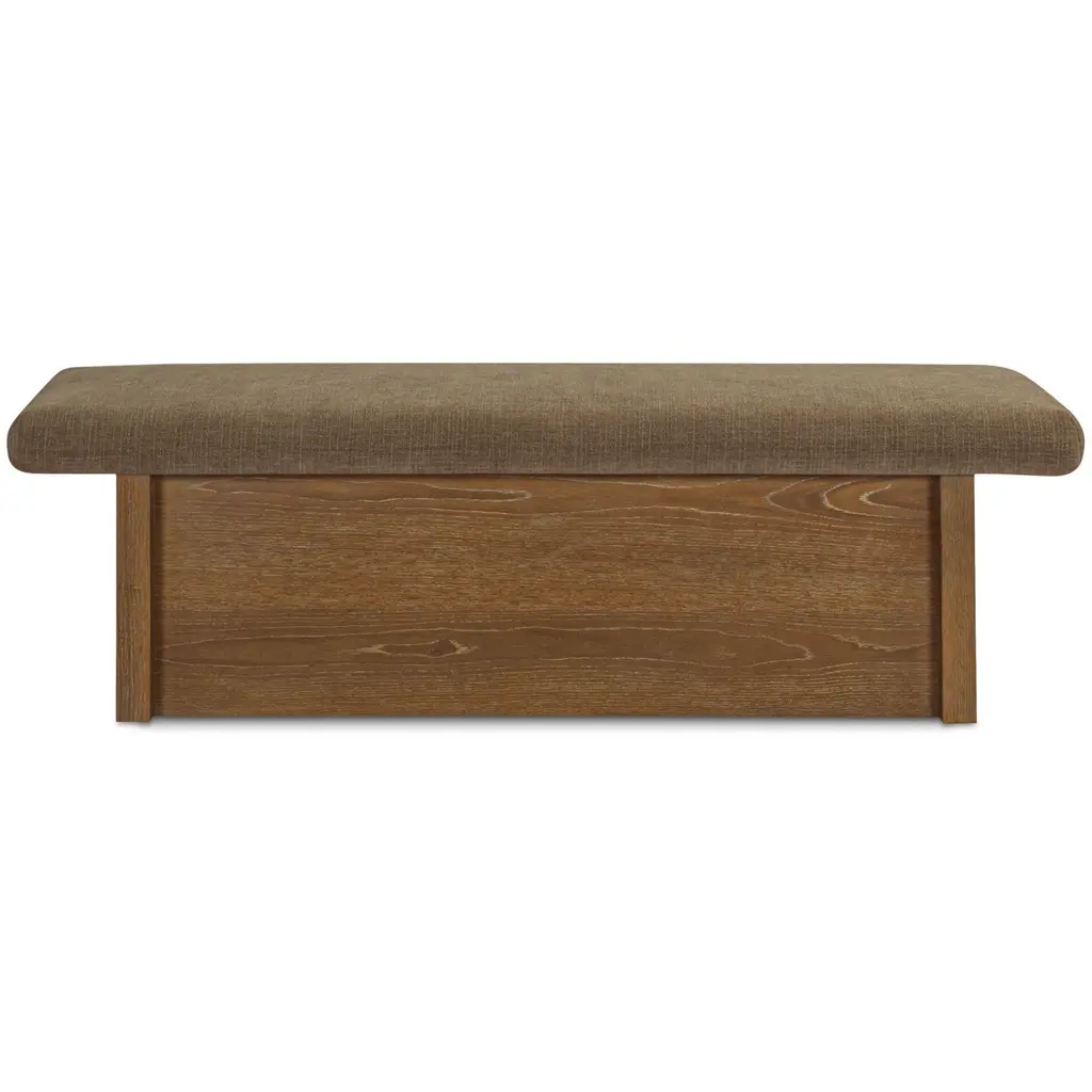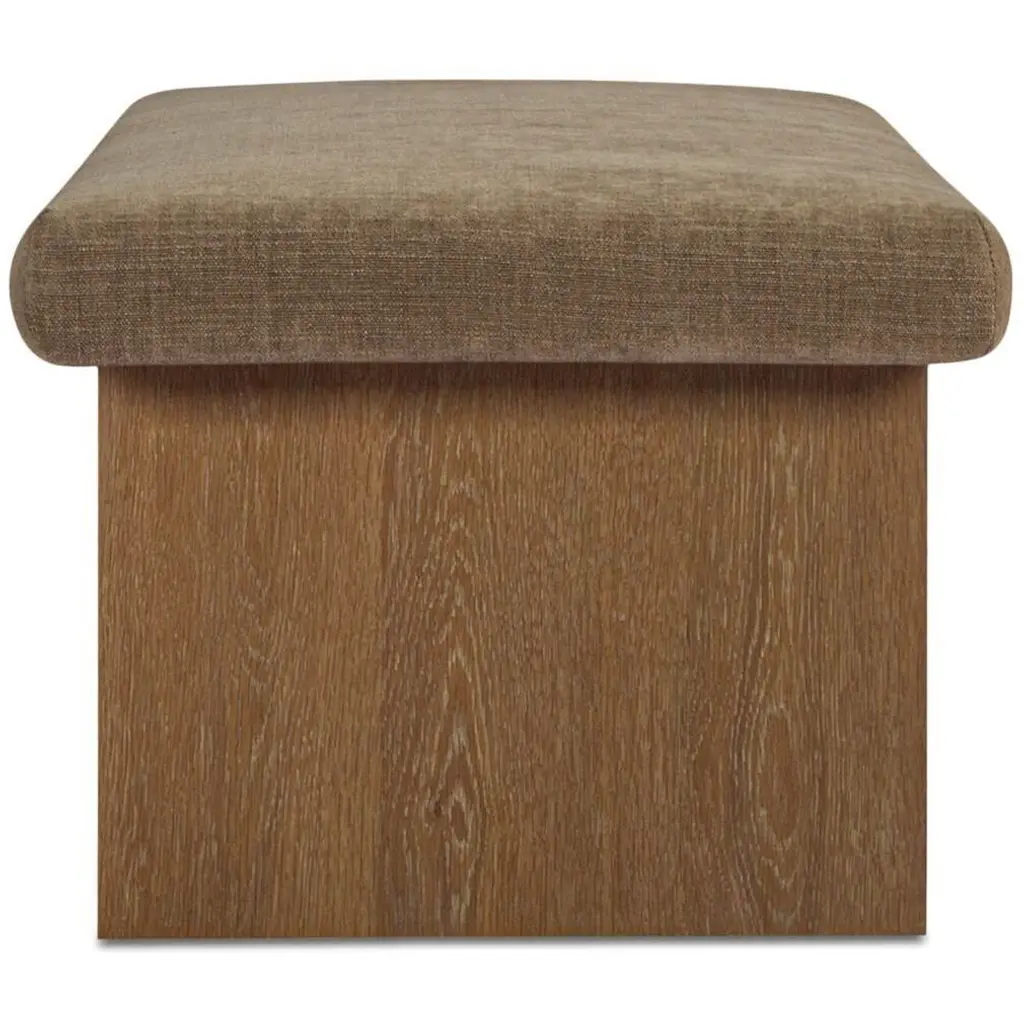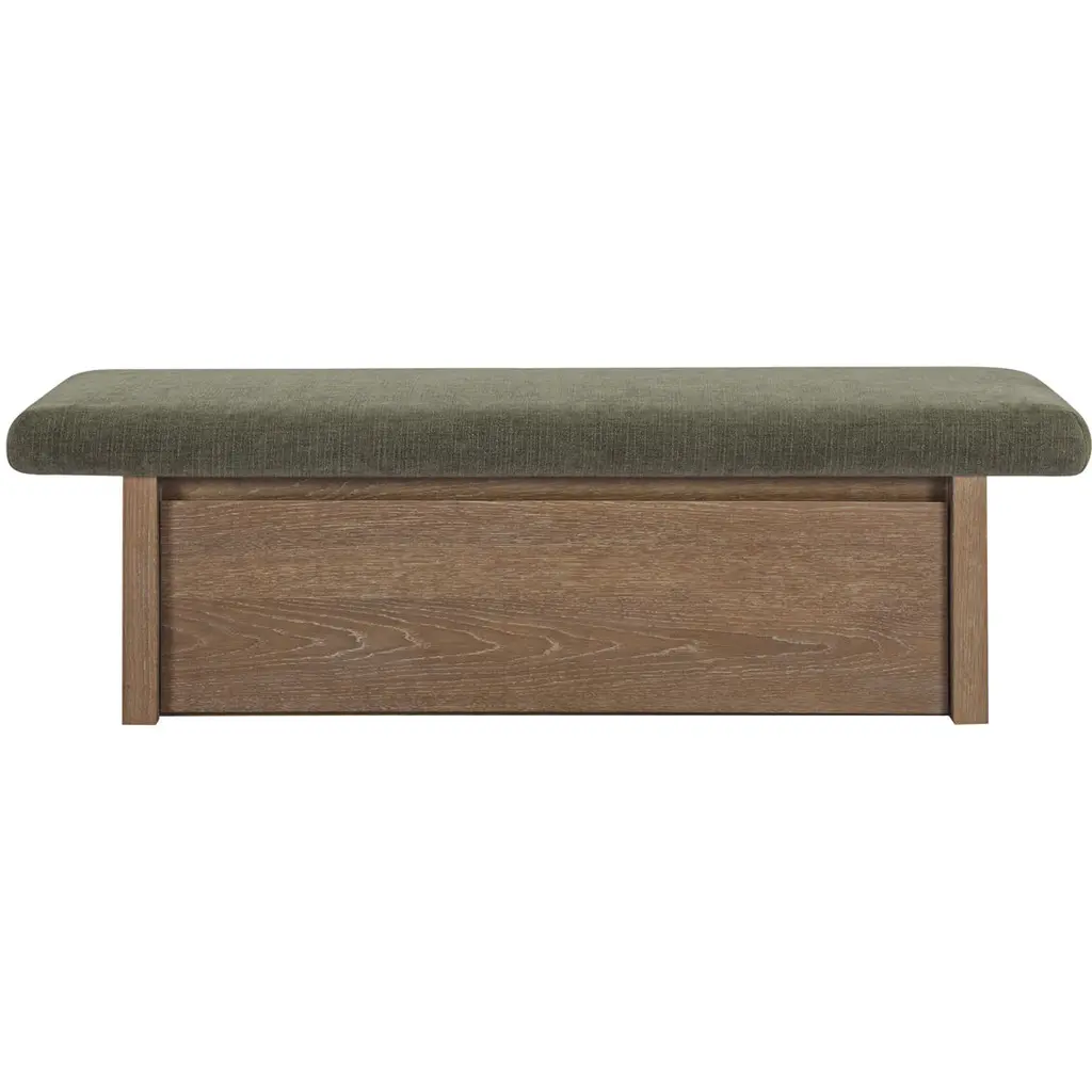 The Gemma storage bench marries contemporary elegance with versatile, functional design. Its generous, deep-seated top is wrapped in a soft, muted chenille, that effortlessly transitions the bench from entryway statement to sophisticated coffee table or seating at the foot of a bed. The recessed wooden base invites functional repose as a sleek wire-brushed drawer offers ample storage.