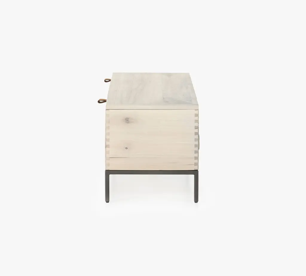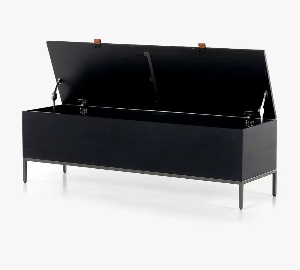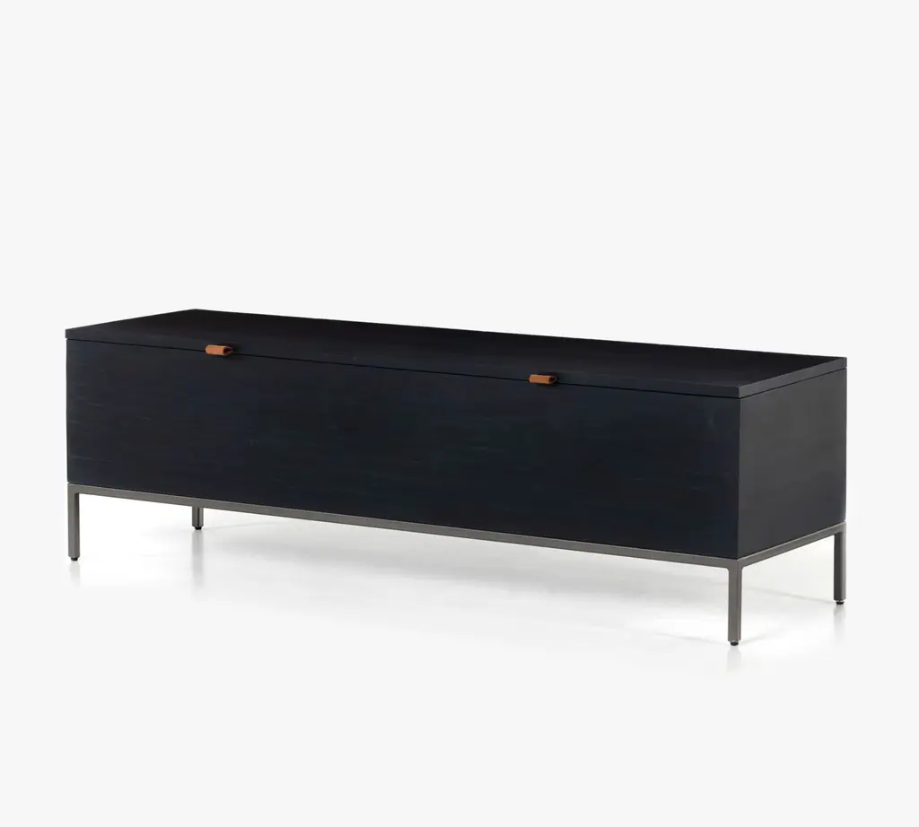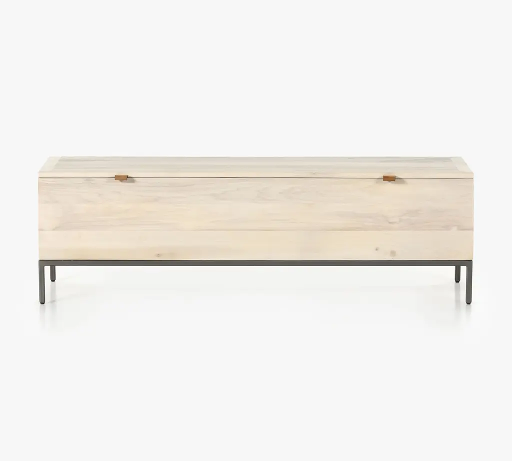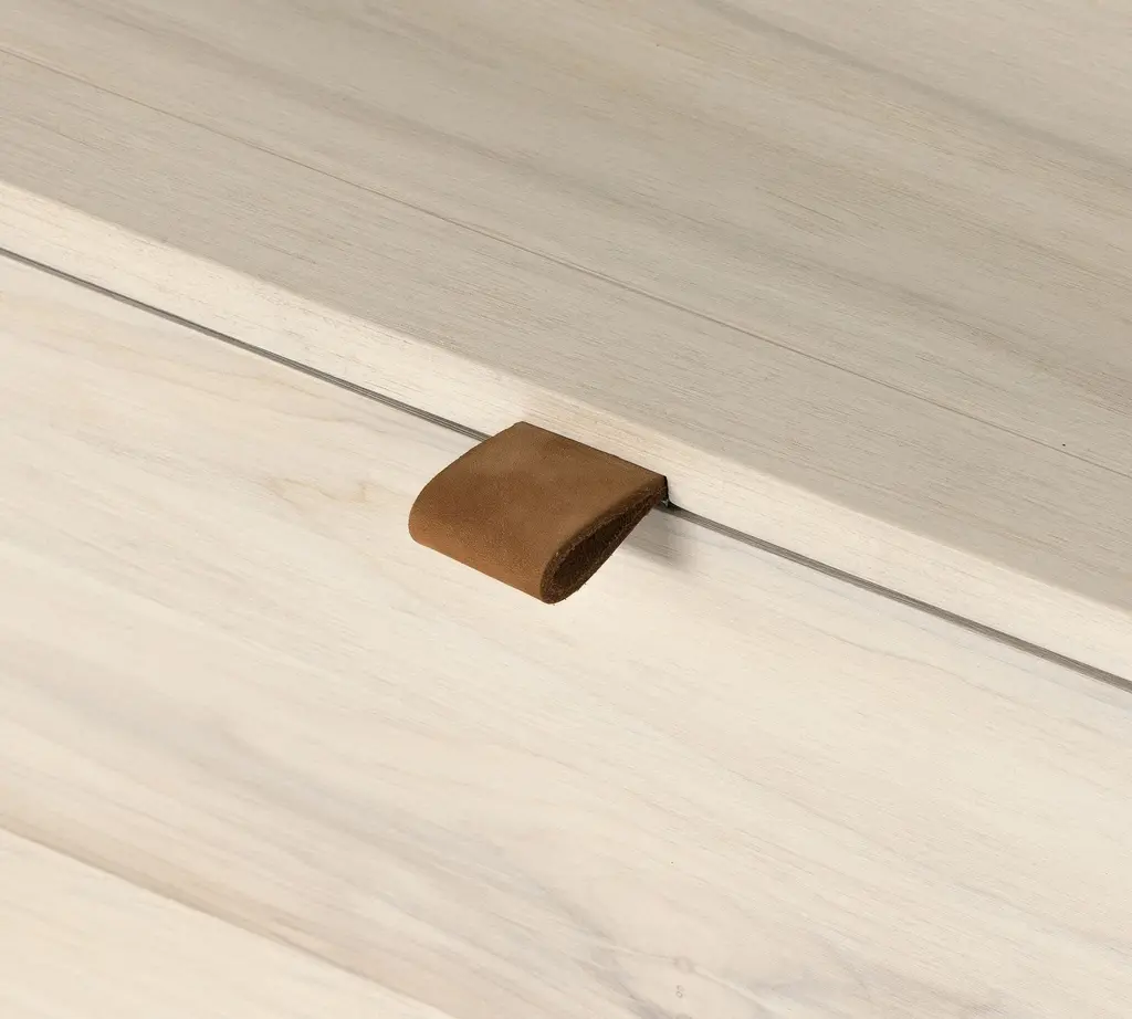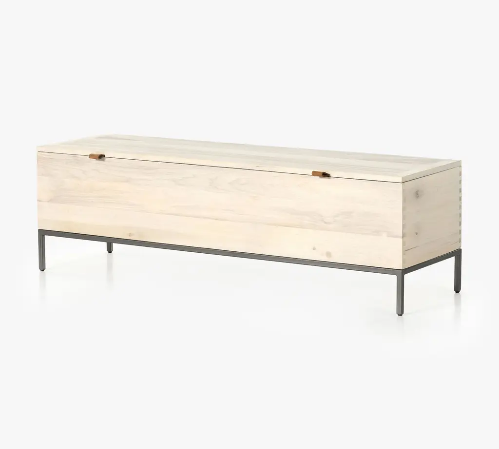 Crafted of wood, metal, and leather, Graham is a spacious and streamlined take on the mixed material trend. Design details like unexpected drawer pulls, dovetail joinery, and a high-low finish make this a standout, modern piece for any space. Place it at the foot of your bed to store blankets, linens, or extra pillows.