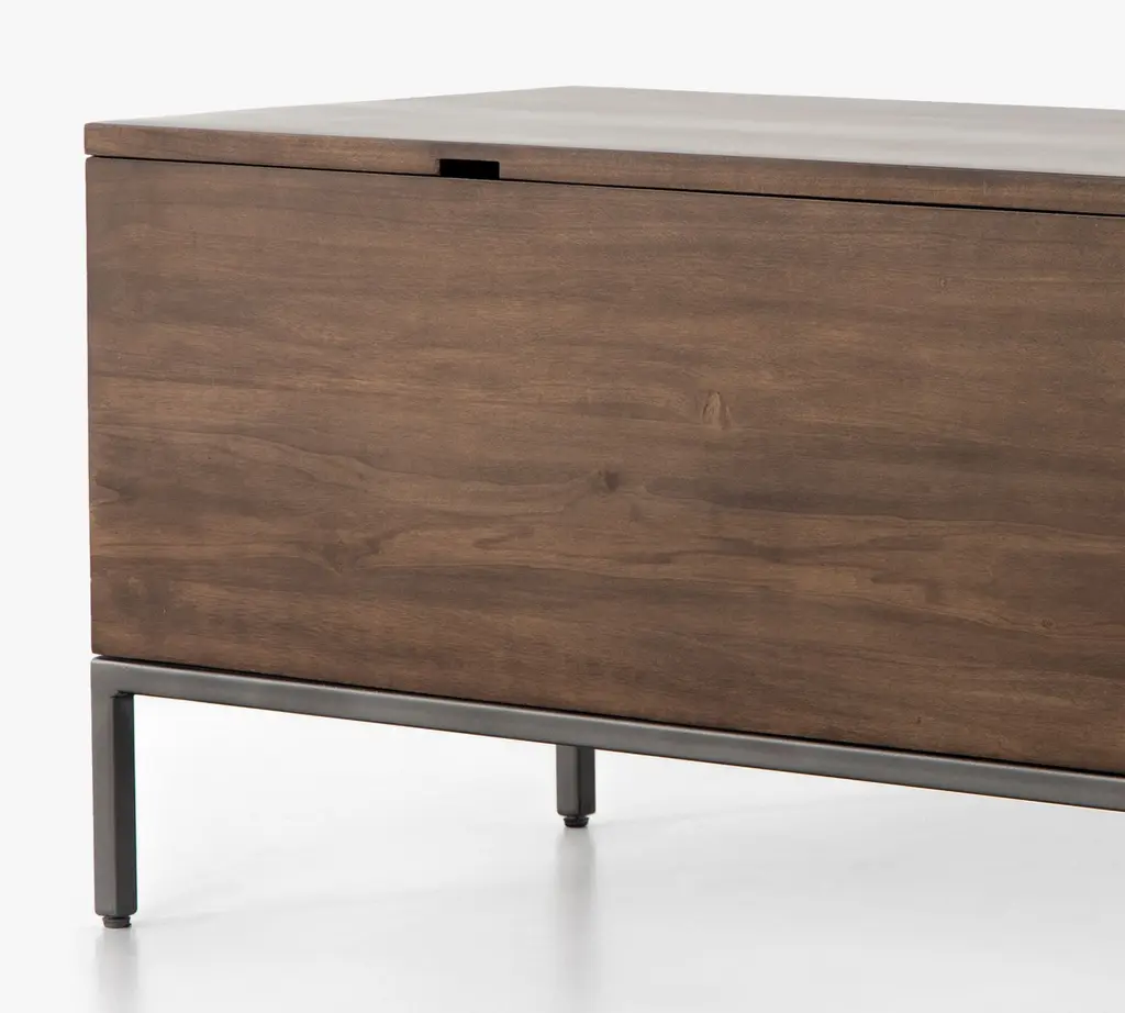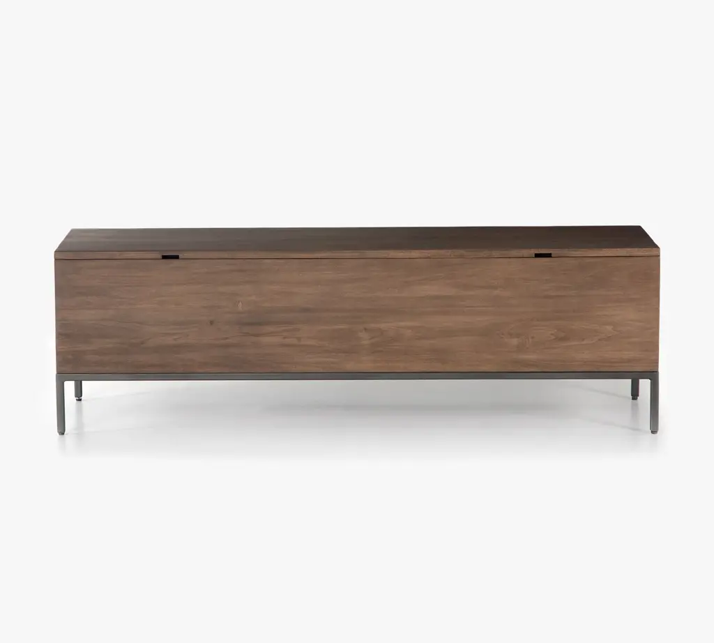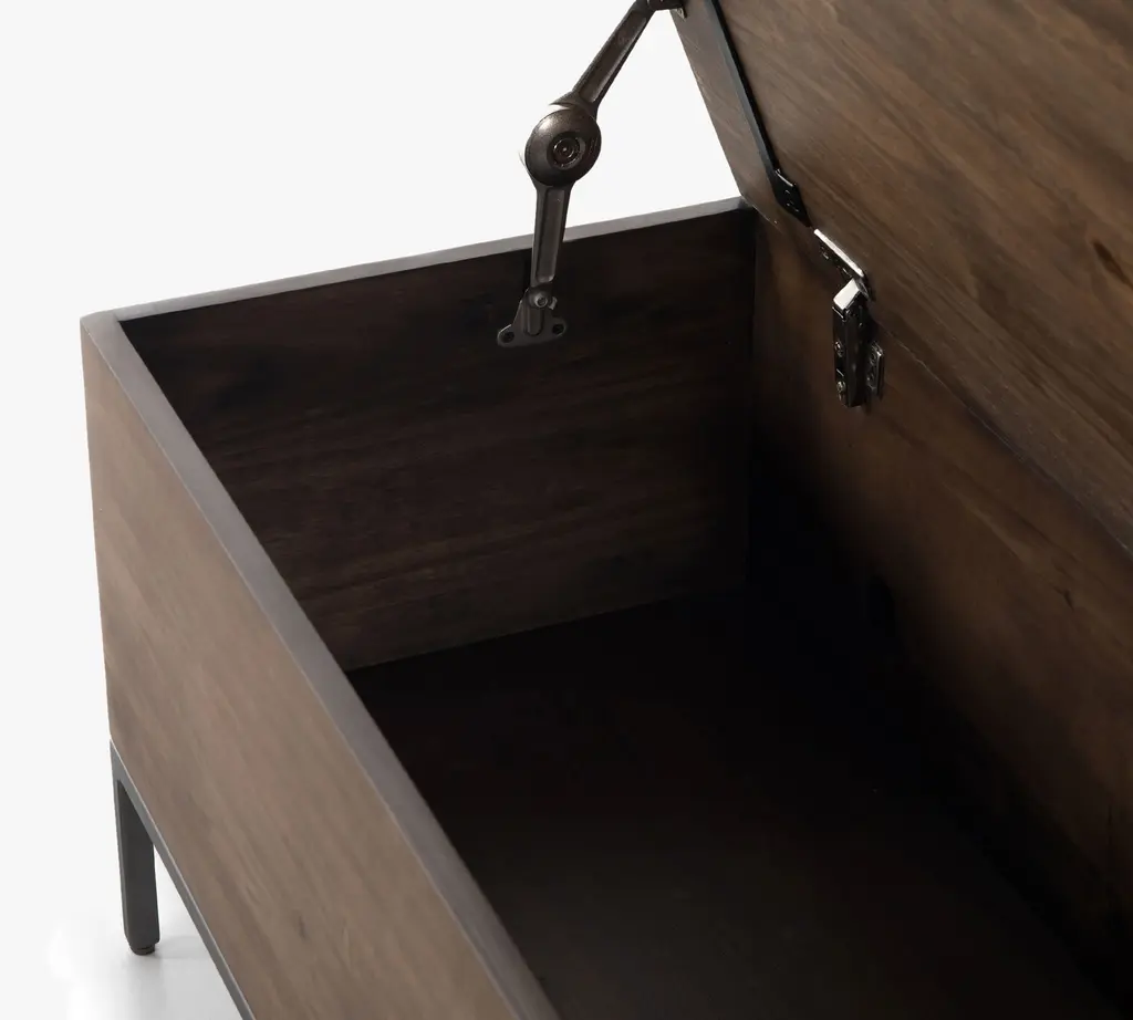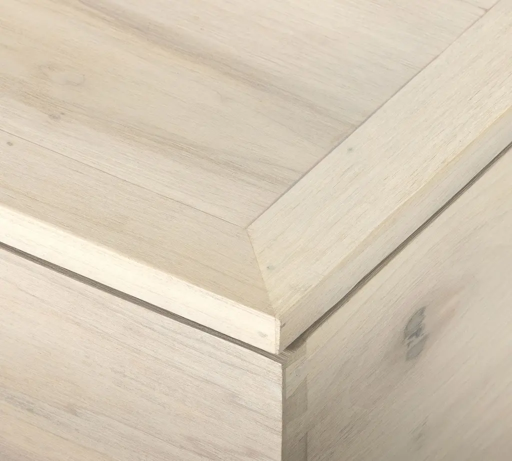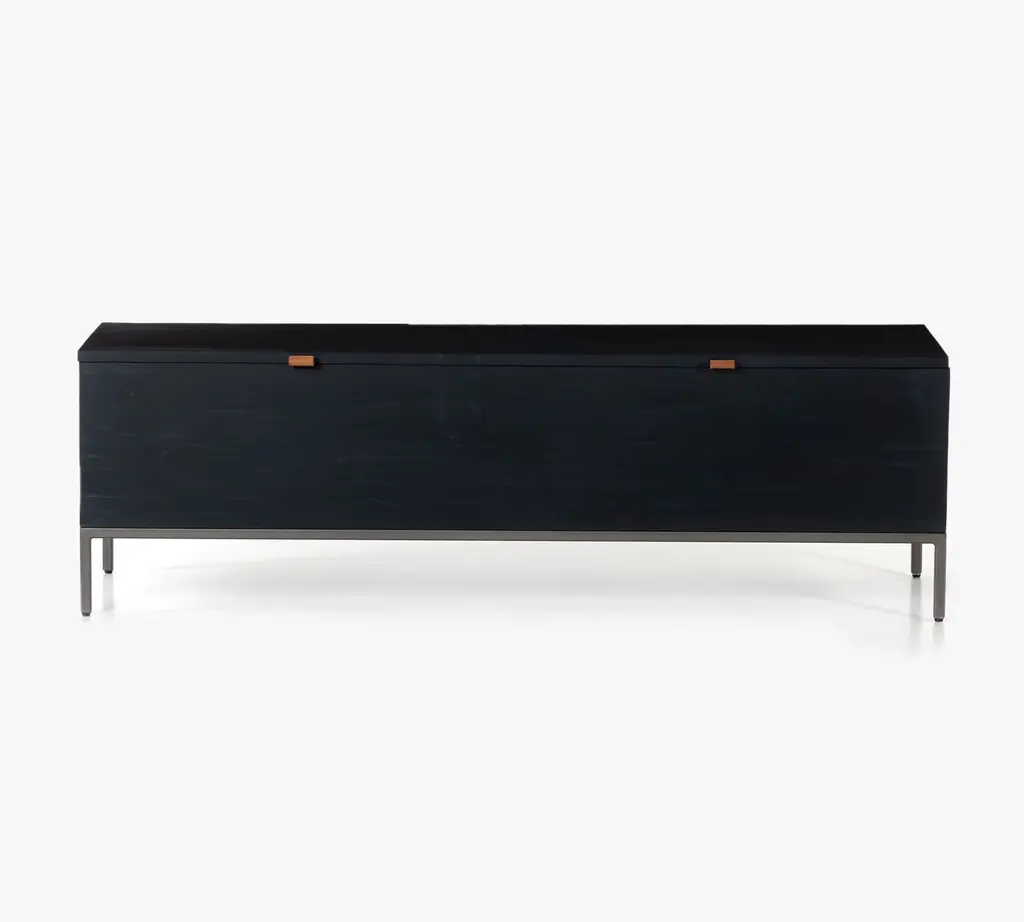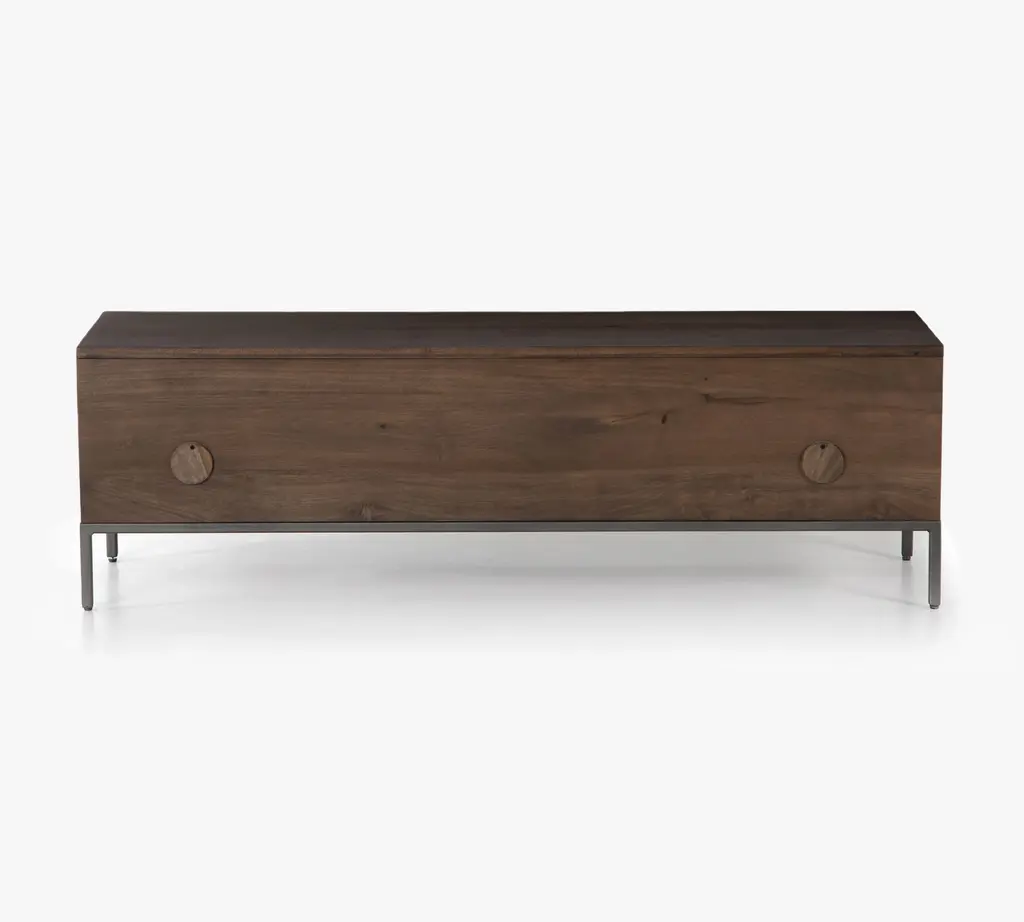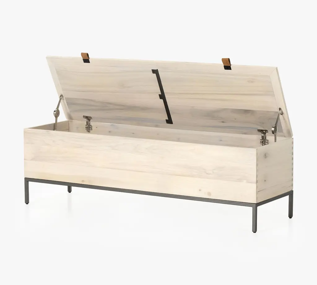 Crafted of wood, metal, and leather, Graham is a spacious and streamlined take on the mixed material trend. Design details like unexpected drawer pulls, dovetail joinery, and a high-low finish make this a standout, modern piece for any space. Place it at the foot of your bed to store blankets, linens, or extra pillows.