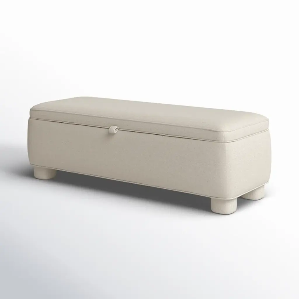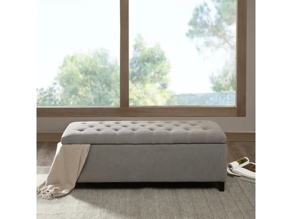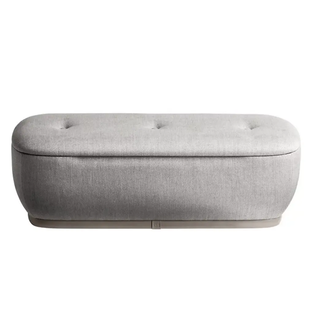 A testament to the timeless allure of a classic form, the Grant storage's sleek, rounded edges complement its luxuriously soft-to-the-touch upholstery created from premium polyester. While also providing ample hidden storage, the bench invites you to sink into its plush comfort offering lasting beauty for years.
