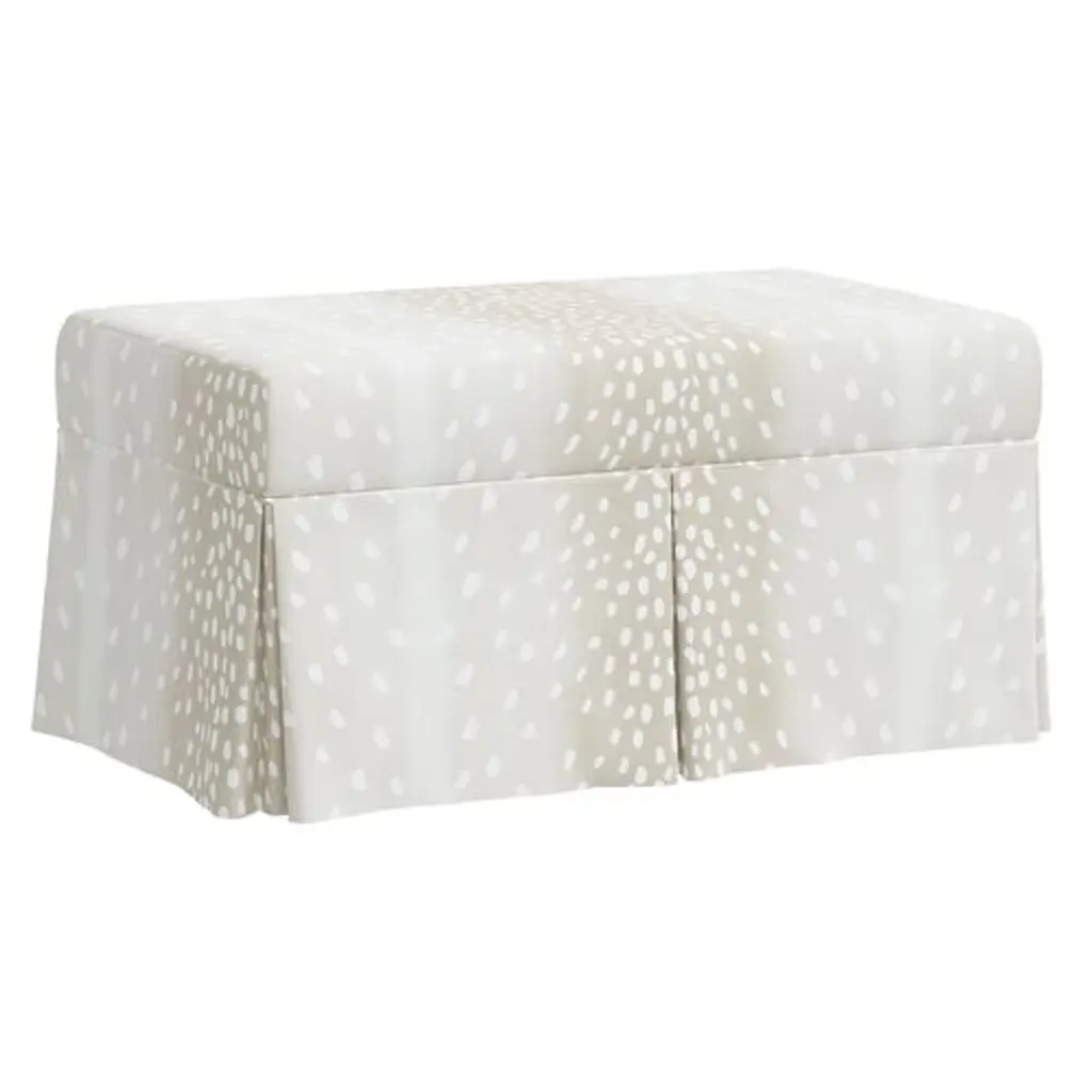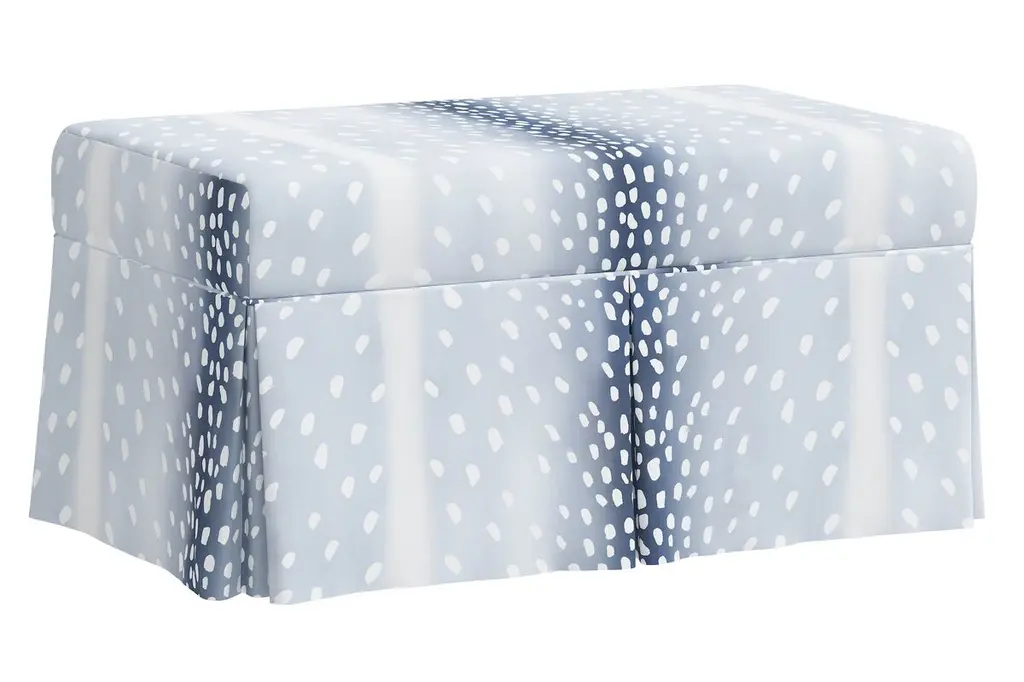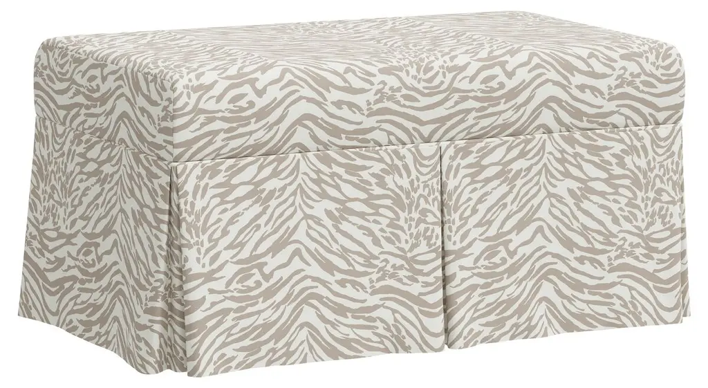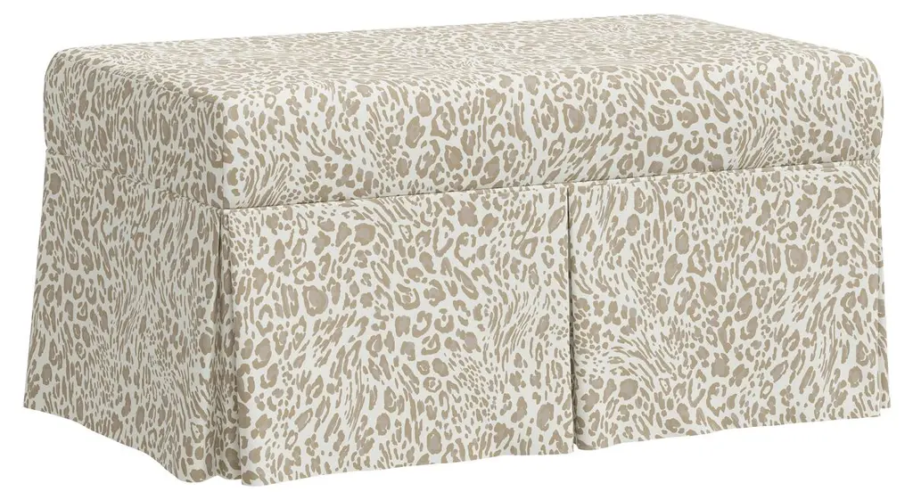 Exclusive to One Kings Lane: A perfect marriage of style and function, this bench has a tailored skirt and upholstery in a glamorous animal print. The comfortably padded, lift-top seat lifts open to reveal always-welcome storage space.