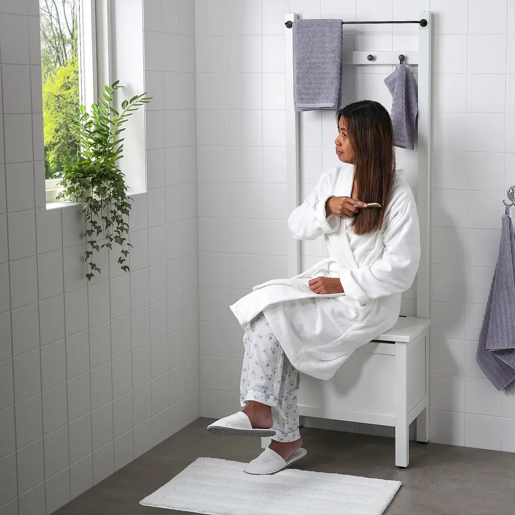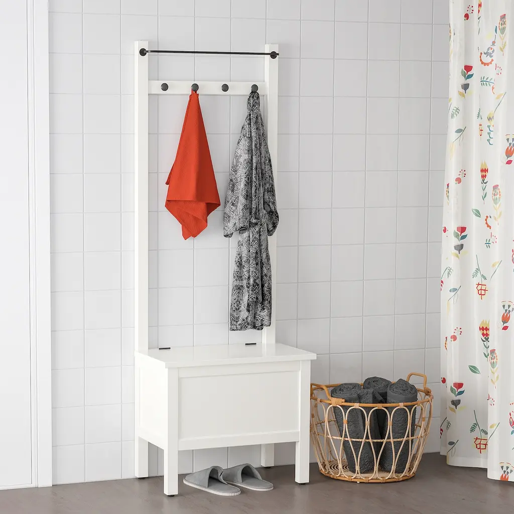 HEMNES Storage bench w/towel rail+4 hooks