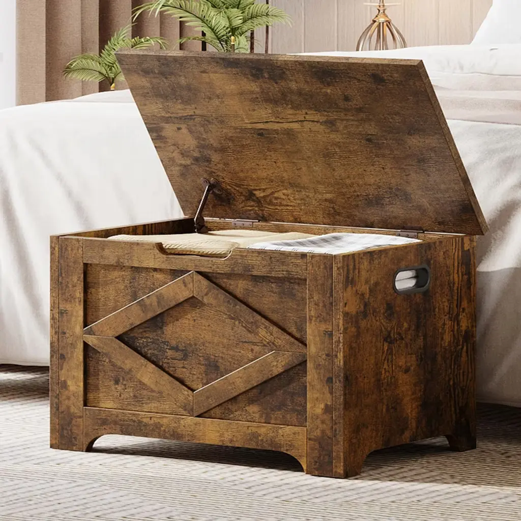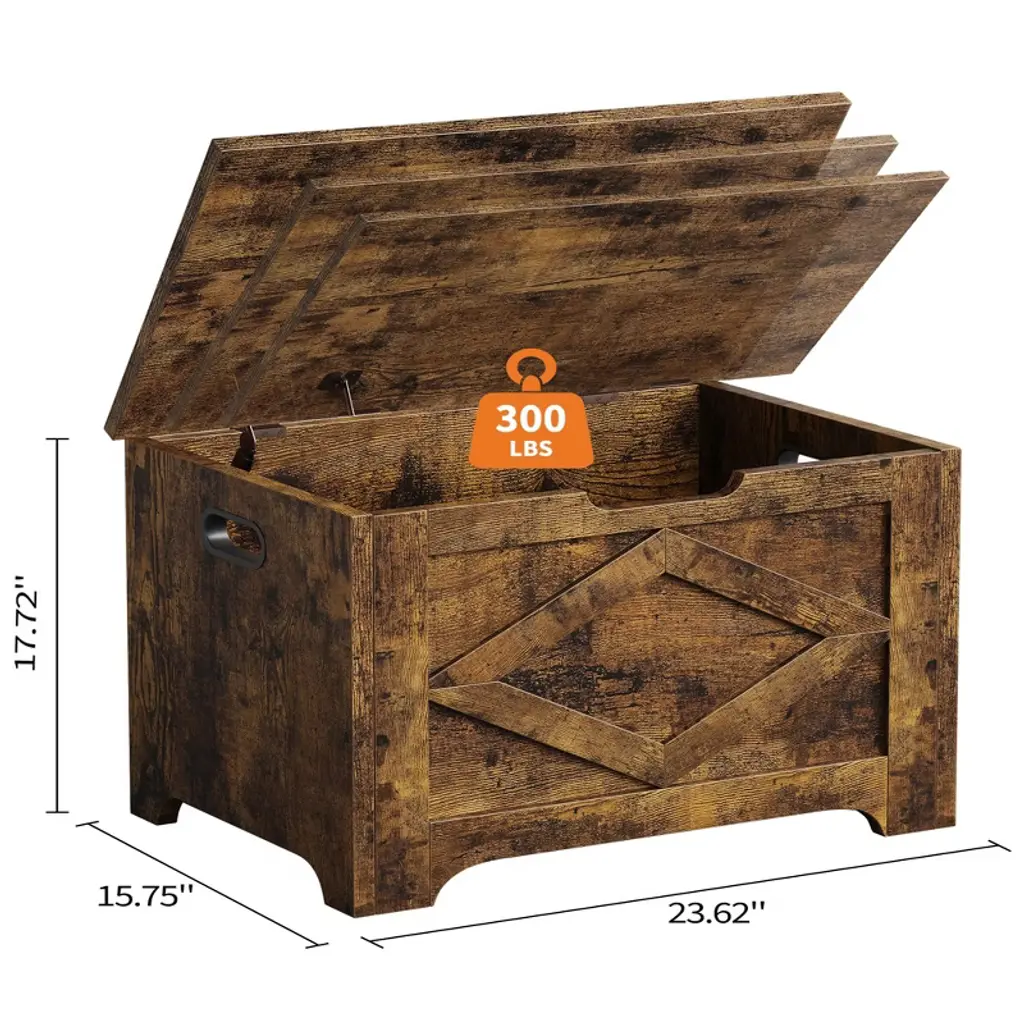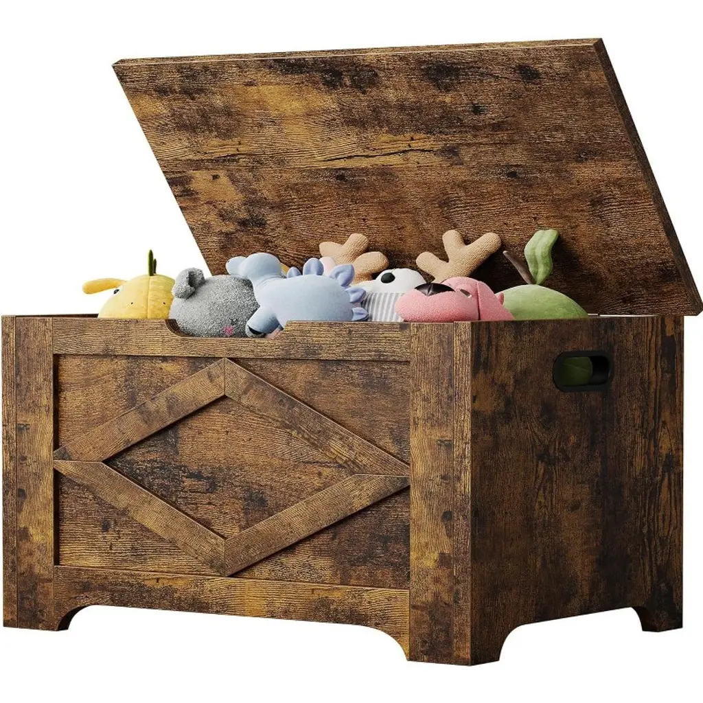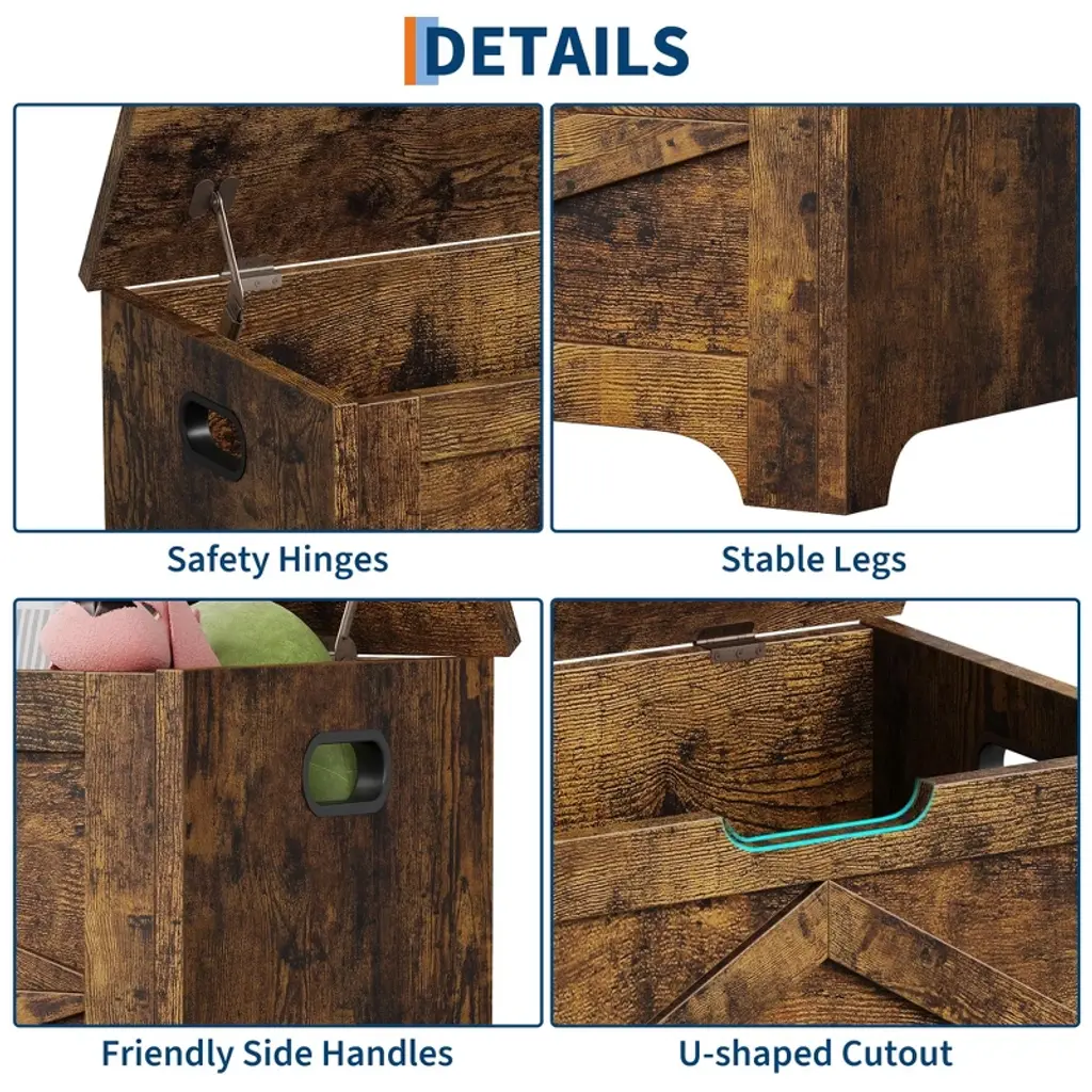 Jojoka Storage Chest, Storage Bench With Safety Hinge, Farmhouse Style Wooden Toy Chest For Entryway,