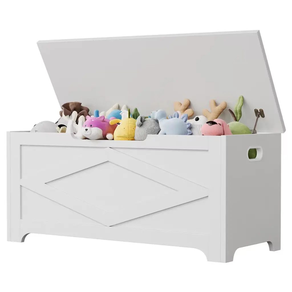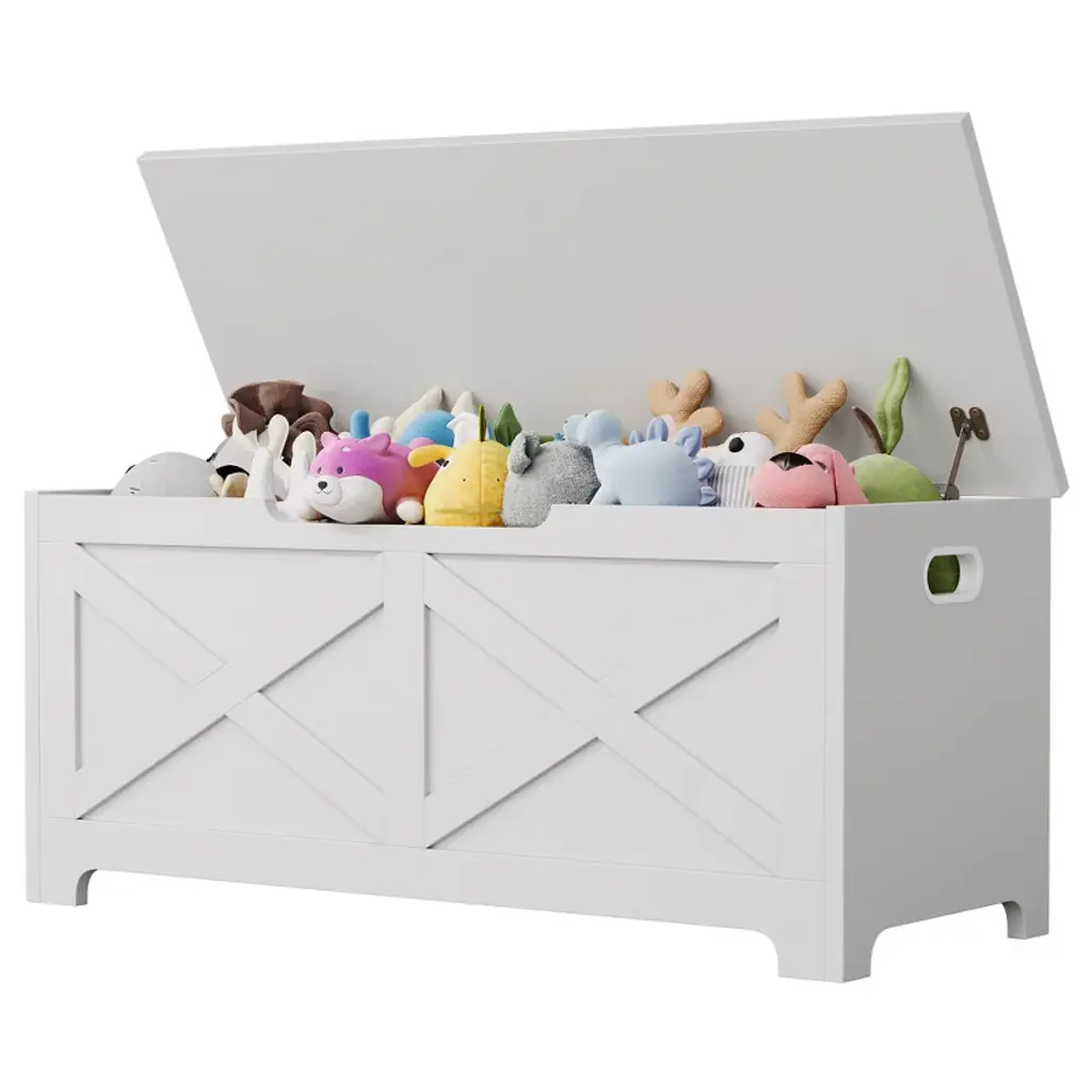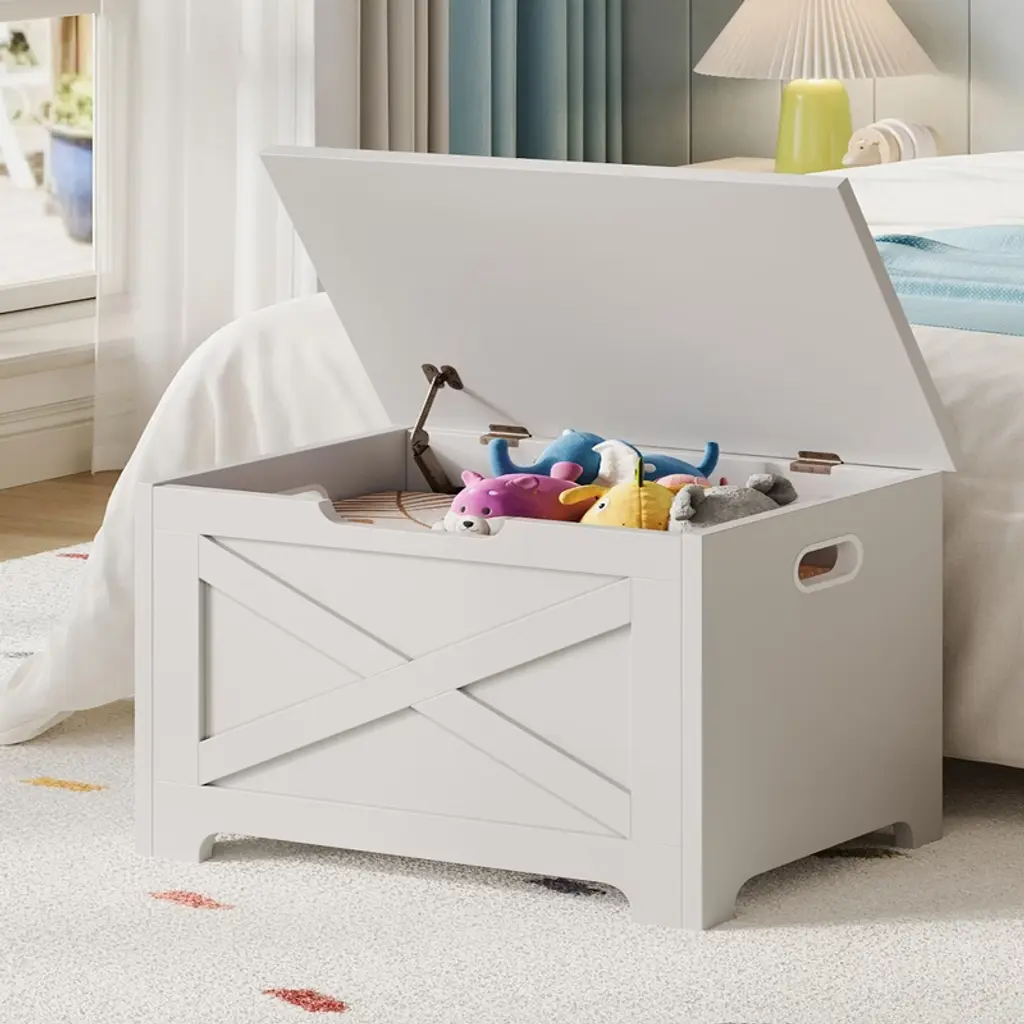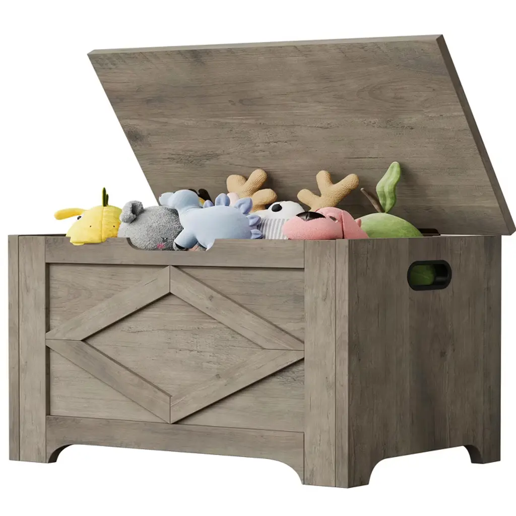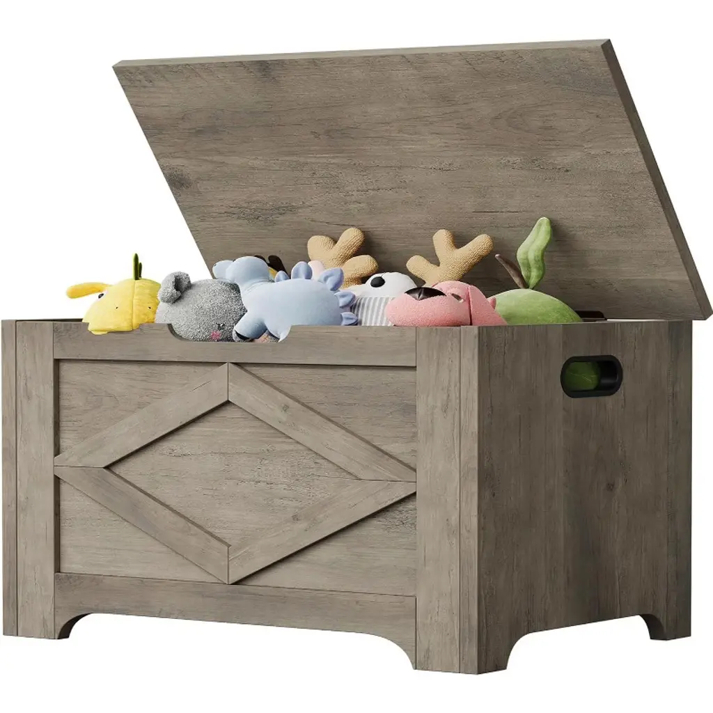 Storage Chest, Storage Bench with Safety Hinge, Farmhouse Style Wooden Toy Chest for Entryway,
