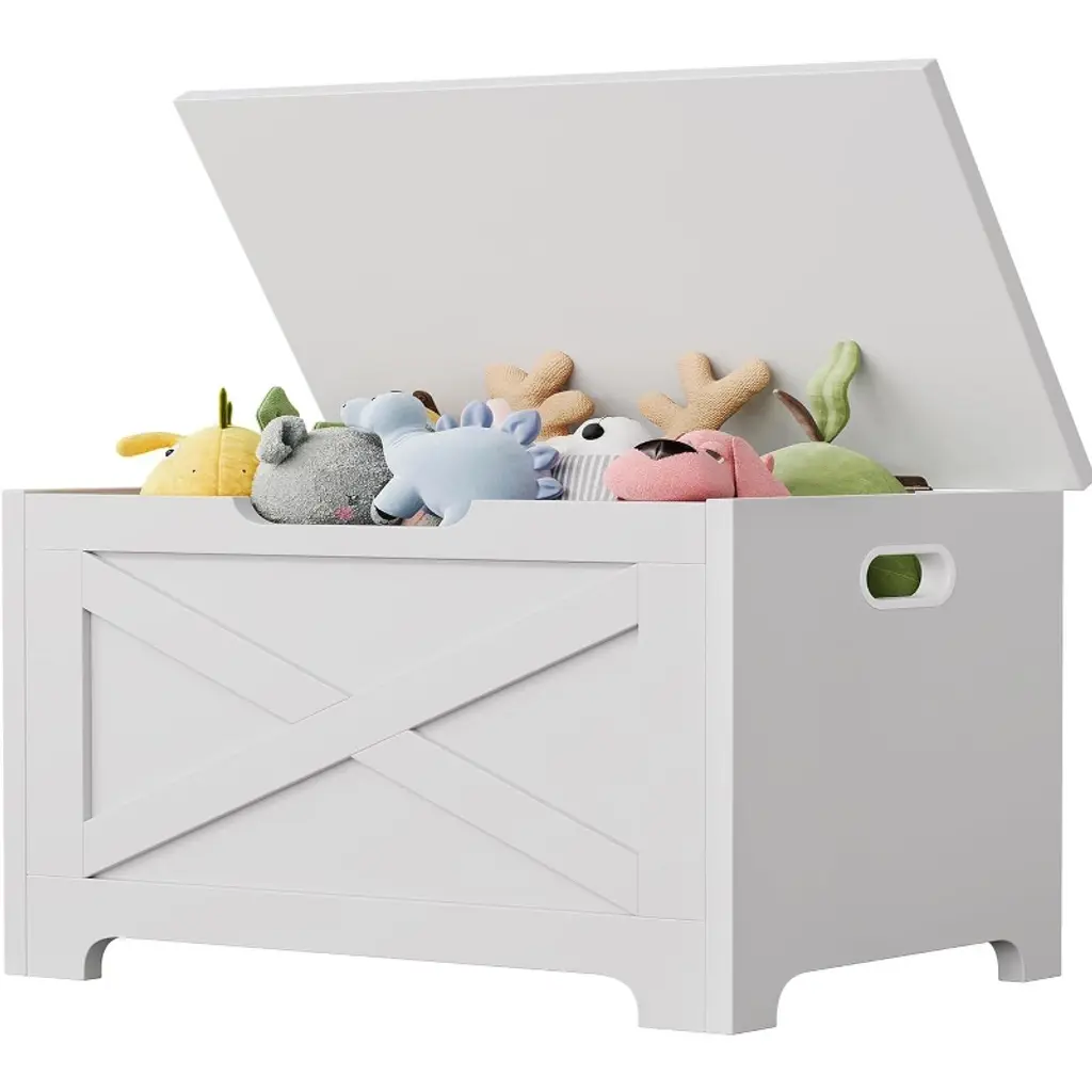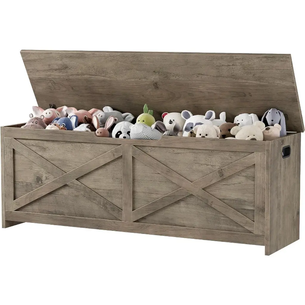 Jojoka Storage Chest, Storage Bench With Safety Hinge, Farmhouse Style Wooden Toy Chest For Entryway,