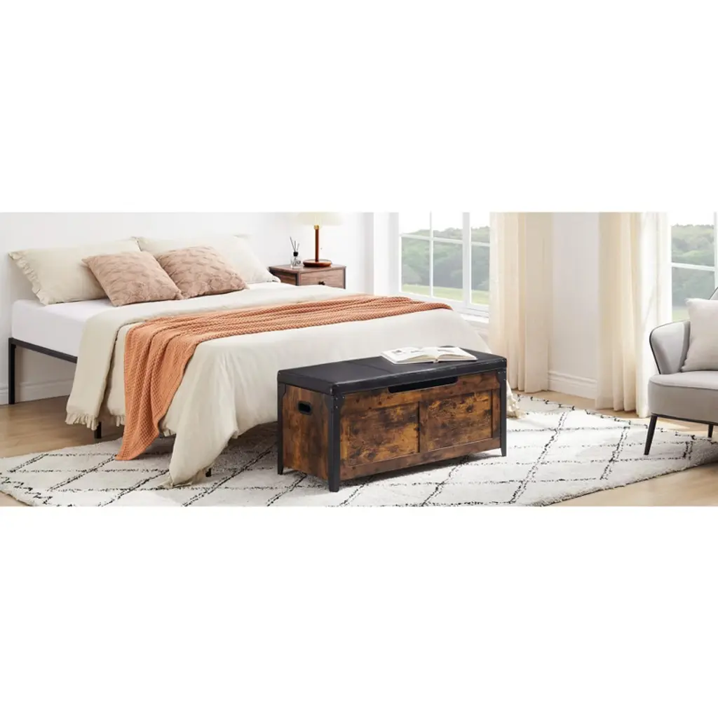 Maximize your entryway organization with this sturdy storage bench featuring a smooth-lifting top and dual safety hinges for secure access. The spacious interior offers hidden storage for shoes, bags, or seasonal items, while the weighted base ensures stability. Upholstered in easy-clean fabric, the cushioned top doubles as extra seating. Perfect for mudrooms, bedrooms, or living rooms.