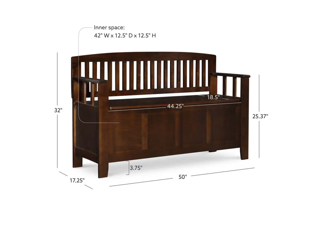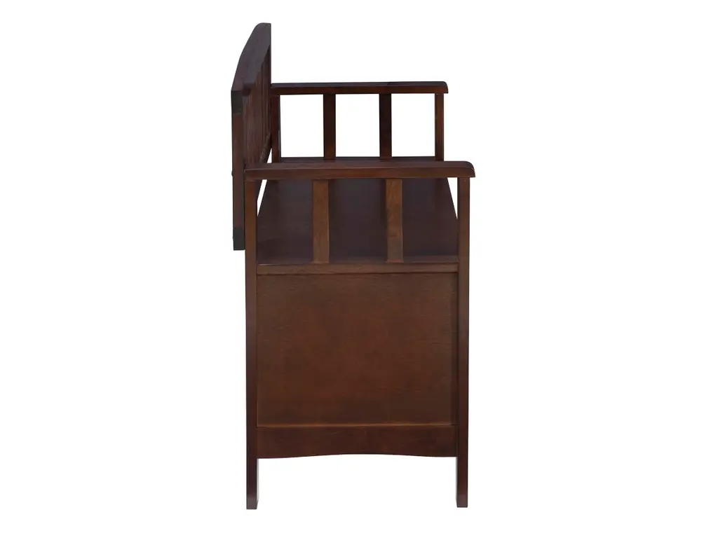 Create added seating and storage to your foyer or mudroom with this attractive and functional Cynthia Storage Bench. The bench features a flip top lid, allowing the user to easily retrieve articles from the storage compartment. The slat designed back and sides are enhanced by the walnut finish.
