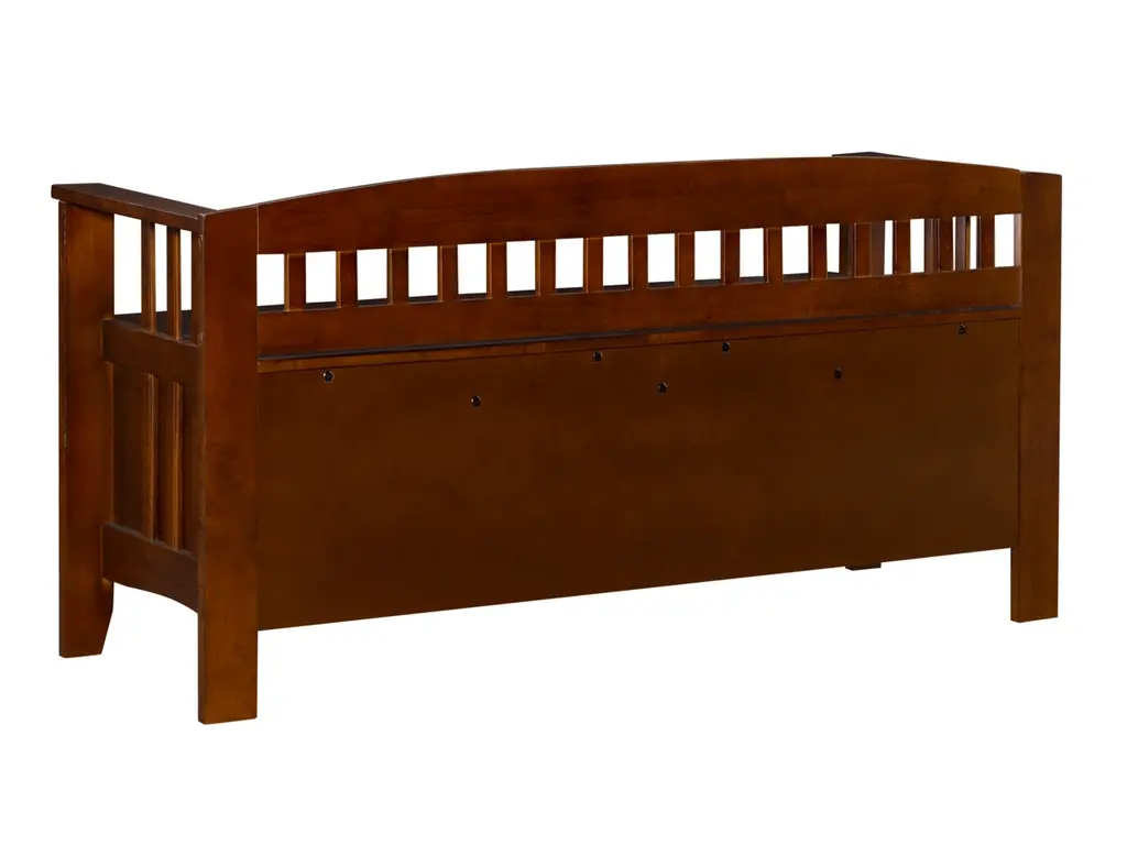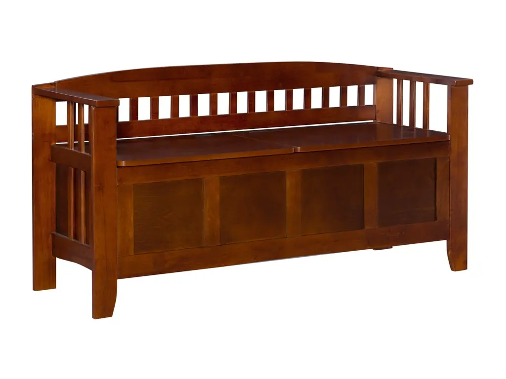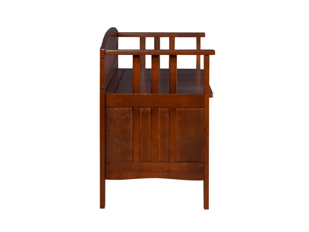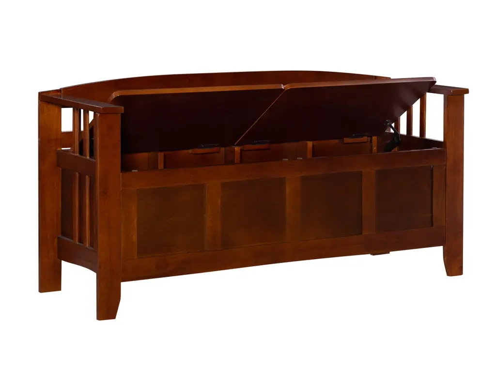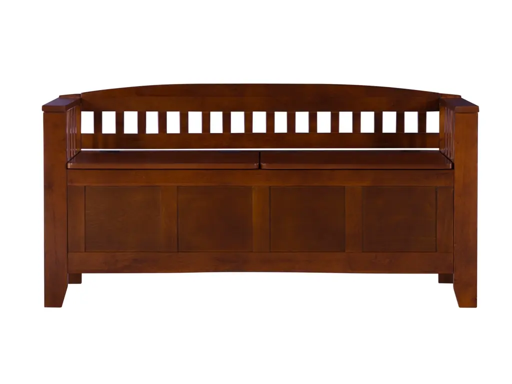 Create added seating and storage to your foyer or mudroom with this attractive and functional split seat storage bench. The bench features a split seat, allowing the user to rest on one side of the bench, while retrieving articles from the storage compartment on the opposite side. The slat designed low back and sides are enhanced by the warm walnut finish.