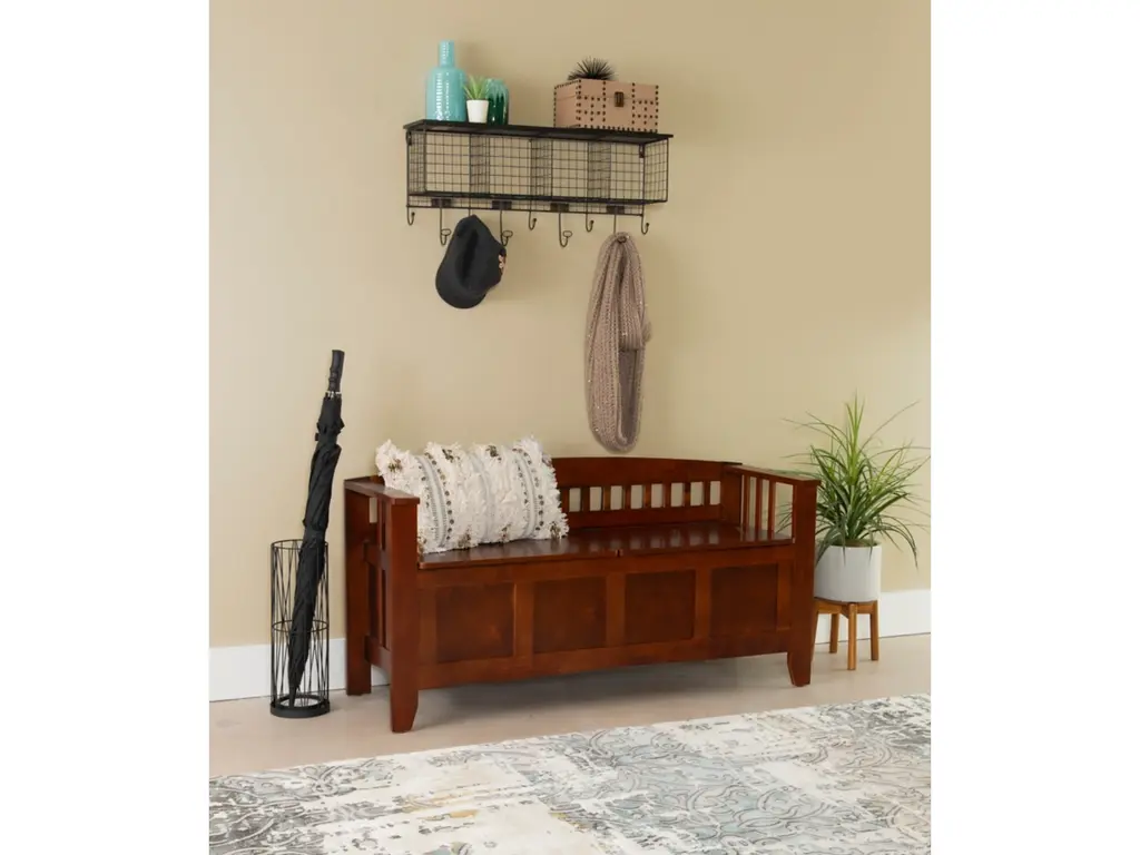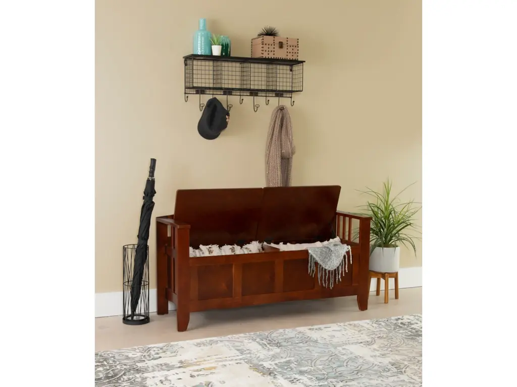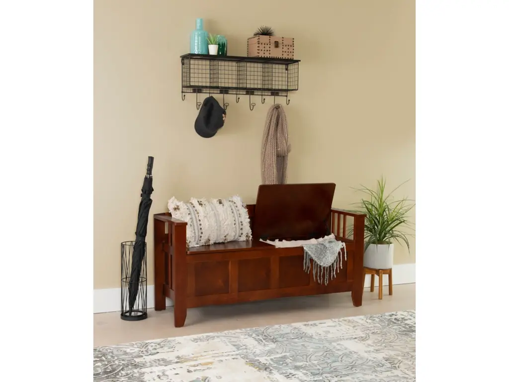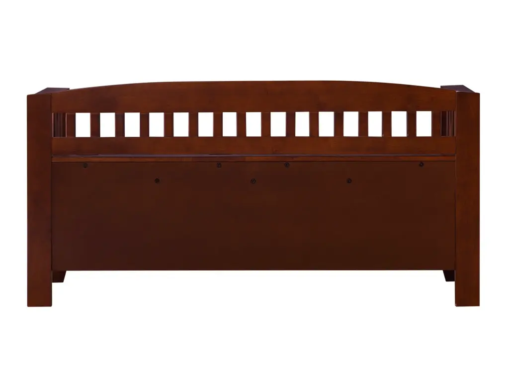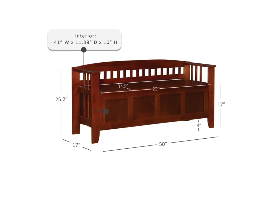 Create added seating and storage to your foyer or mudroom with this attractive and functional split seat storage bench. The bench features a split seat, allowing the user to rest on one side of the bench, while retrieving articles from the storage compartment on the opposite side. The slat designed low back and sides are enhanced by the warm walnut finish.