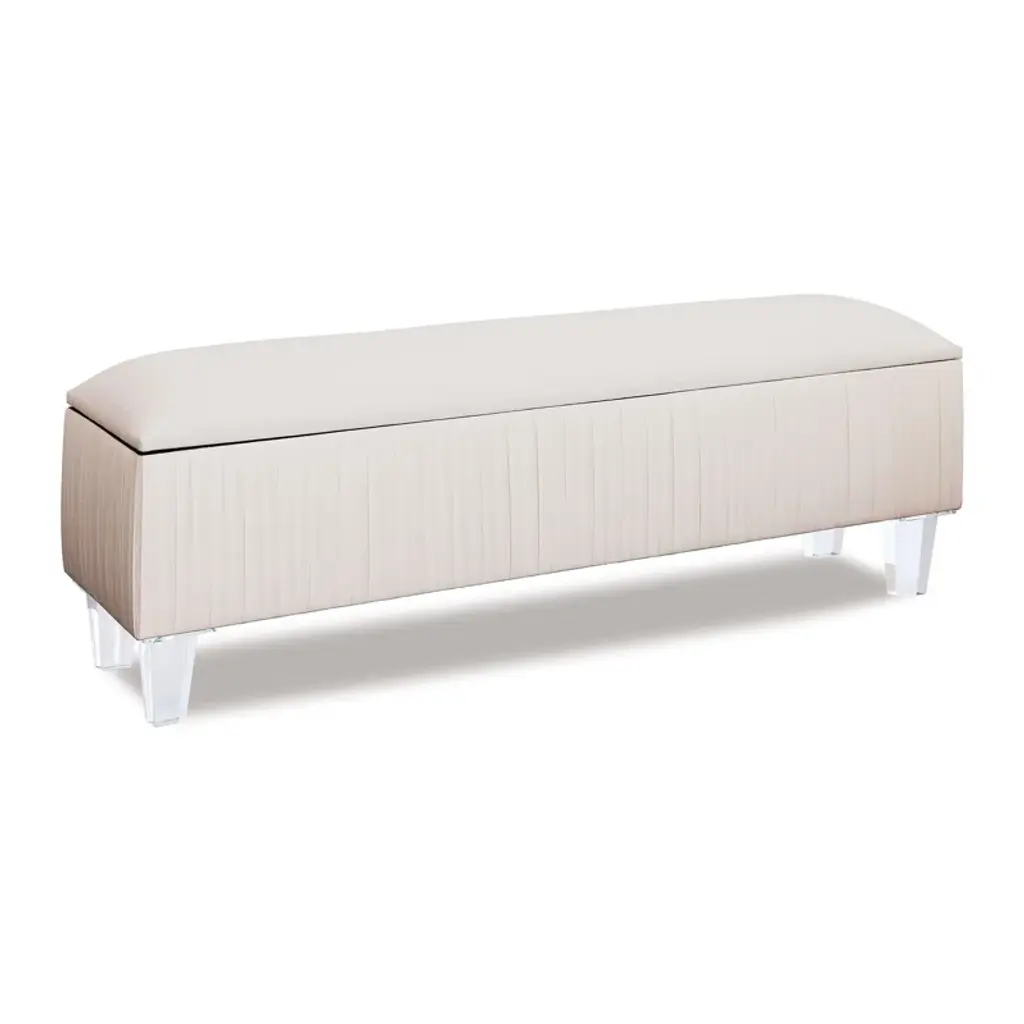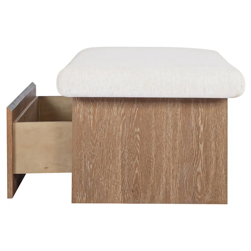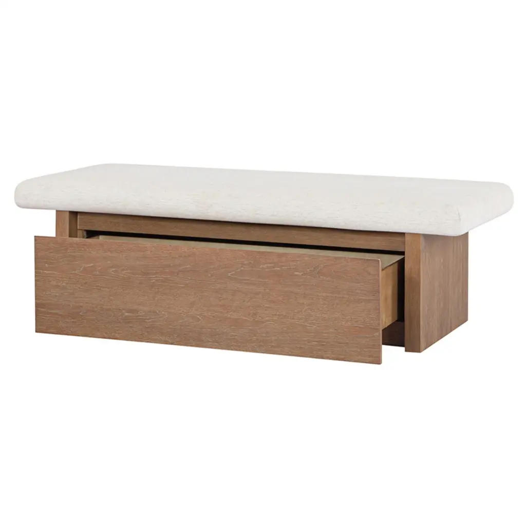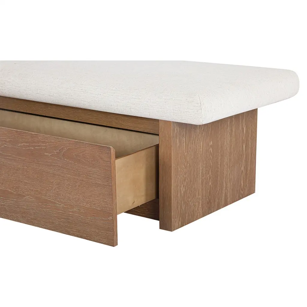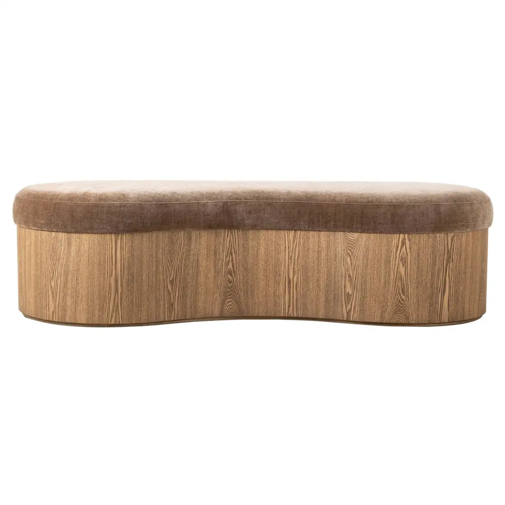Mona Modern Classic Oat Chenille Brown Oak Storage Bench