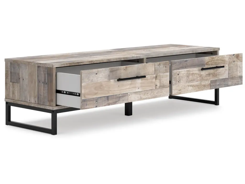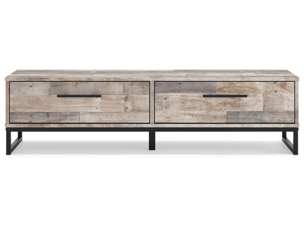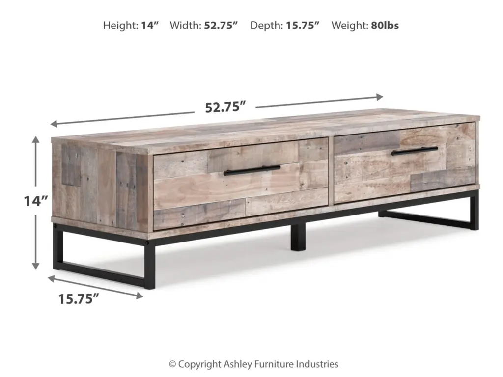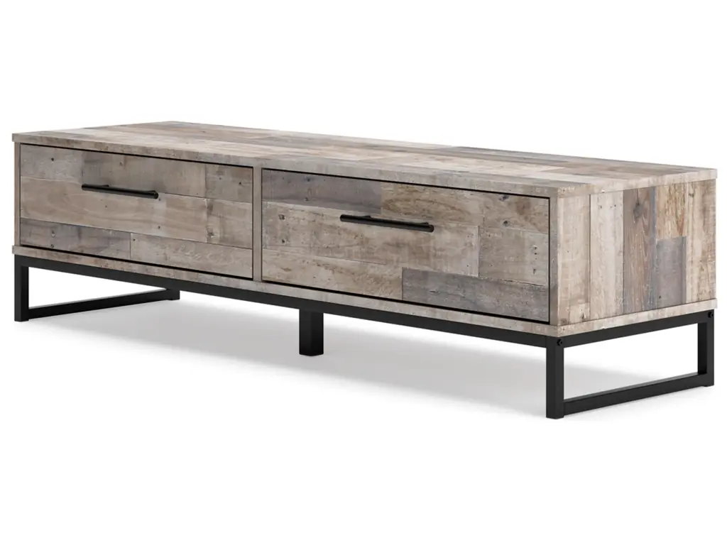 Part beach chic, part urban hip, the Neilsville storage bench provides stylish storage at a comfortably cool price. The butcher block whitewash finish over replicated pine grain lends a richly relaxed aesthetic that suits your sensibility. Two smooth-gliding drawers neatly tuck away clutter. Dark pewter-tone drawer pulls and metal legs add a high-design element.