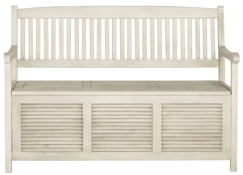The Suncast patio storage bench provides seating as well as outdoor storage space. The high back on this outdoor storage bench provides support. This storage bench with back is made from all-weather resin, making it ideal for the outdoors. Its stay-dry design prevents this resin patio bench's contents from getting moist or soggy. Some assembly required.