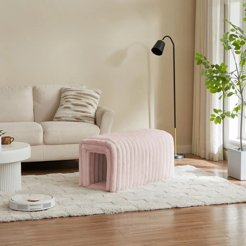 Pet Supplies Ottoman Storage Bench Corduroy Bench Cat's Nest To Hide For The Living Room, Entryway And Bedroom - Pink