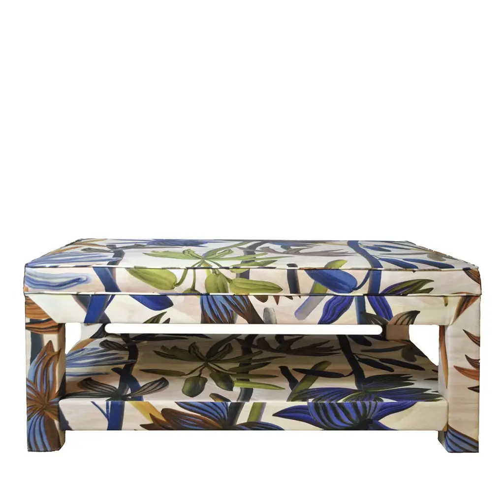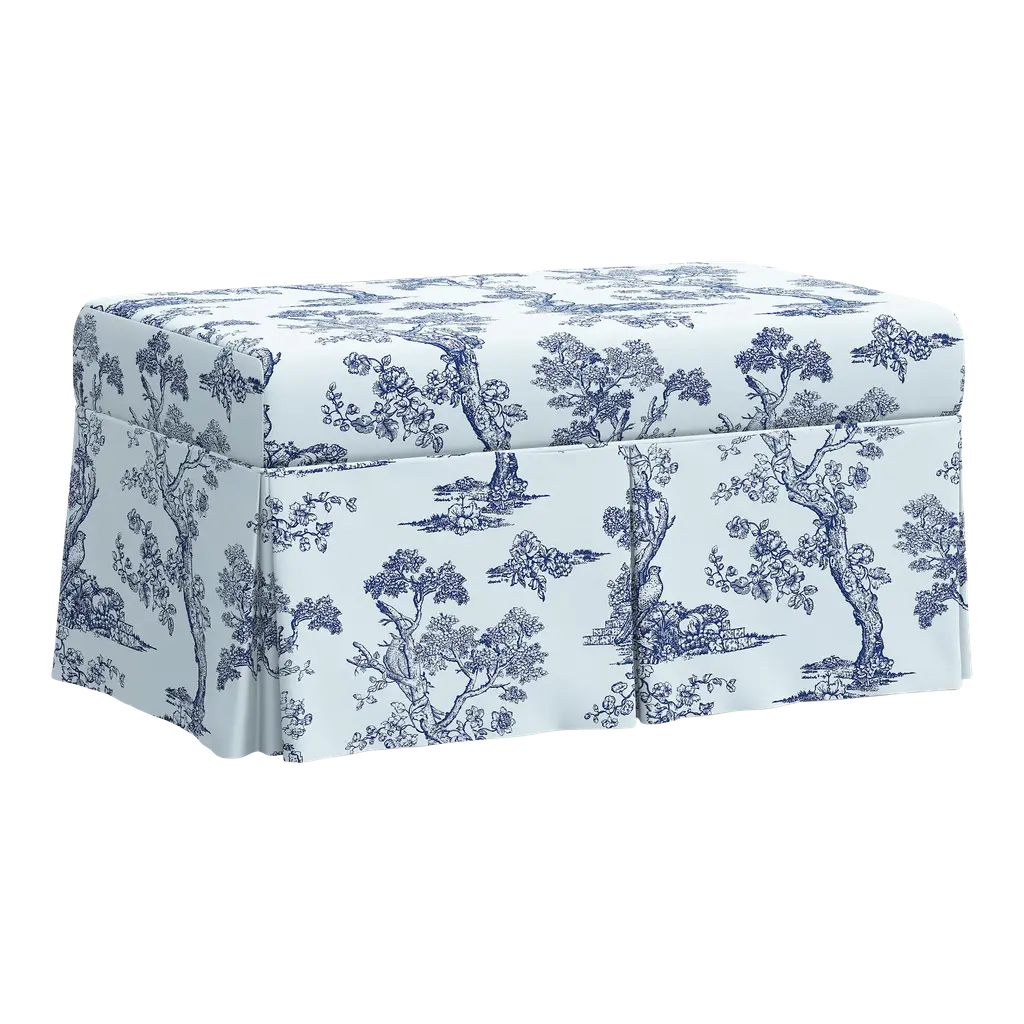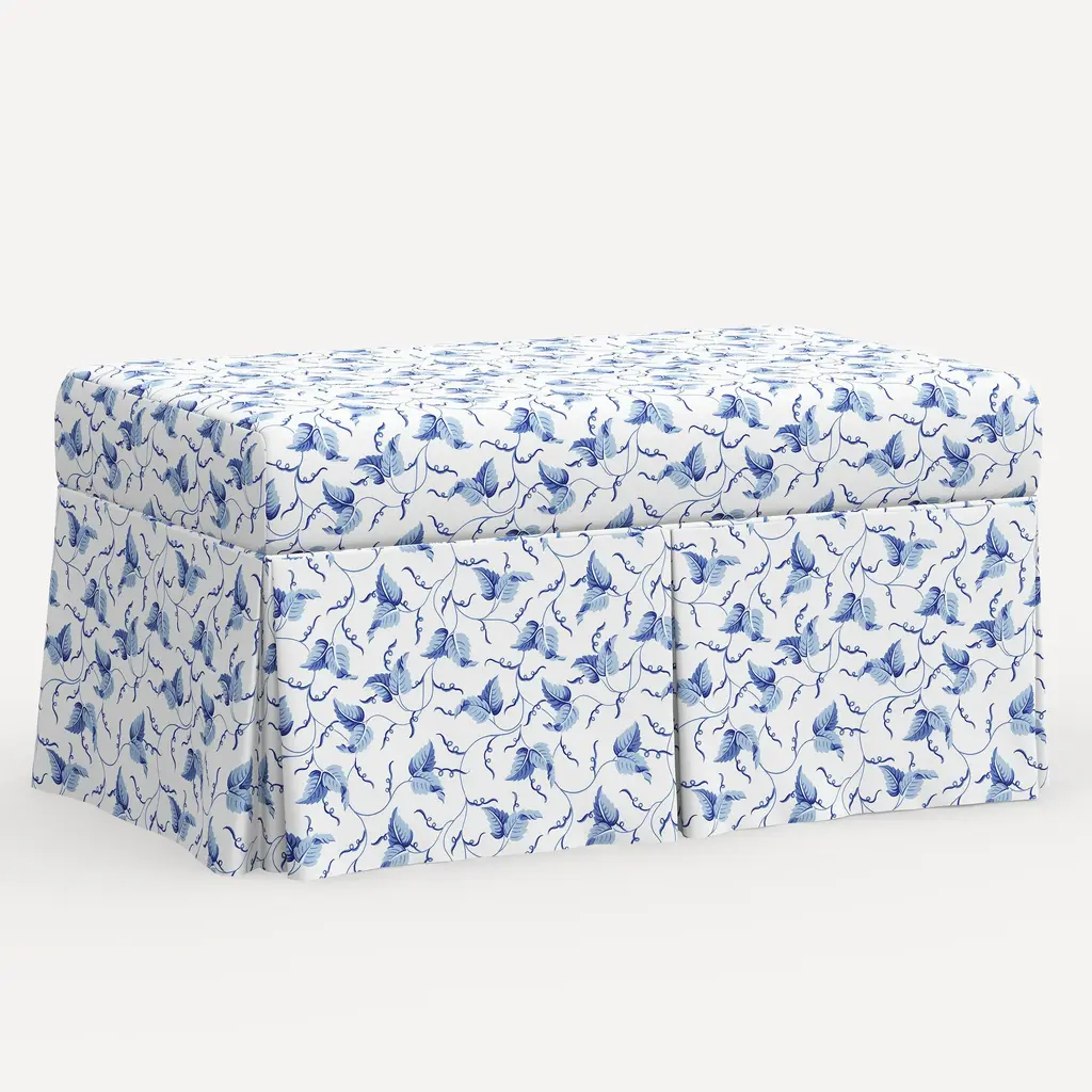Red From Scalamandre Crafted By Cloth & Company Norwalk Storage Bench, Baby Blue Ivy Scroll