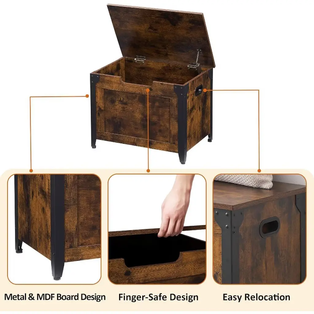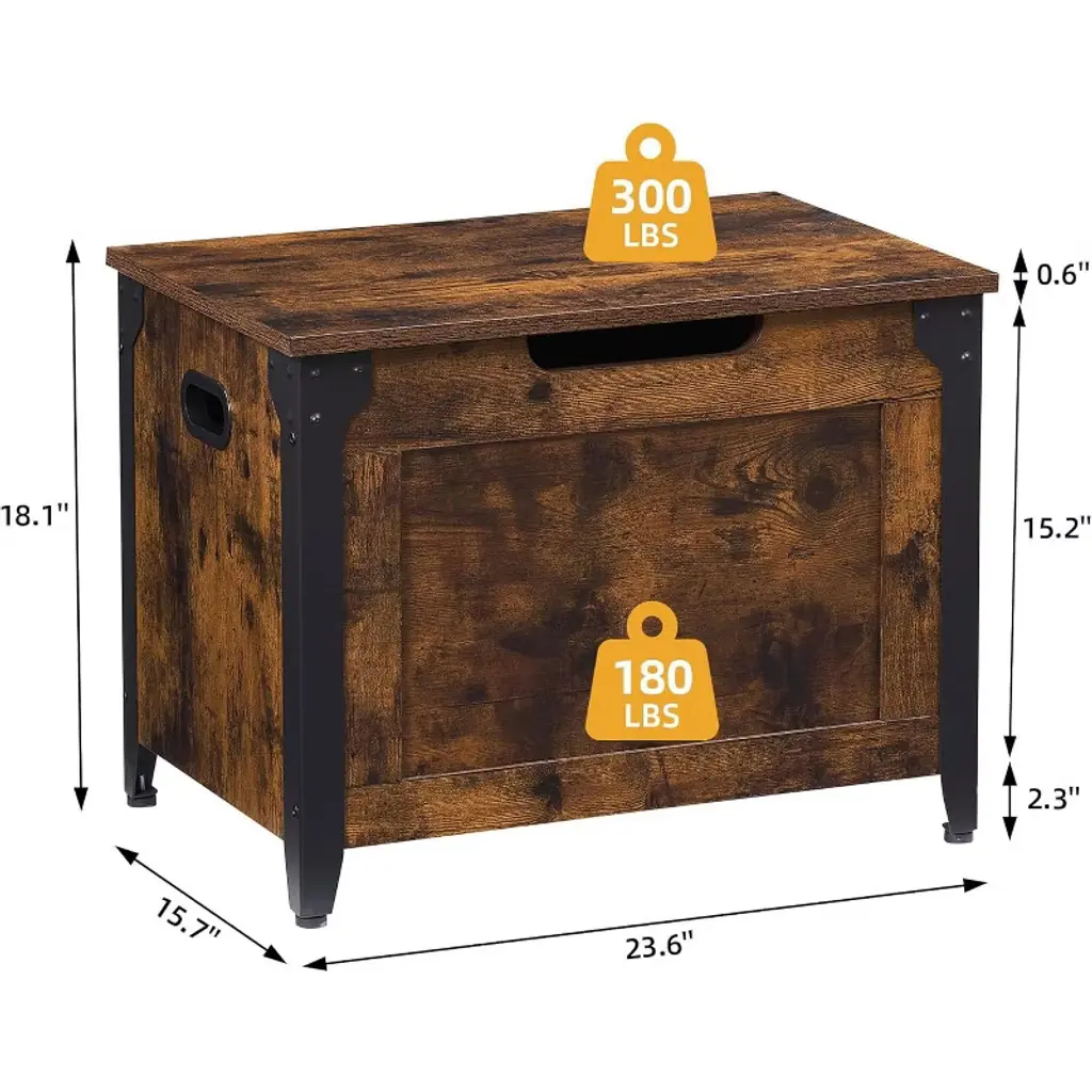 Retro Storage Bench, 23.6" Wooden Chest With Safety Hinges, Entryway Ottoman, 300 Lb Weight Limit, For Living Room, Bedroom, Simple Setup