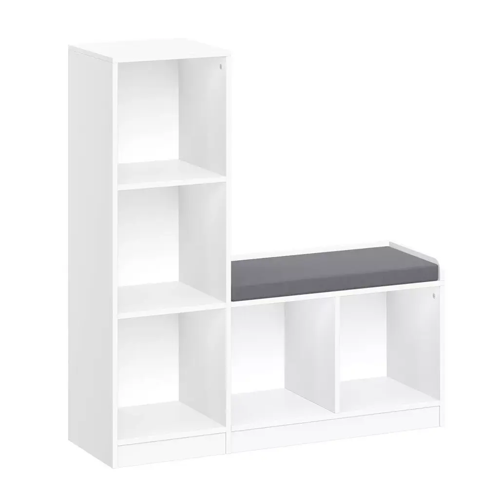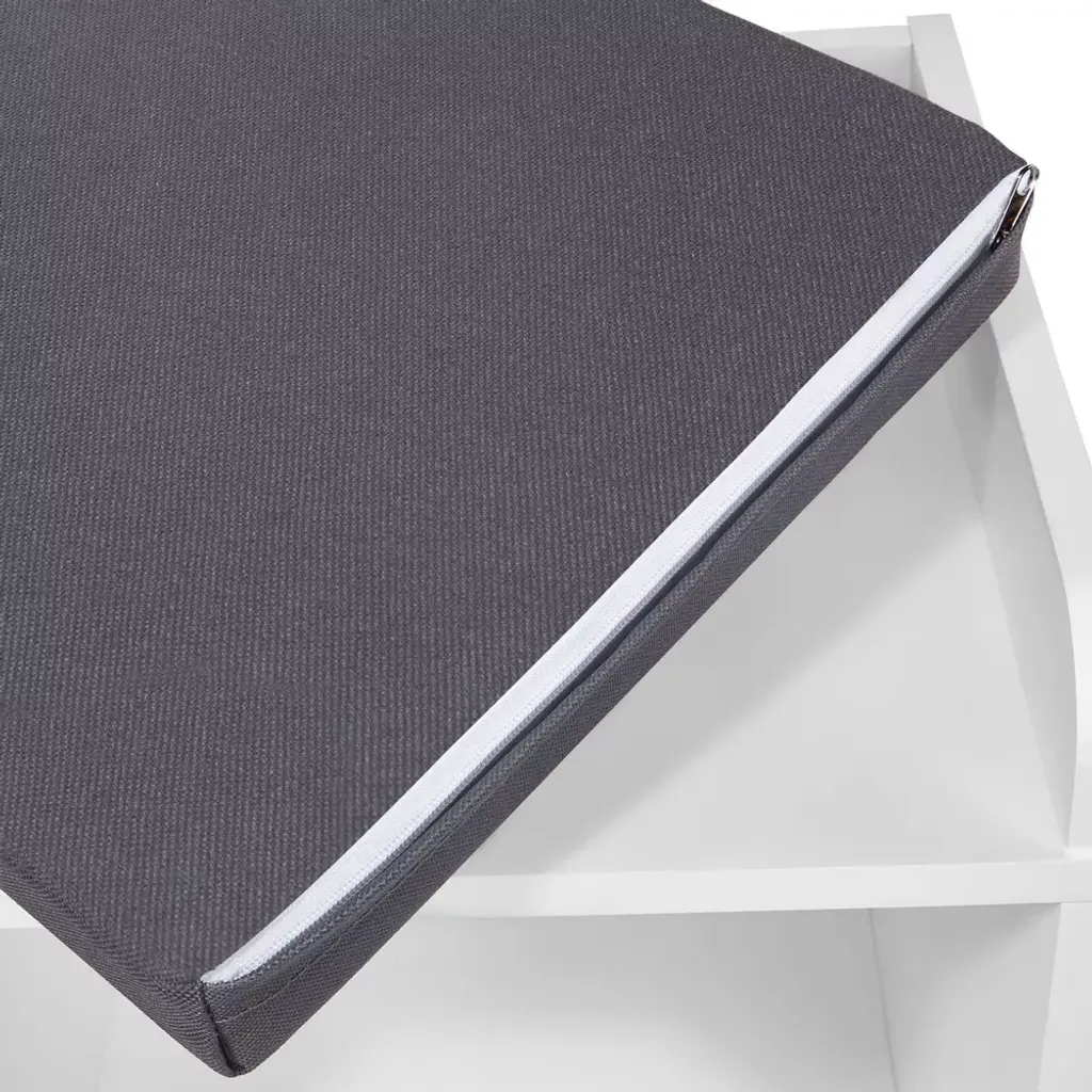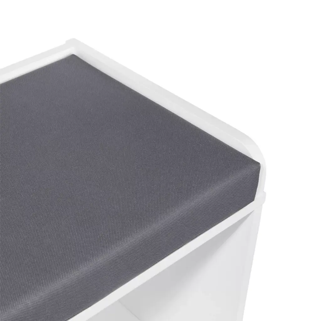 Our 5 Cubby Storage Bench is an excellent addition to your child's playroom. With its 5 square cubbies, it provides ample space to neatly store toys, books, and games. The smooth, white painted finish and clean lines give it a modern touch that complements any decor. Transform our 5 Cubby Storage Bench into a cozy reading nook for your little one. The dark gray cushioned seat, measuring 14 in. in height, offers a comfortable spot for children to curl up with their favorite books. The cubbies below provide easy access to their book collection, making it a convenient all-in-one solution for fostering a love of reading. Our 5 Cubby Storage Bench is not only stylish but also designed with safety in mind. The included adjustable anchor brackets allow you to securely mount the bench to the wall, ensuring stability and preventing tip-overs. With a weight capacity of 75 lbs., it's sturdy enough for multiple children to use at once