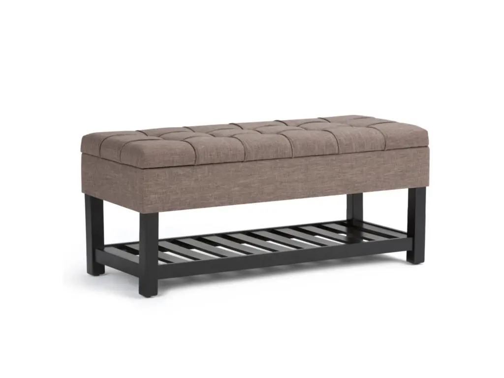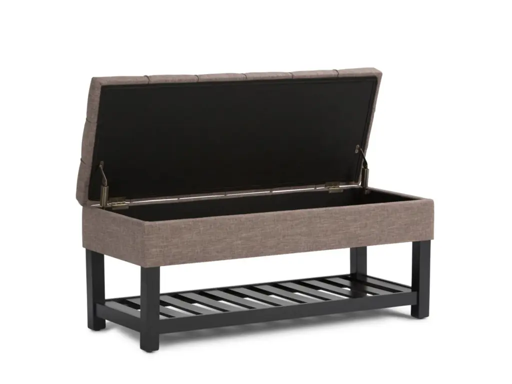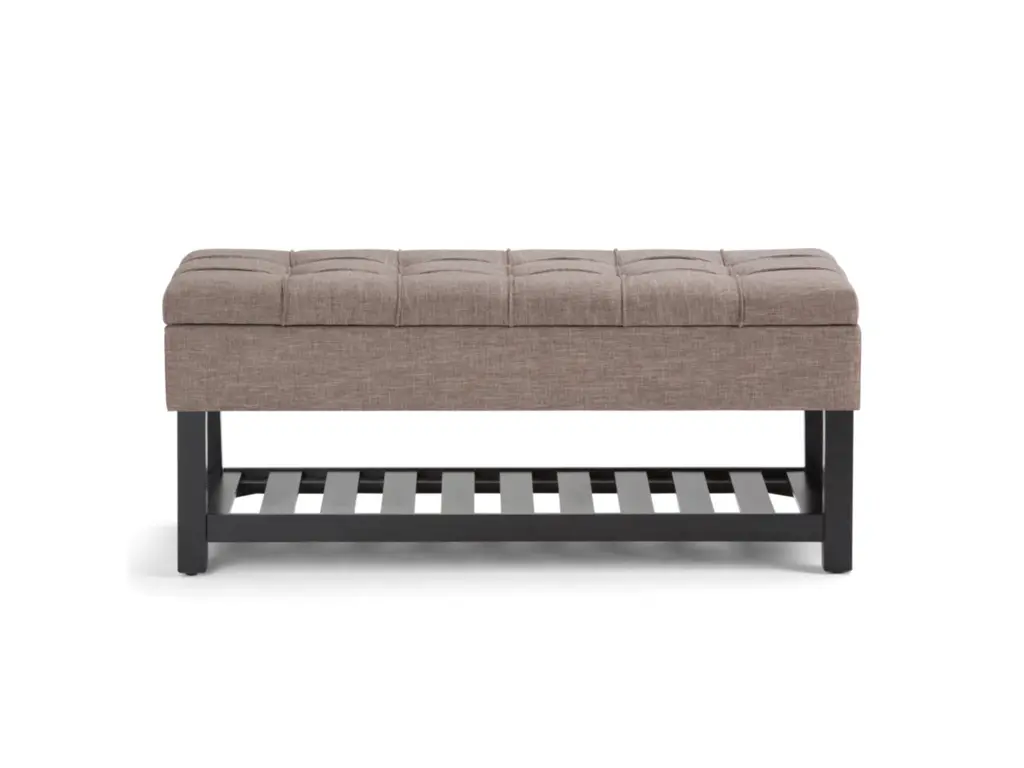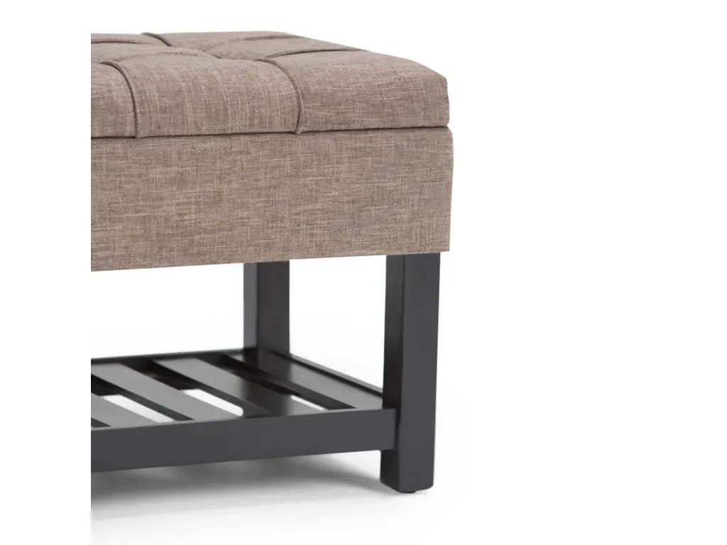 Why sacrifice function for beauty. When you are looking for a tasteful, well-made storage solution and extra seating, look no further than this storage ottoman. Made from durable faux linen upholstery, it’s extra strong and sturdy with a stitched and tufted exterior, a large storage interior and a bottom storage area. Whether you are using it in your entryway, living room or bedroom, this ottoman is a pretty and practical piece of furniture.