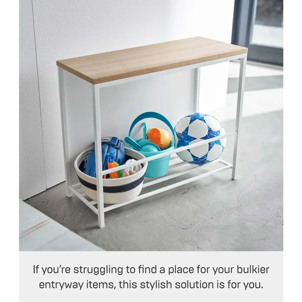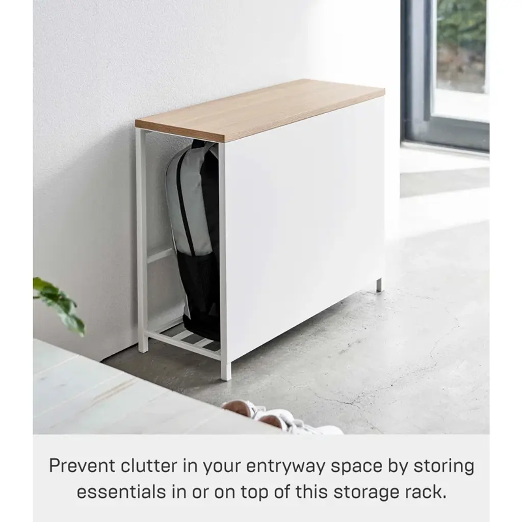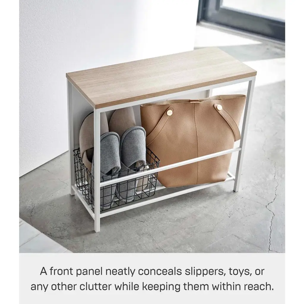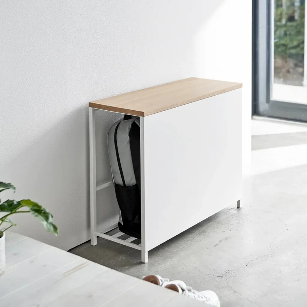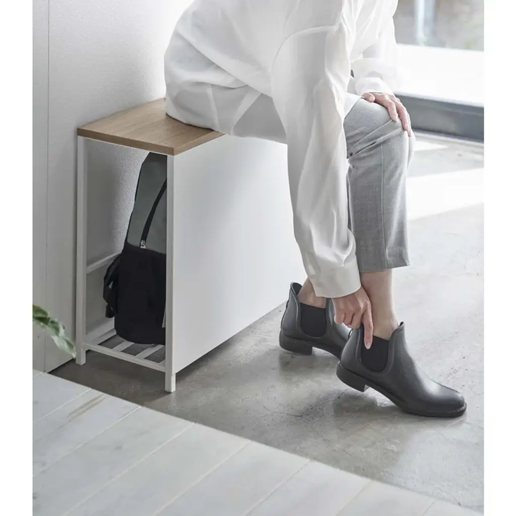 Make a grand entrance. Yamazaki entryway magic strikes again! If you’re struggling to find a place for some of your bulkier entryway items, this stylish organizer and entryway bench is for you. A front panel neatly conceals slippers, outdoor toys, or any other entryway clutter while keeping them within reach, making it the ideal storage solution for frequently-used items. Better yet, it also doubles as a bench so you can easily tie your shoelaces or fasten buckles, as well as provide a convenient perch for your bags and purses when you walk in the door.