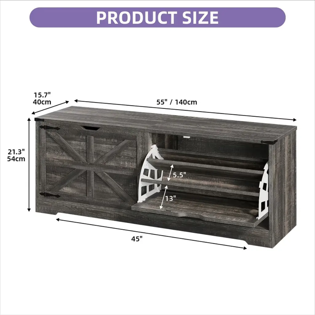 Color: Dark Rustic OakMaterials: Engineered Wood, MetalItem Overall Size(LxWxH): 15.75in x 55.12in x 20.87inItem Weight: 73.3 poundsMounting Type:FreestandingAssembly Required:YesPackage Included:1 x Shoe Cabinet1 x Assembly Kit