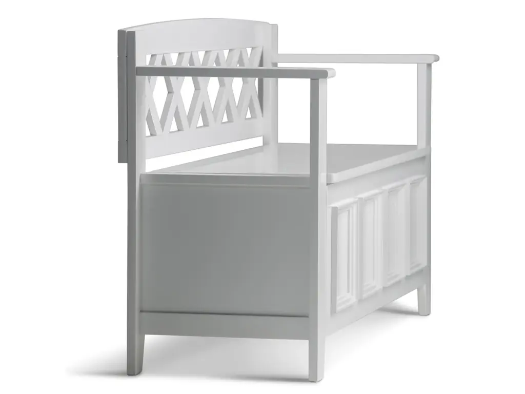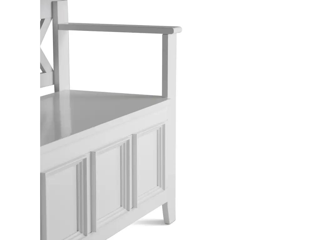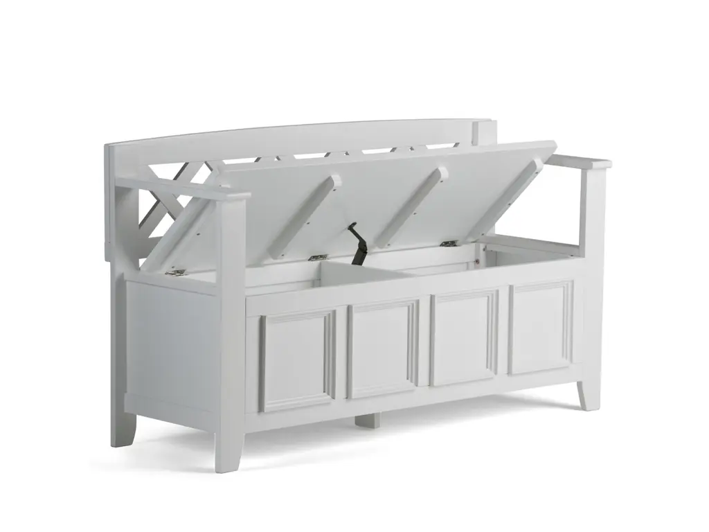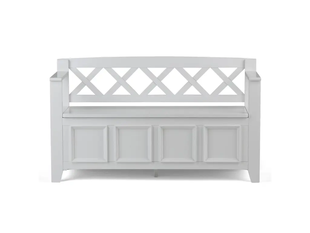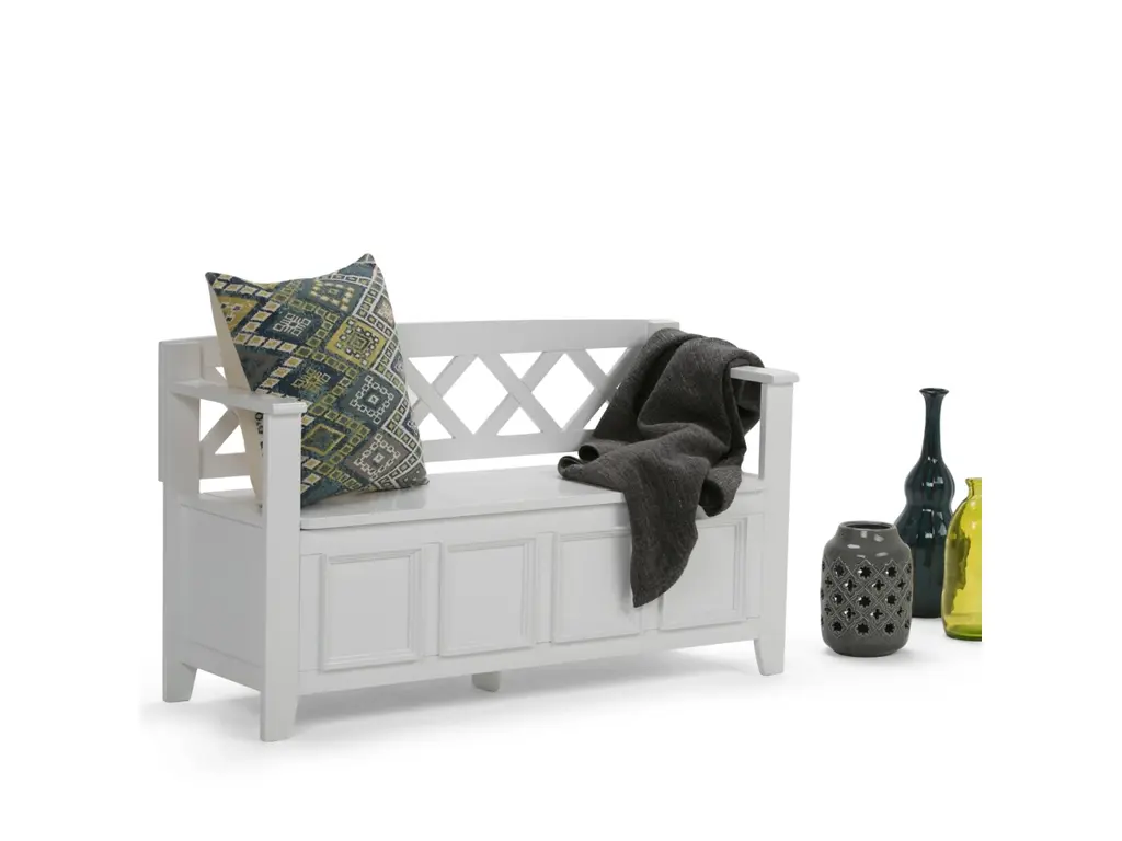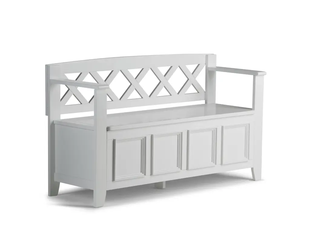 The Amherst Storage Bench, made from solid wood, allows your inner designer to shine through while creating added storage and seating for your entryway or mudroom. "Form follows function" design rules apply here as the bench features a convenient flip up lid allowing for easy retrieval of articles from the dual storage compartment below.