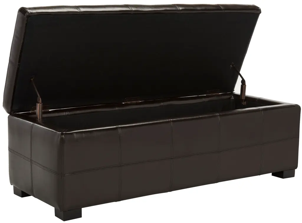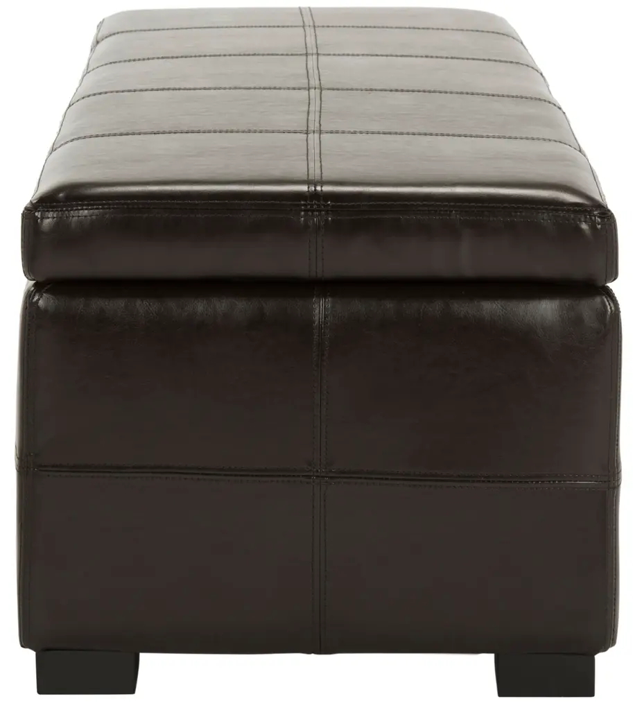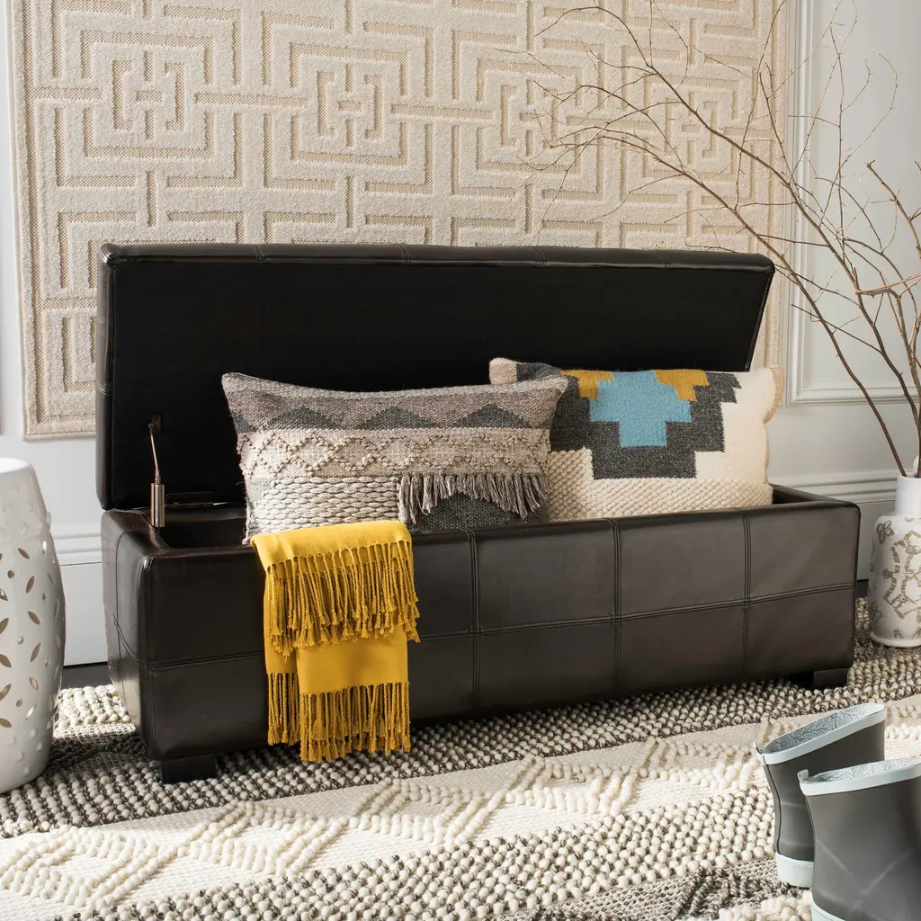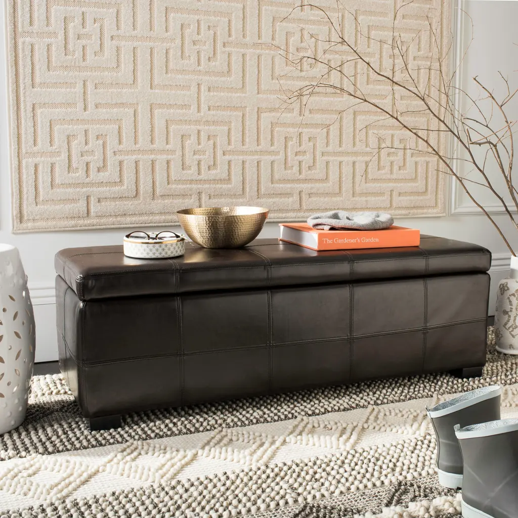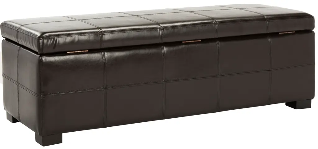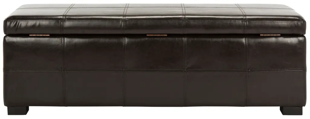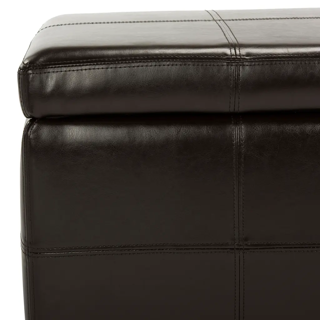 The elegantly appointed Large Storage Ottoman is a interior indulgence, offering both seating and storage. Crafted with sleek brown bicast leather and birch wood in a black finish, it's modern spirit is evidenced in it's dual functionality. Although leather is one of the most durable upholstery materials, proper care is vital to maintain it's appearance and performance. Dust weekly using a soft, clean cloth slightly dampened with distilled water. Blot spills immediately with a soft, clean absorbent dry cloth.