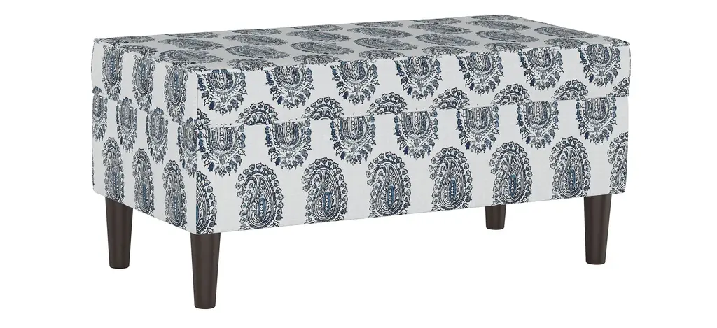 Inspired by a design traditionally known for its precise lines, the Verona storage bench provides storage and mid-century modern style all in one. Upholstered in a gorgeous fabric with a hinge lid that is hand crafted for easy access. This storage piece is both fashionable and functional. Made to order and manufactured in Illinois.