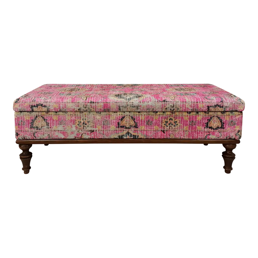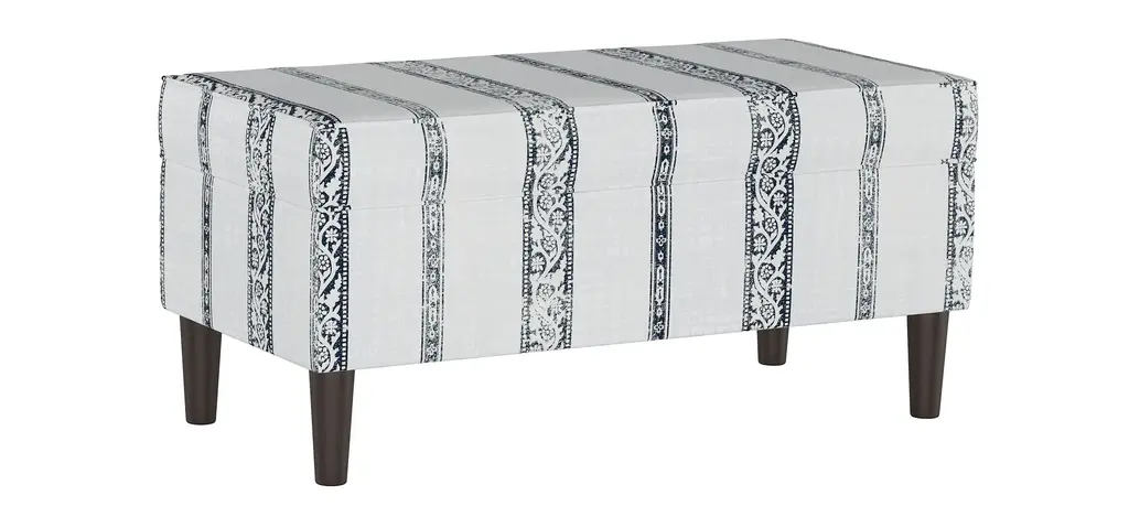 Inspired by a design traditionally known for its precise lines, the Verona storage bench provides storage and mid-century modern style all in one. Upholstered in a gorgeous fabric with a hinge lid that is hand crafted for easy access. This storage piece is both fashionable and functional. Made to order and manufactured in Illinois.