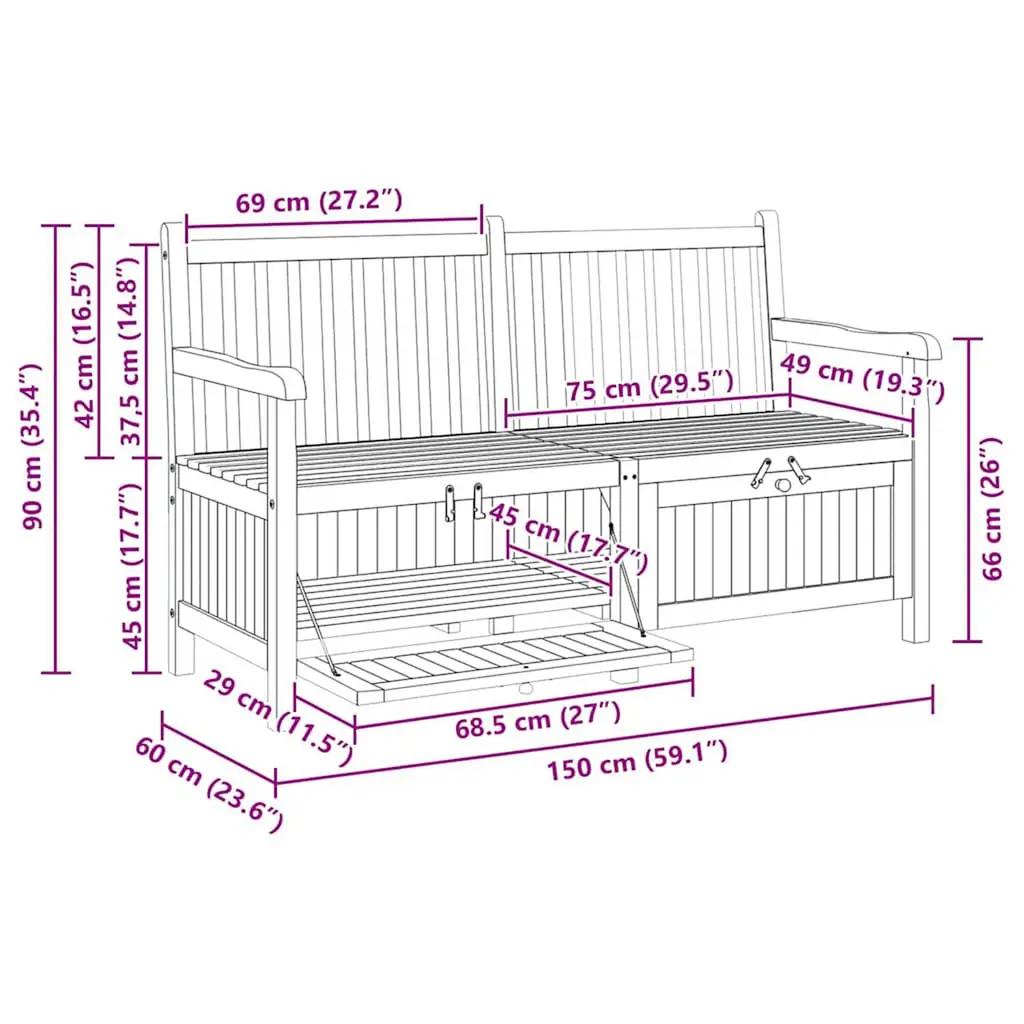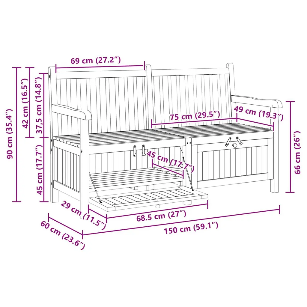 Vidaxl Garden Storage Bench Brown 150 X 60 X 90 Cm Solid Teak Wood