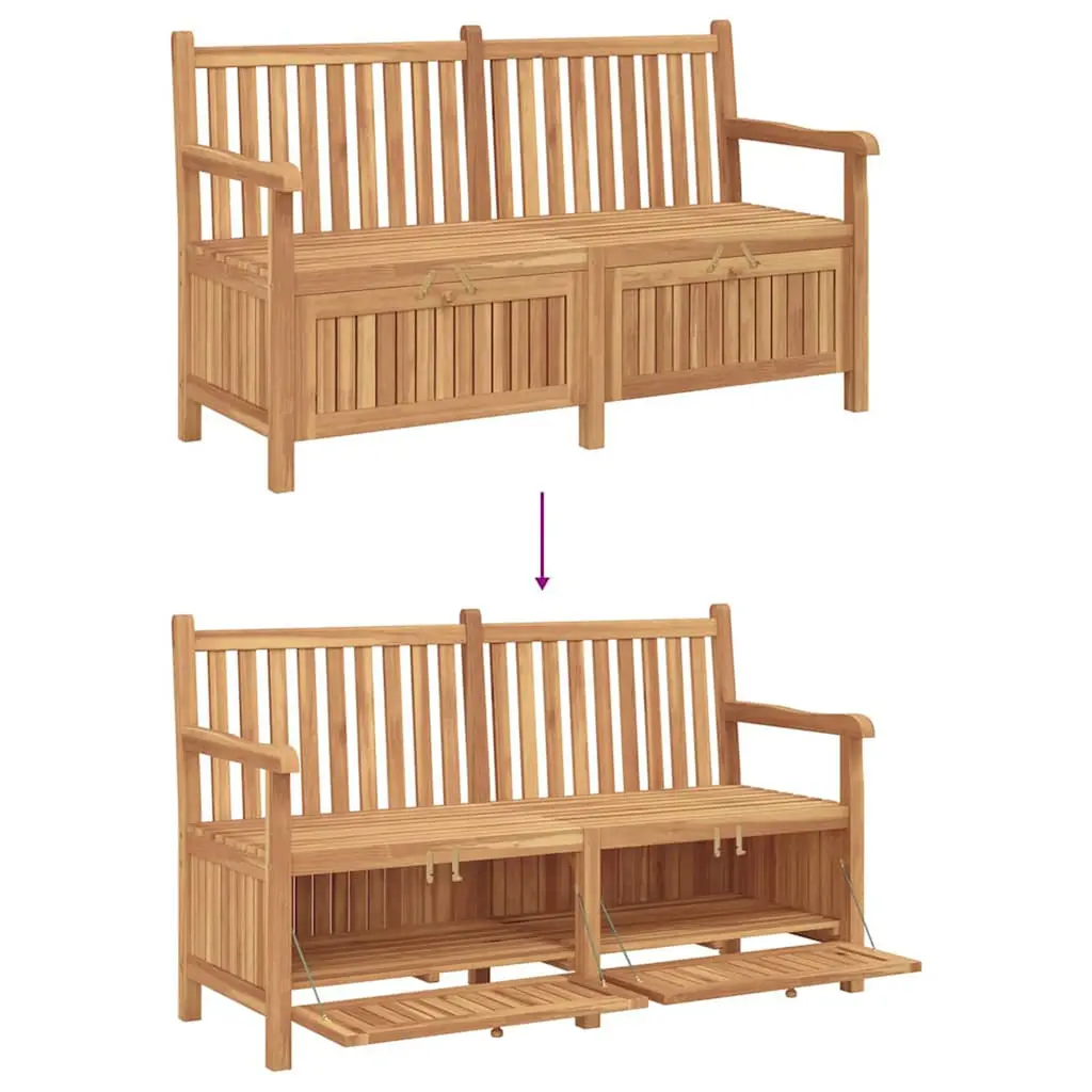 This lovely outdoor bench has a rustic charm that’ll brighten up any space. It's not just about looks—it’s practical too, making it a top pick for yards and patios. The smooth, warm tones of solid teak wood give it a really inviting vibe, perfect for chilling or just having a think. With comfy armrests and a backrest, it’s awesome for backyard get-togethers or a relaxed afternoon read. With its nature-inspired style, this bench fits seamlessly into the outdoors, creating a great balance between style and usability. Quality Build: This garden bench is made from solid teak wood, known for being strong and stunning. It handles the weather like a champ and will look fantastic for years. Teak's moisture-resistance means it won’t wear out quickly, making it perfect for any kind of weather. Its natural oils stop it from rotting, so you know it’ll last.Secret Storage: Under the comfy seat is a clever hidden storage area. Perfect for stashing garden tools, cushions, or anything else you need. It’s a great mix of seating and storage all in one.Comfy Design: With its carved wooden armrests and supportive backrest made from solid teak, this bench is all about your comfort. It’s built to keep you comfy for longer, matching your body’s natural posture.Outdoor Ready: Made especially for the outdoors, it fits garden and patio themes perfectly. Use it on its own or pair it with other patio furniture for a flexible setup. Its inviting design makes it a great choice for any outdoor gathering.Easy to Care For: Just cover it in bad weather to keep it looking fresh. Don’t leave it in extreme heat for too long. A little care will keep this bench a key part of your outdoor area.