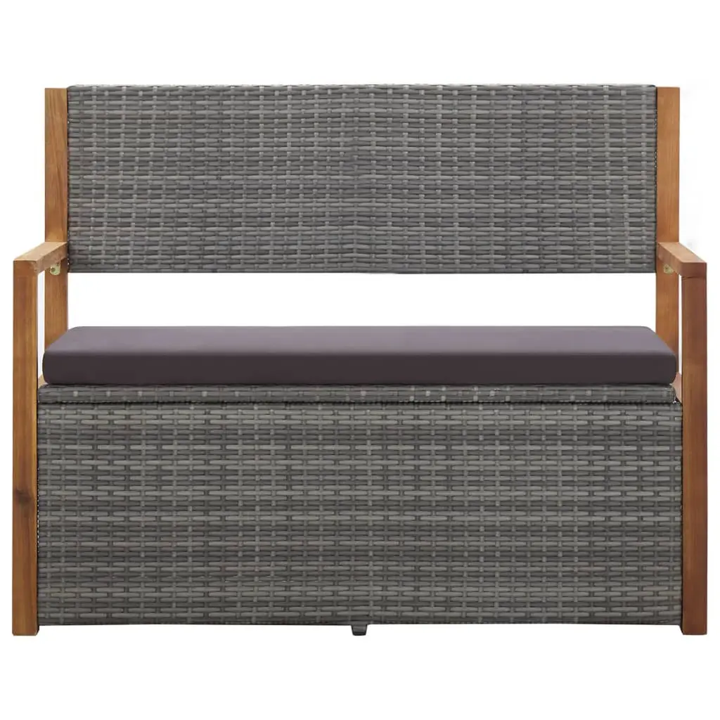 Vidaxl Storage Bench 45.3" Poly Rattan And Solid Acacia Wood Gray