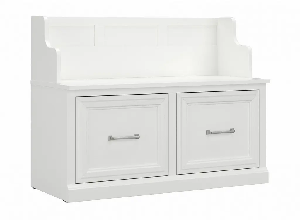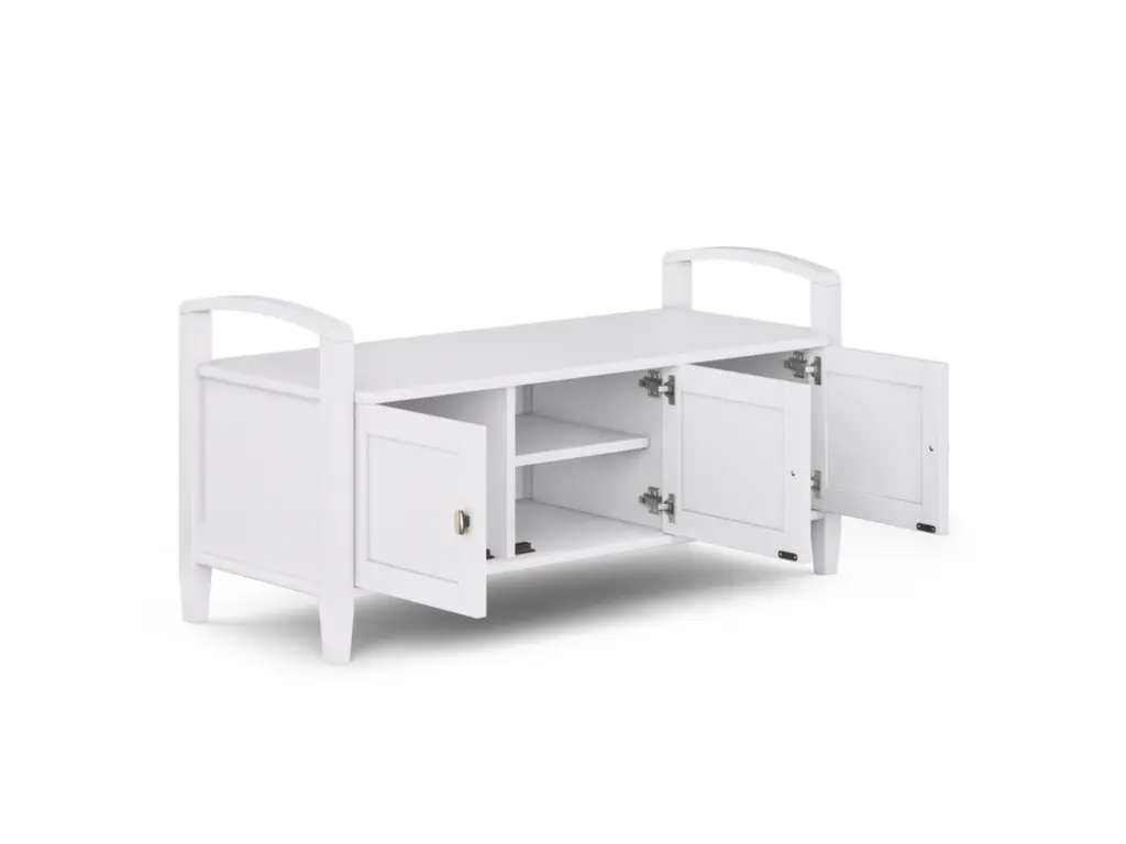 Warm Shaker Solid Wood 44 Inch Wide Transitional Entryway Storage Bench In White