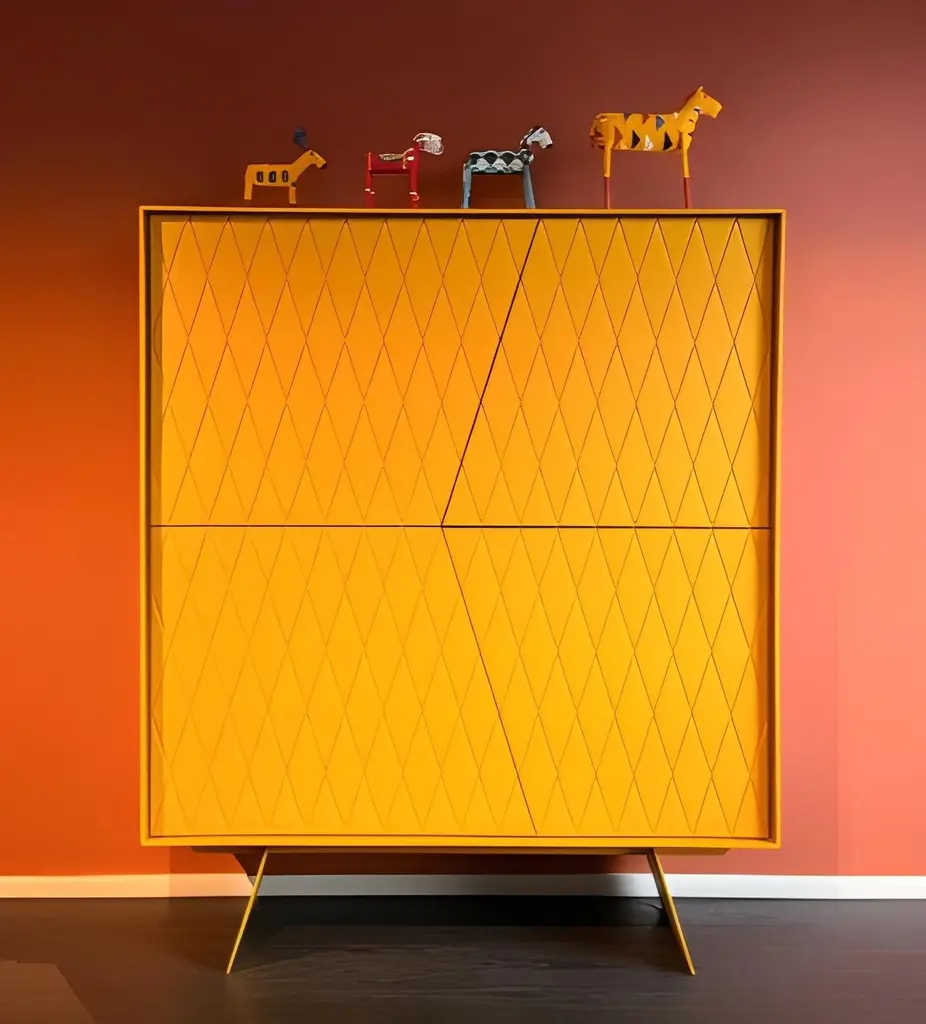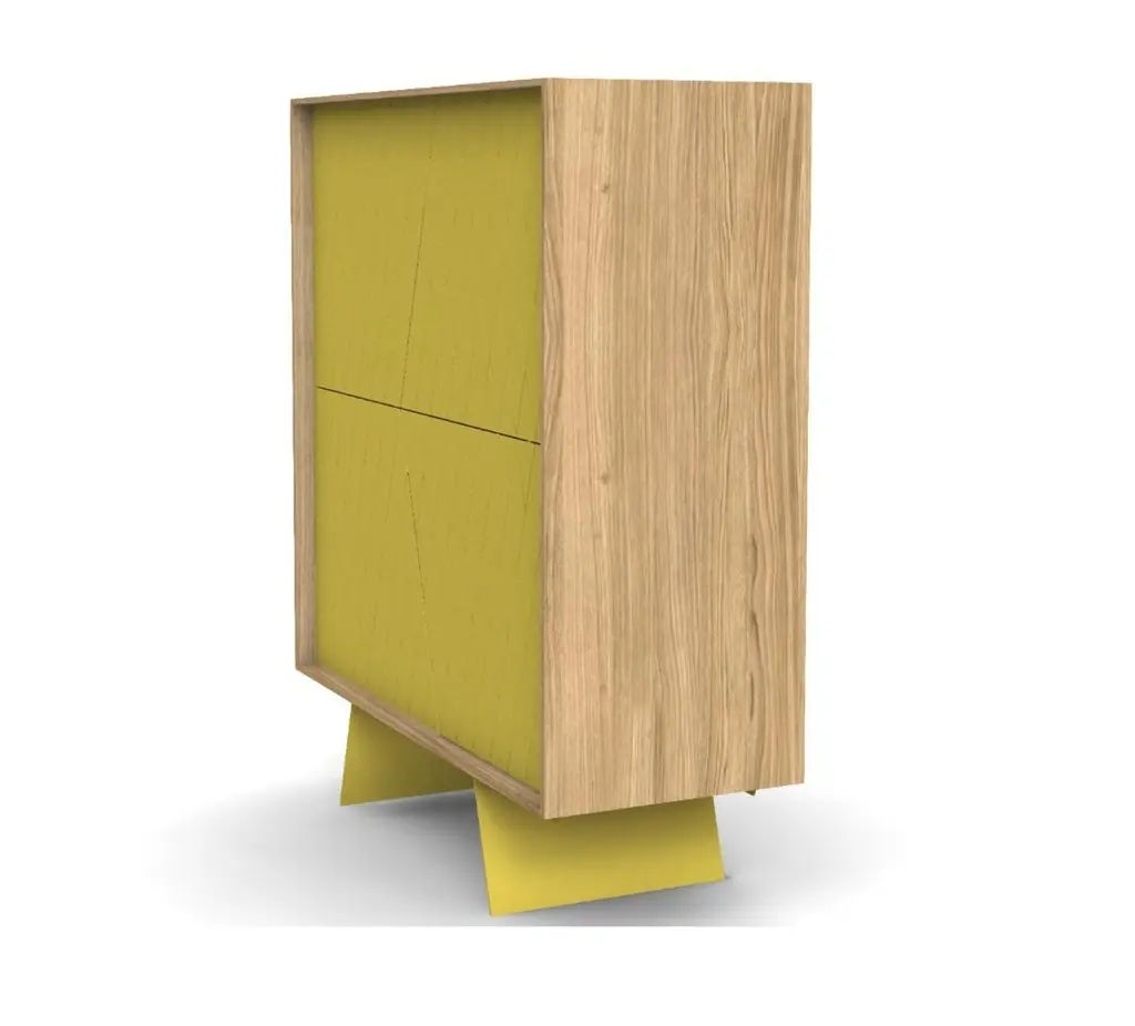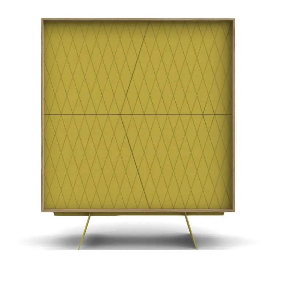 Cabinet type: High board Frame: Light OakFront: Gold Yellow LacquerBase: Gold Yellow LacqueredMaterials: Wood, metal, lacquerFour push-pull doors and inside shelf. Metal base lacquered in same finish.Lacquer coating in variety of colors.Dimensions: 121 cm x 50 cm x 146 cm.Please contact us if you have any questions about customization and pricing. We will be glad to check with the factory’s technical team if sizes, finishes, and colors can be customized. We do our best to expedite production and to ship and deliver product within the listed lead time, however current lead times might be longer due to global shipping backlog and delays. These delays are out of our control and cannot be a reason to cancel an order.