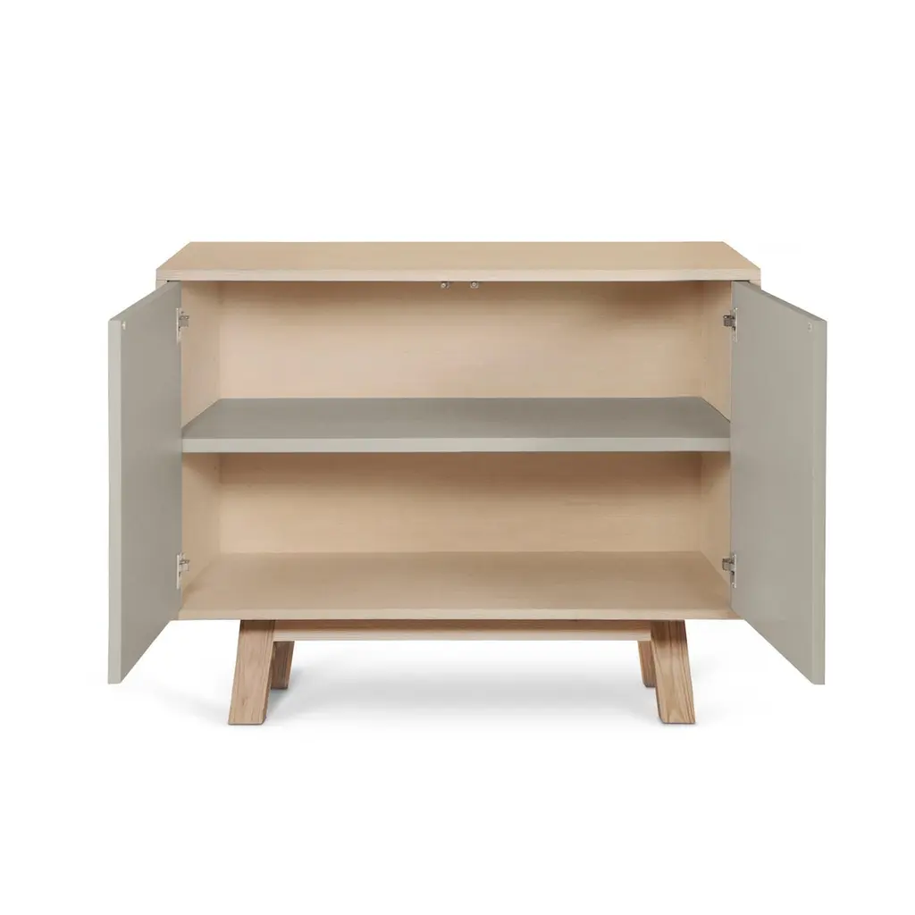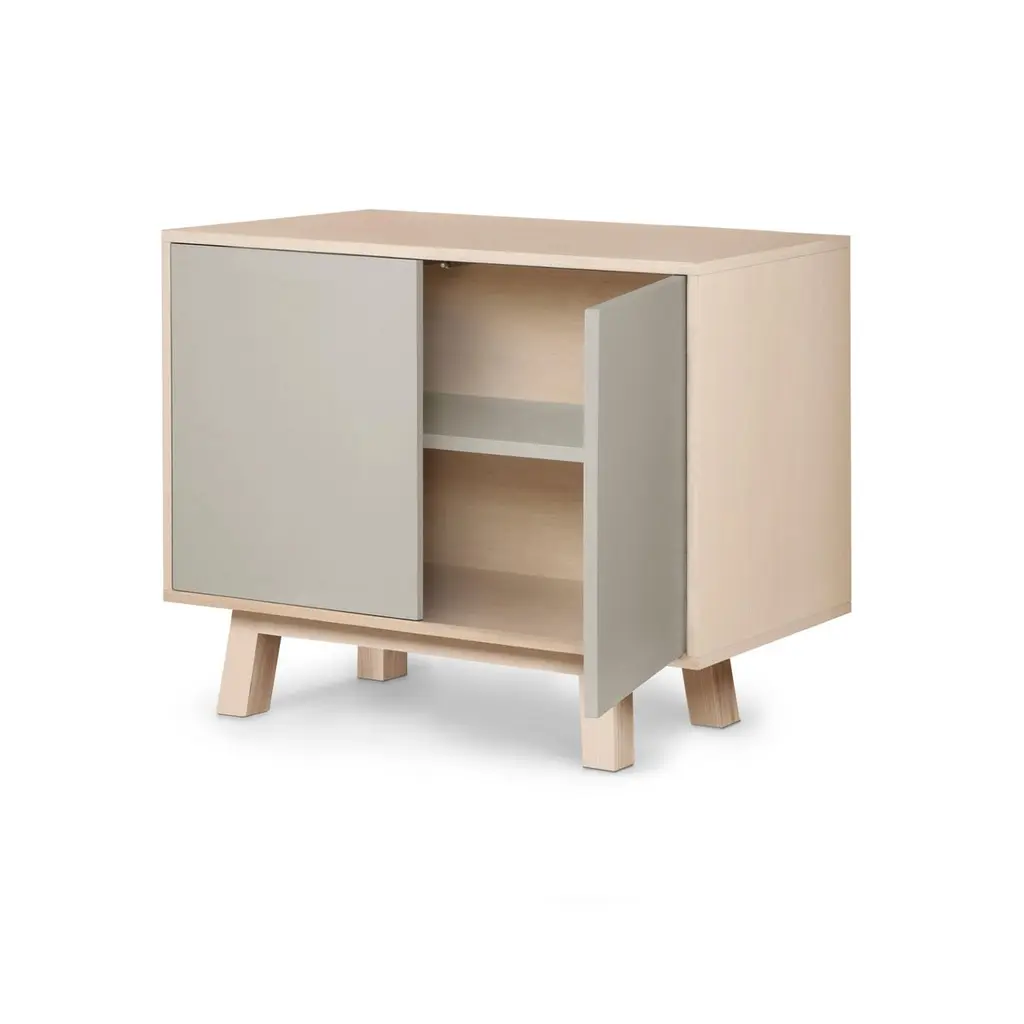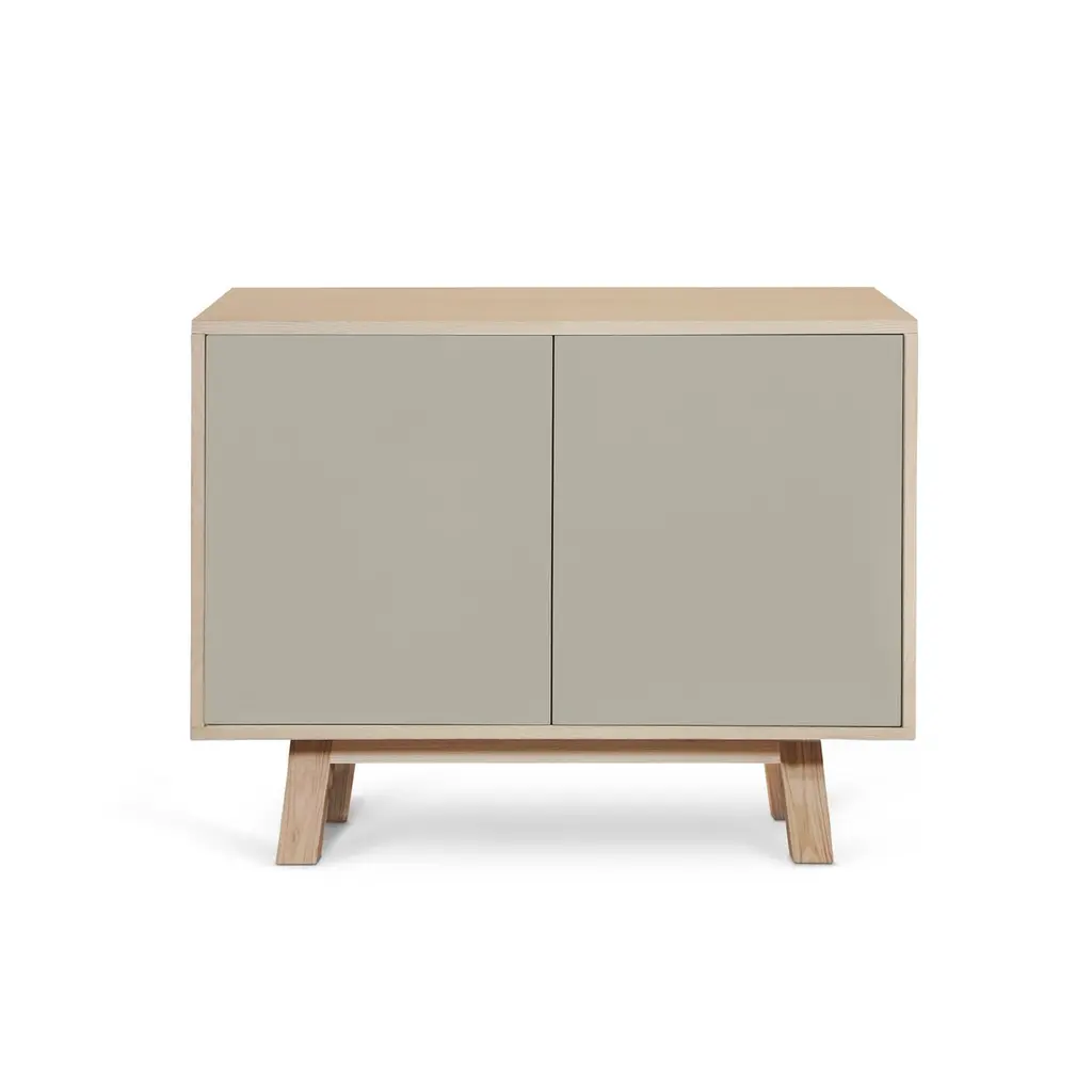 This 2-door cabinet is designed by Eric Gizard, Paris and 100% handcrafted in France.It is made of French solid ash wood, veneer adh and lacquered doors in MDF panels. The 2 doors open with a "push-to-release" pressure. A shelf in solid ash wood is placed behind the 2 doors and adjustable on (supplied) cleats.The shelf colour is identical to the doors' colour.The wood comes from sustainably managed French forests. ÉGÉE collectionThis sideboard is part of the ÉGÉE collection designed by Eric Gizard in Paris. Eric combines the sleek and refined codes of Scandinavian design with natural materials and muted and "trendy" colorful lacquers.MON PETIT MEUBLE FRANCAISprovides you exclusively with 100% Made in France furniture pieces. The manufacture and finishes are of very high-end quality, carried out in French craft workshops, in the west countryside of France: Loire and Bretagne.