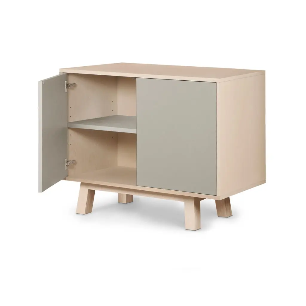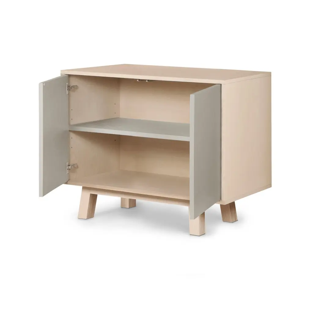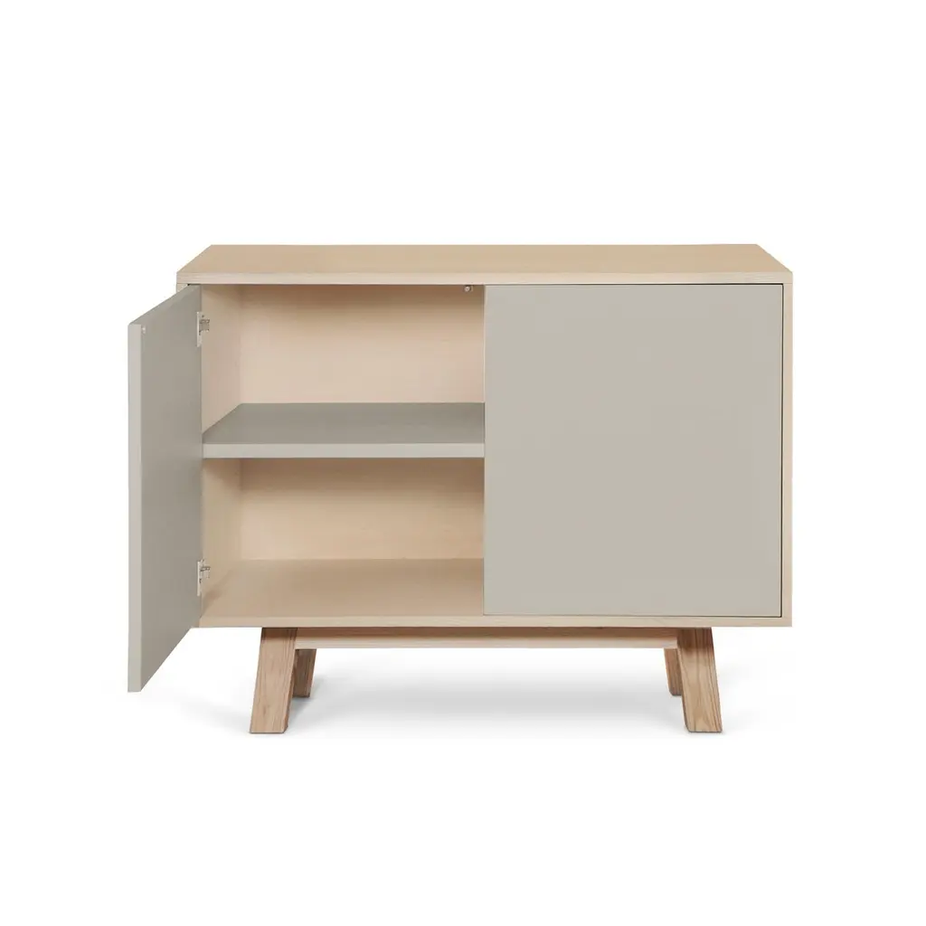 This 2-door cabinet is designed by Eric Gizard, Paris and 100% handcrafted in France.It is made of French solid ash wood, veneer adh and lacquered doors in MDF panels. The 2 doors open with a "push-to-release" pressure. A shelf in solid ash wood is placed behind the 2 doors and adjustable on (supplied) cleats.The shelf colour is identical to the doors' colour.The wood comes from sustainably managed French forests. ÉGÉE collectionThis sideboard is part of the ÉGÉE collection designed by Eric Gizard in Paris. Eric combines the sleek and refined codes of Scandinavian design with natural materials and muted and "trendy" colorful lacquers.MON PETIT MEUBLE FRANCAISprovides you exclusively with 100% Made in France furniture pieces. The manufacture and finishes are of very high-end quality, carried out in French craft workshops, in the west countryside of France: Loire and Bretagne.