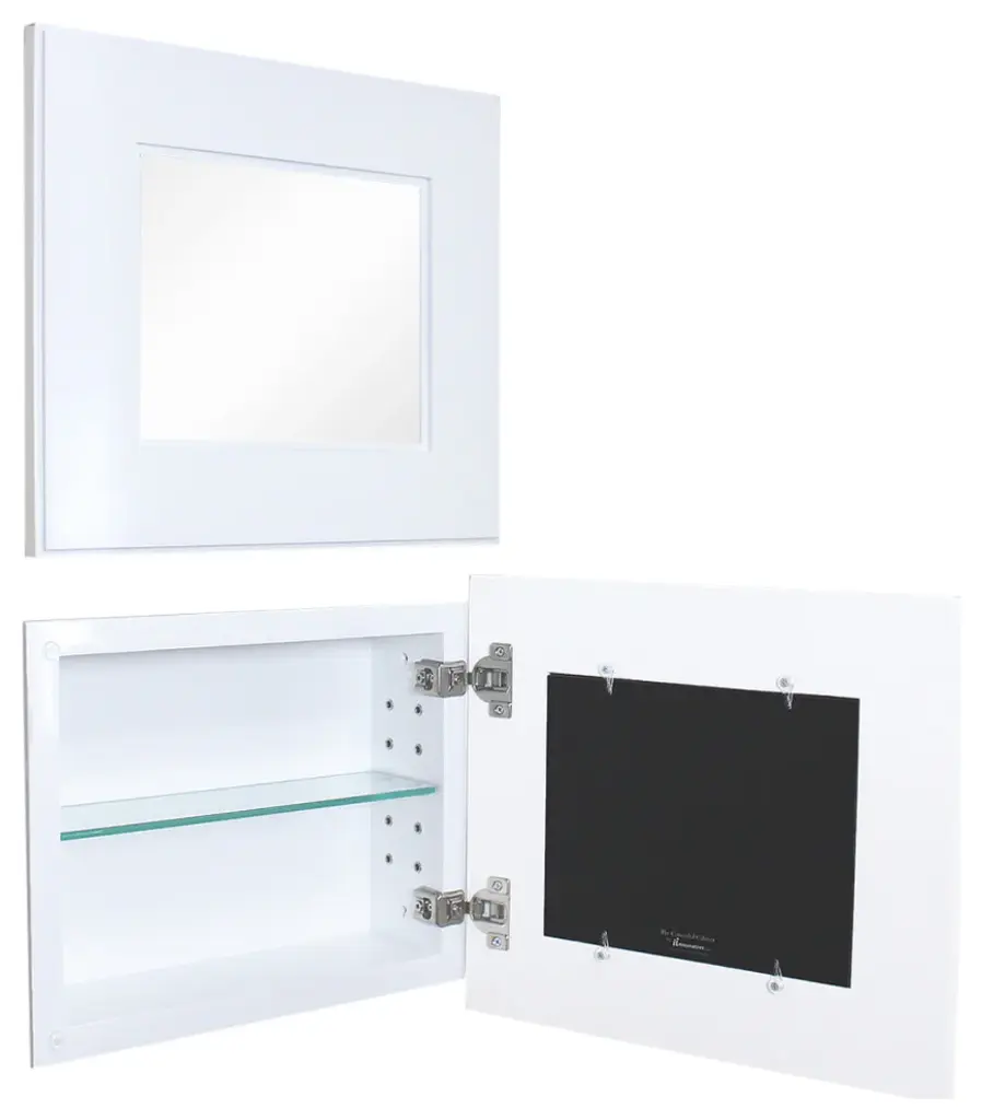 We believe the Fox Hollow Furnishings Mirrored Medicine Cabinet is the nicest recessed medicine cabinet available anywhere today. It features the look of an upscale framed mirror, is handmade from real wood, and sits closer to the wall than any other medicine cabinet we''ve ever seen. Our unique design also allows you easy access to the mirror so you can remove it for thorough cleaning or replace it, should anything ever happen to it -- without having to replace the entire cabinet.Available in multiple colors, including White, Shaker White, Espresso, Black, Coffee Bean, Unfinished Flat, Unfinished Raised Edge, and Gray. Each measures 11" H x 14" W x 3 3/4" D and holds an 8" x 10" mirror. PLEASE NOTE: This listing is for 1 Landscape Mirrored Medicine Cabinet only.