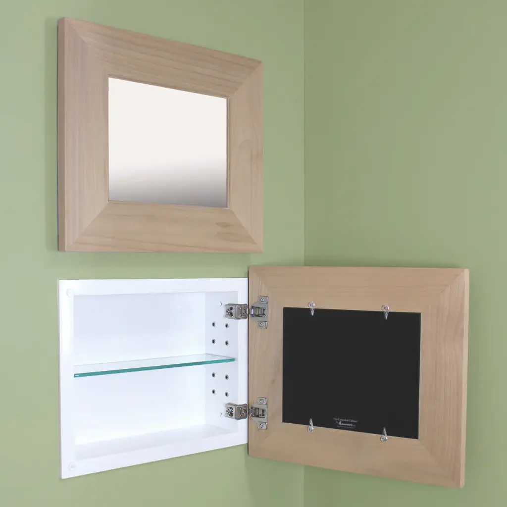 We believe the Fox Hollow Furnishings Mirrored Medicine Cabinet is the nicest recessed medicine cabinet available anywhere today. It features the look of an upscale framed mirror, is handmade from real wood, and sits closer to the wall than any other medicine cabinet we''ve ever seen. Our unique design also allows you easy access to the mirror so you can remove it for thorough cleaning or replace it, should anything ever happen to it -- without having to replace the entire cabinet.Available in multiple colors, including White, Shaker White, Espresso, Black, Coffee Bean, Unfinished Flat, Unfinished Raised Edge, and Gray. Each measures 11" H x 14" W x 3 3/4" D and holds an 8" x 10" mirror. PLEASE NOTE: This listing is for 1 Landscape Mirrored Medicine Cabinet only.
