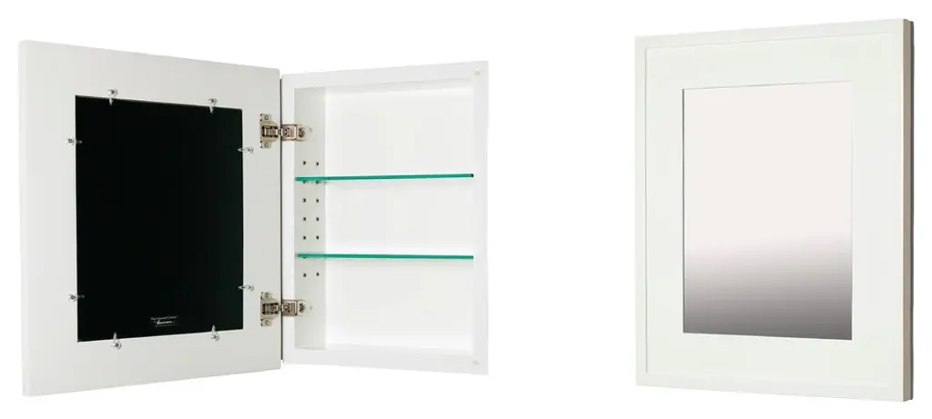 We believe the Fox Hollow Furnishings Mirrored Medicine Cabinet is the nicest recessed medicine cabinet available anywhere today. It features the look of an upscale framed mirror, is handmade from real wood, and sits closer to the wall than any other medicine cabinet we''ve ever seen. Our unique design also allows you easy access to the mirror so you can remove it for thorough cleaning or replace it, should anything ever happen to it -- without having to replace the entire cabinet.Available in 15+ colors! Measures 18" H x 14" W x 3.75" D and holds an 11" x 14" mirror.individually handcrafted from US grown hardwoodslacquer finish makes it resistant to moisturecompletely reversible; mounts with door opening in either directionincludes 2 high quality beveled glass shelvesadjustable to 7 different heightsDimensionsIn-wall cabinet, 18" H x 14" W x 3 3/4" DRough opening, 18 1/4" H x 14 1/4" W x 4" DCabinet interior, 17" H x 13" W x 3 1/2" DExterior frame, 19 7/8" H x 16 7/8" WHolds an 11" x 14" mirror• Note: The cabinet overlay (flange) will cover up to 1" in height and up to 1" in width.