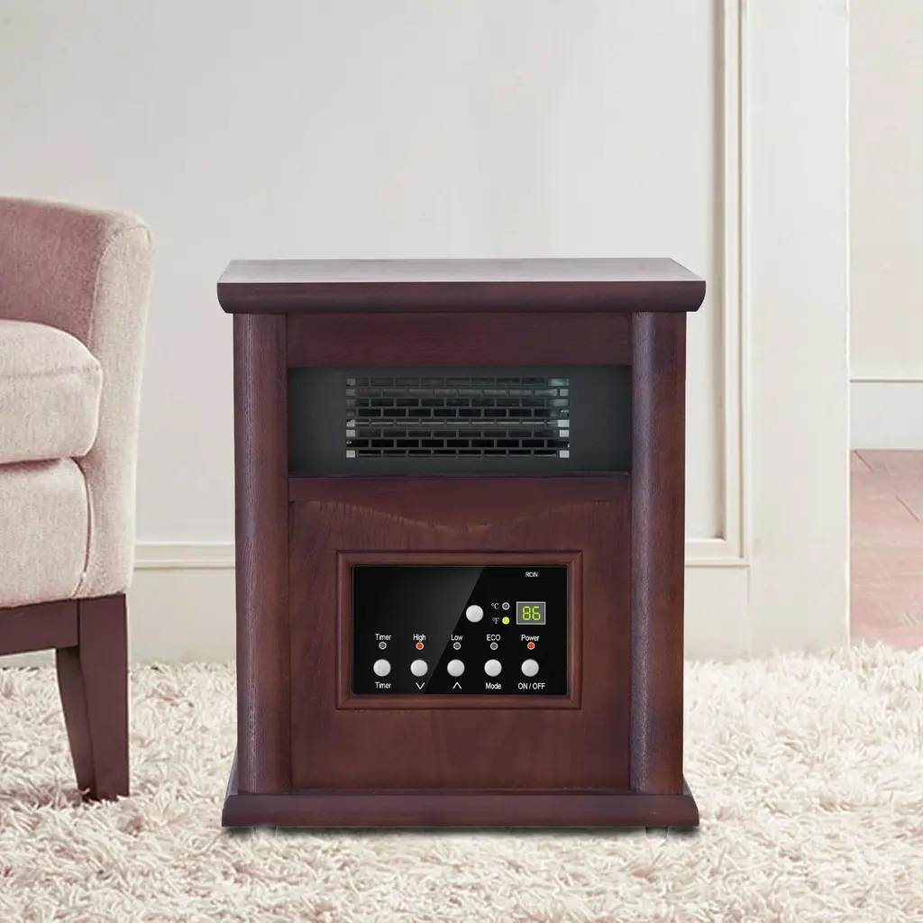 1500-Watt Electric Cabinet 4 Quartz Infrared Heater Wood With Led Digital Screen, Remote Control And Timer - Dark Brown