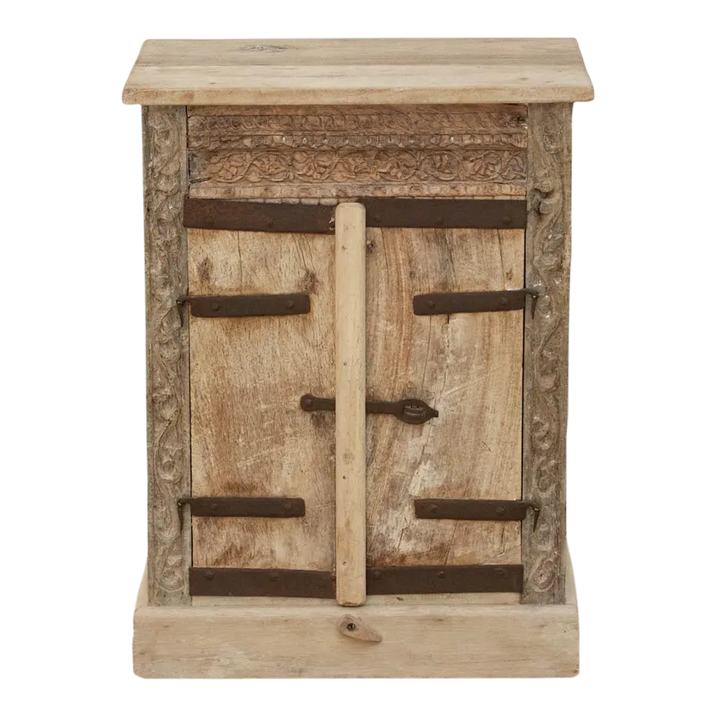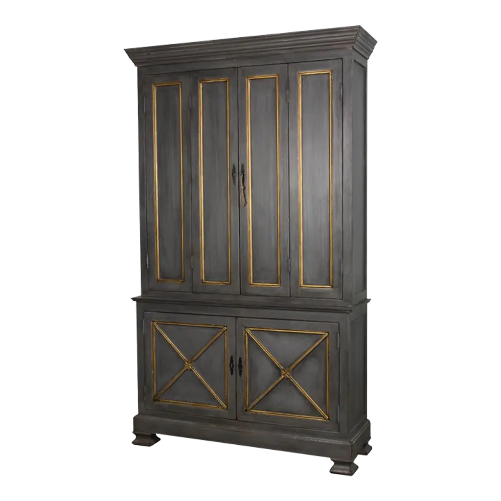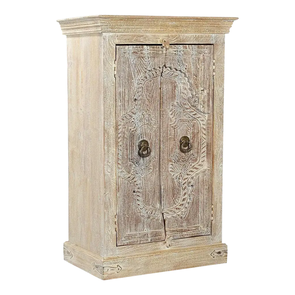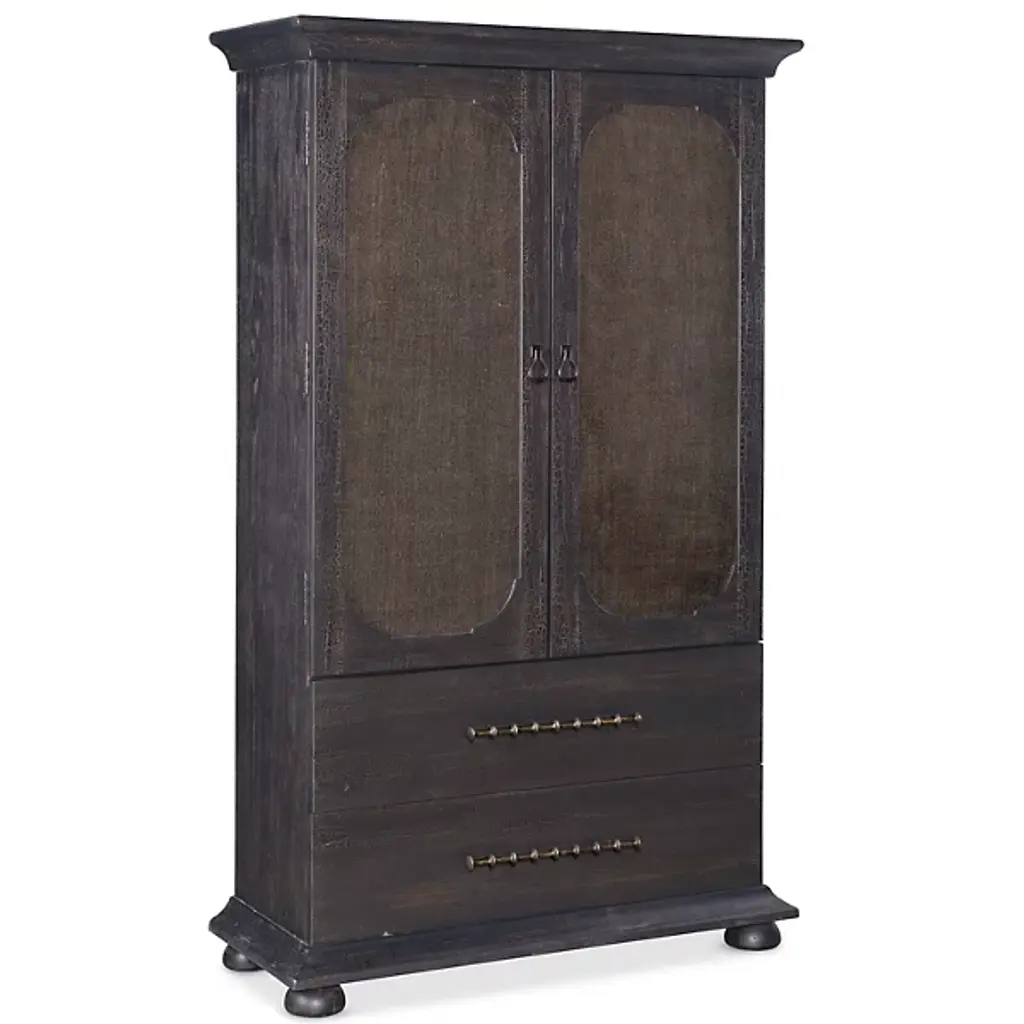 Asian Iron Doors Tall Cabinet is made out of elm wood. It has 2 doors, 3 removable shelves, and 2 drawers. It has a lots of storage. Material: Elm Wood Dimensions: 32.5"W x 16"D x 67"H Origin: China Condition: Perfect condition, all hand made wood joint.