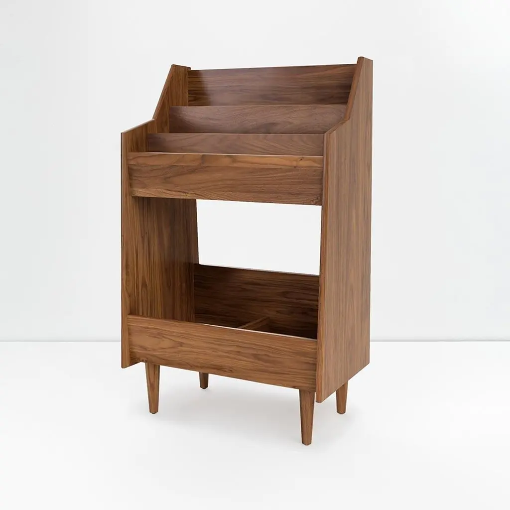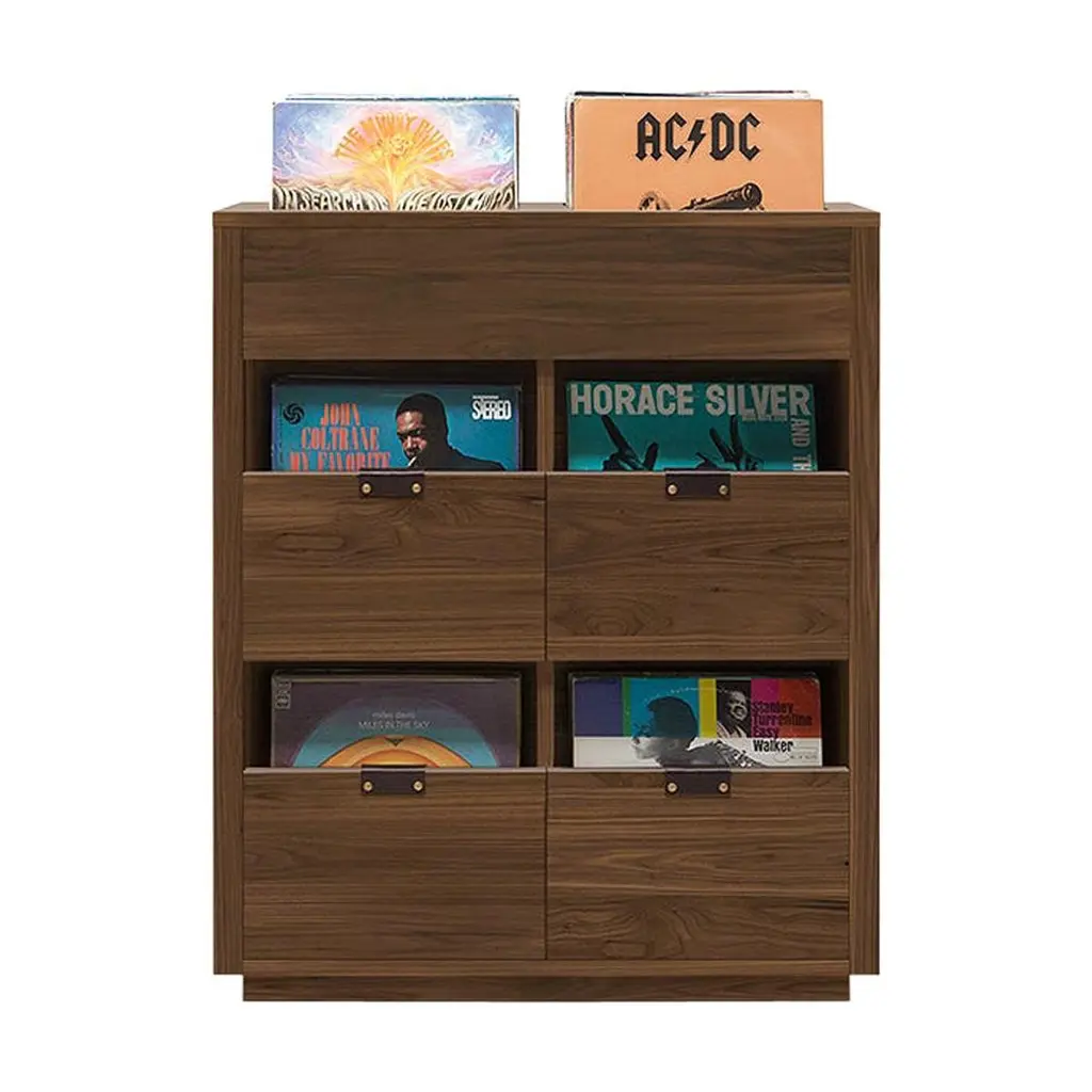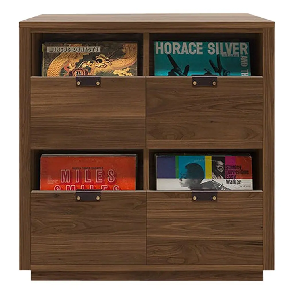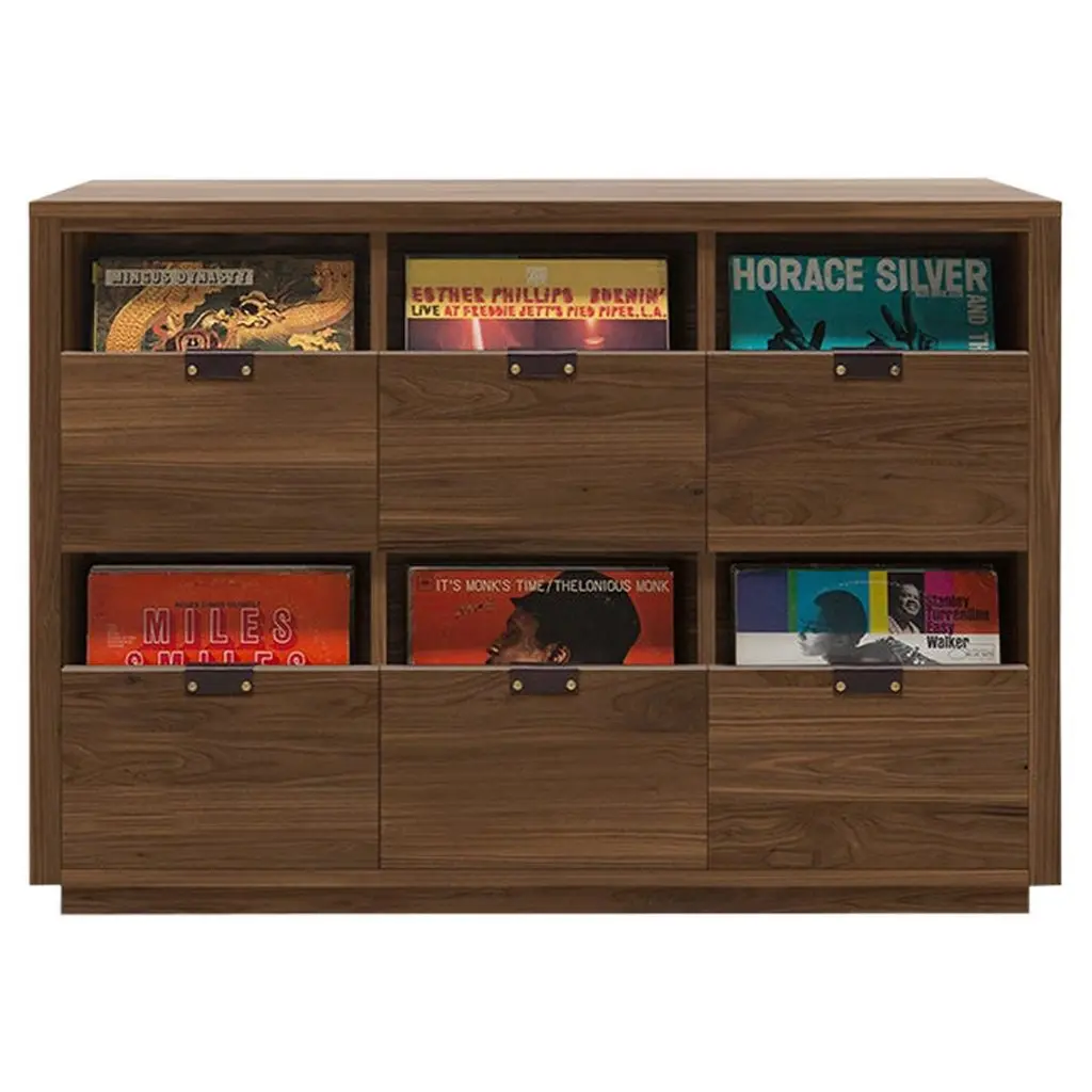Luxe record stands elegantly display record cover art while providing easy access to as many as 350 records. All of our cabinets are hand-built in the United States from sustainably harvested solid Ash and Walnut, available in a range of finishes. Display and arrange your favorite cover art in the tiered upper section and flip through deeper storage below. Luxe combines our love for cover art with the utility we all need. Solid wood tapered legs add style while the integrated adjustable levelers help compensate for uneven floors and safely manages the extreme weight of vinyl records. No exposed hardware, solid wood construction and finish on all sides means Luxe can be used up against a wall or floating in a room.Features:Gallery style cover art displayLower deep storage binsSolid wood constructionStore up to 350 LPs.