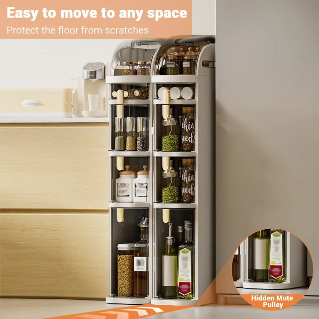 2-Tier Slim Plastic Storage Cabinet ¨C Space-Saving Narrow Design, Waterproof Bathroom Organizer with Drawers | Cream White & Black Transparent Accents | Perfect for Small Spaces, Kitchen, or Laundry