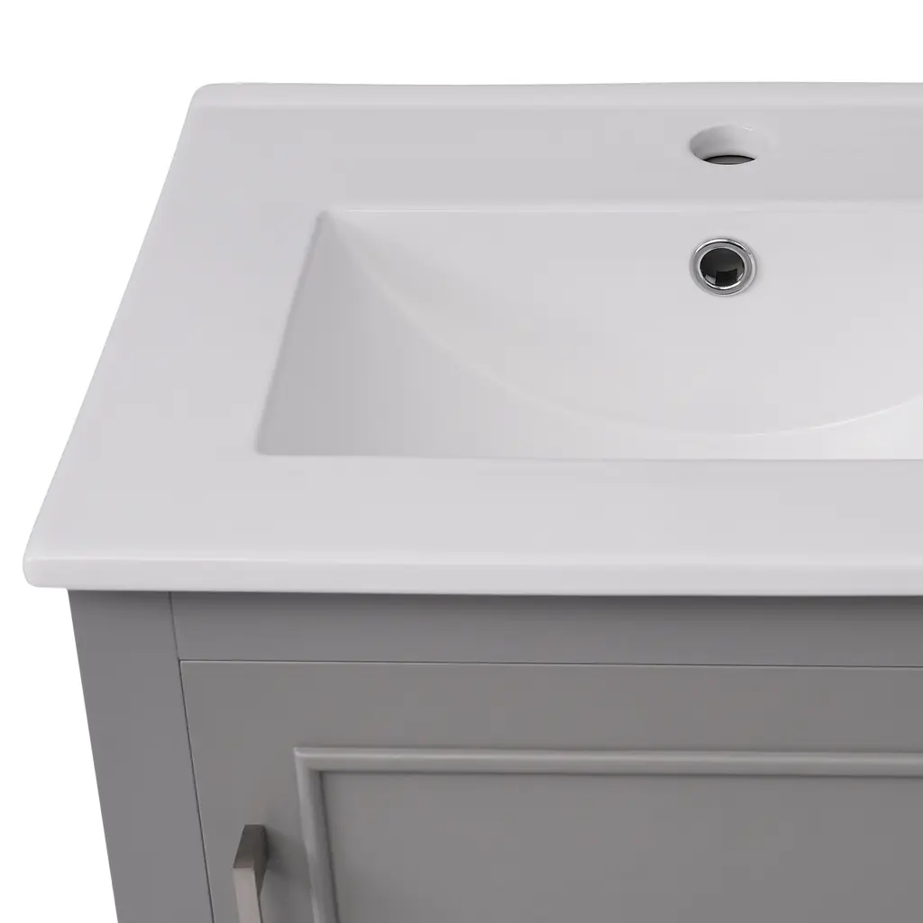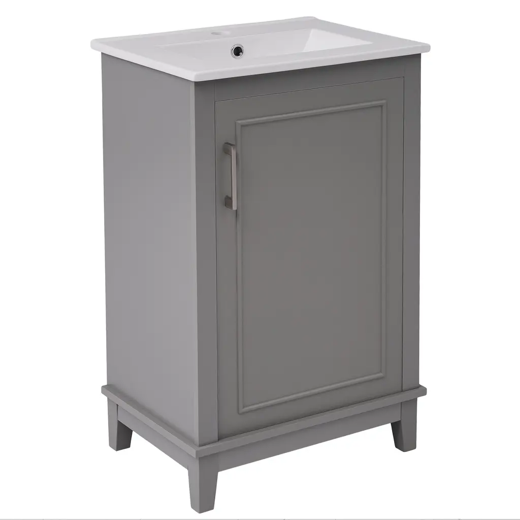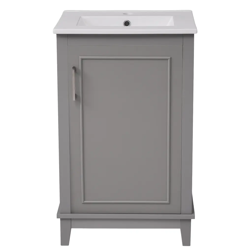 20 Inch Modern Small Bathroom Vanity Cabinet With Ceramic Basin - Gray - Gray