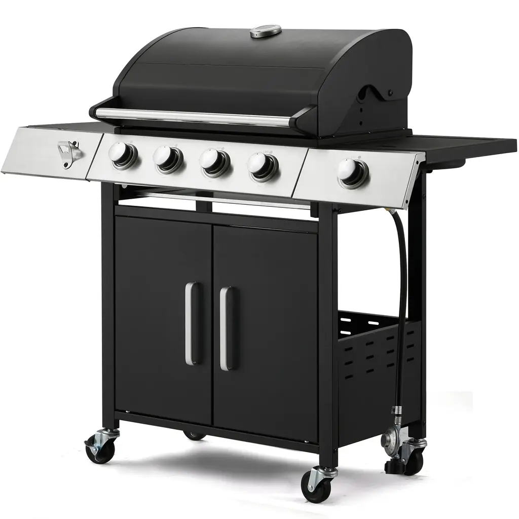 Color:Black→3+1BunnerWhite→4+1BunnerSliver→6+1BunnerThe perfect solution for outdoor BBQ enthusiasts! This 3-burner propane gas grill with a side burner delivers 36,000 BTUs of heat and provides 395 square inches of total cooking space. The primary cooking area measures 299.33 square inches, complemented by a 95.72-square-inch warming rack, giving you plenty of room to prepare multiple dishes simultaneously. Durable cast iron grates ensure consistent heat distribution for flawless searing every time.Designed with convenience in mind, this portable camping grill includes a practical side table for food prep and a spacious storage cabinet to keep tools and accessories organized. The side burner adds flexibility, offering additional space for preparing side dishes. Features like the electronic ignition system and an open cart design allow quick access to grilling tools, while the 4 lockable universal wheels ensure smooth and effortless mobility across your patio or backyard.Enjoy a spacious cooking experience with 299.33 square inches of primary grilling space on durable cast iron grates, paired with an additional 95.72 square inches of stainless steel warming rack. This versatile barbecue grill offers a combined total of 395 square inches of cooking surface, making it ideal for hosting family get-togethers or weekend gatherings with friends. Designed with premium cast iron grates, this propane gas grill offers exceptional durability and effortless cleaning, with resistance to rust and wear. The stainless steel burners and flame tamers ensure even heat distribution, minimizing hot spots and maximizing heat retention for perfectly cooked, flavorful meals every time. This gas grill features three primary burners, each delivering 8,000 BTU, along with a side burner providing 12,000 BTU, totaling 36,000 BTU of cooking power to handle all your grilling tasks. The piezoelectric ignition system ensures an easy and quick start with just a turn of the knob. Whether you're grilling at high heat or cooking low and slow, these robust burners are designed to give you consistently excellent results.This outdoor grill comes with a practical side table for food preparation and tool organization, ensuring a neat and efficient grilling space. Below, the large storage cabinet offers plenty of room for your gas tank and grilling tools. For added convenience, a built-in bottle opener is located on the front, so you can easily enjoy a refreshing drink while grilling outdoors. Cleaning up after grilling is a breeze with the large grease tray, designed to slide out smoothly for efficient handling of grease and drippings. This practical feature makes the cleanup process simple, helping you keep your grilling area spotless with minimal effort. This BBQ grill features two lockable wheels and two non-locking wheels, making it simple to move to your preferred spot. You can easily roll the grill into place without lifting, and once positioned, secure the wheels with the locks for enhanced stability.